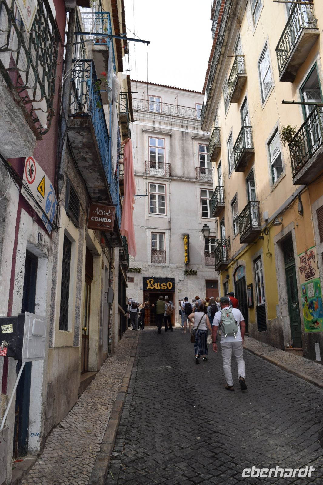 Nach kurzer Busfahrt stoppen wir am Ufer des Flusses Tejo, um uns den Bélem-Turm und das Entdecker-Denkmal anzuschauen. Bei einem Bummel entlang der Uferpromenade genießen wir die warmen Sonnenstrahlen und bummeln durch die Souvenirstände. Im Park unweit des Ufers steht ein Modell des Flugzeuges, mit dem 2 portugiesischen Piloten die Überquerung des Südatlantiks im Jahre 1922 gelang. Für den Flug von Lissabon nach Recife in Brasilien (ca. 6.000 km) betrug die Durchschnittsgeschwindigkeit 115 km/h und so waren die beiden ca. 52 Stunden ohne Pause unterwegs. Wir hingegen machen eine ausgiebige Mittagspause, die am Praça dos Restauradores in der Unterstadt Lissabons beginnt. Um 14.30 Uhr treffen wir uns dort wieder und steigen erneut in unseren Bus. Auf einer kurzen Fahrt durch Lissabon gibt es noch ein paar Erläuterungen unserer Reiseleiterin, bevor wir in der Altstadt Lissabons aussteigen. Wir wollen und müssen die engen und steilen Gassen der "Alfama" nun zu Fuß erobern und sehen die vielen kleinen Shops und Cafés im ältesten Stadtviertel Lissabons. Von hier aus starten wir dann unseren Fußmarsch in die Oberstadt und nutzen dabei die komfortablen langen Rolltreppen einer Metrostation. Angekommen am Restaurant "Luso" nehmen wir im kleinen Veranstaltungsraum Platz und bekommen Wein und Wasser sowie Käse- und Wursthappen mit Brot gereicht. Die melancholischen Gesänge der Dame werden von zwei Gitarristen begleitet, wobei ein Gitarrist die typische Fado-Gitarre spielt. Der Auftritt eines weiteren Fado-Sängers kann an Dramatik kaum übertroffen werden. Schluchzend und laut schmettert er seine Melodien in den Raum, wir sind begeistert und geben natürlich viel Beifall. Nach einer Stunde verlassen wir beschwingt von dem vielen Wein die Veranstaltung und spazieren noch etwas durch Lissabon, bis wir erneut am Praça dos Restauradores unseren Bus erreichen, der uns zum Hotel "Roma" zurück bringt. Um 19:45 Uhr verabreden wir uns zum gemeinsamen Abendessen, welches heute für uns in einem typisch portugiesischen Restaurant bestellt war. Zu Fuß laufen wir die 800 m bis zum Restaurant "Ti Lurdes" wo für uns eine lange Tafel im Untergeschoss eingedeckt war. Der freundlich-herbe Kellner, der uns zugeteilt wurde, serviert uns gegrilltes Schweinefilet mit Reis oder Pommes, dazu gegrillte Ananasscheiben und ohne Limit Bier, Wein, Limonaden oder Wasser. Zum Abschluss wurde noch leckerer Himbeer-Käsekuchen und Kaffee nach Kundenwunsch serviert. Um 22 Uhr schlendern wir zurück zum Hotel.