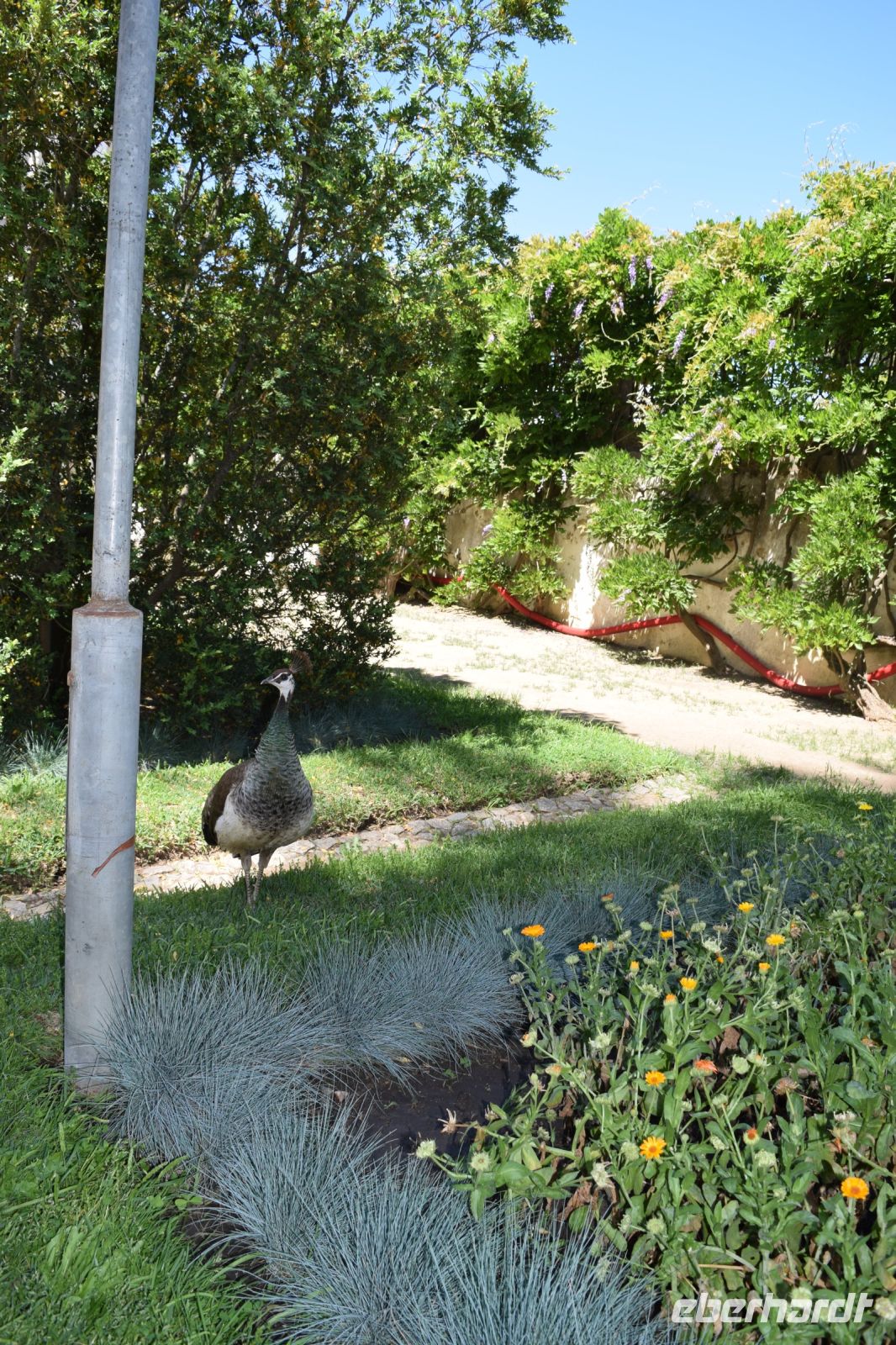 Auch hier wird roter und weißer Wein angebaut und gekeltert. Schließlich kommen wir in einen Landschaftspark mit einem zauberhaften Palast, das heute als Luxushotel Nutzung findet. Wir nehmen uns die Zeit für einen Bummel durch die schöne Parkanlage und genießen die warmen Sonnenstrahlen. Wenig später zeigt uns unsere Reiseleiterin bei einem kurzen Foto Stopp im unteren Teil des Parks den seltenen Baumfarn, zu dessen Füßen die Calla-Blumen wie Unkraut wachsen.