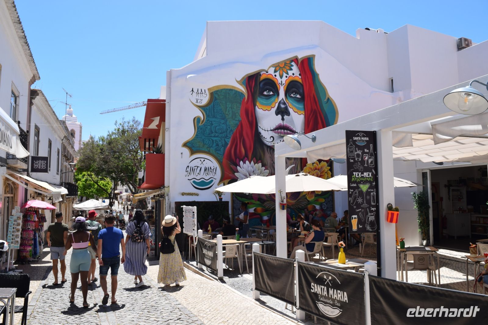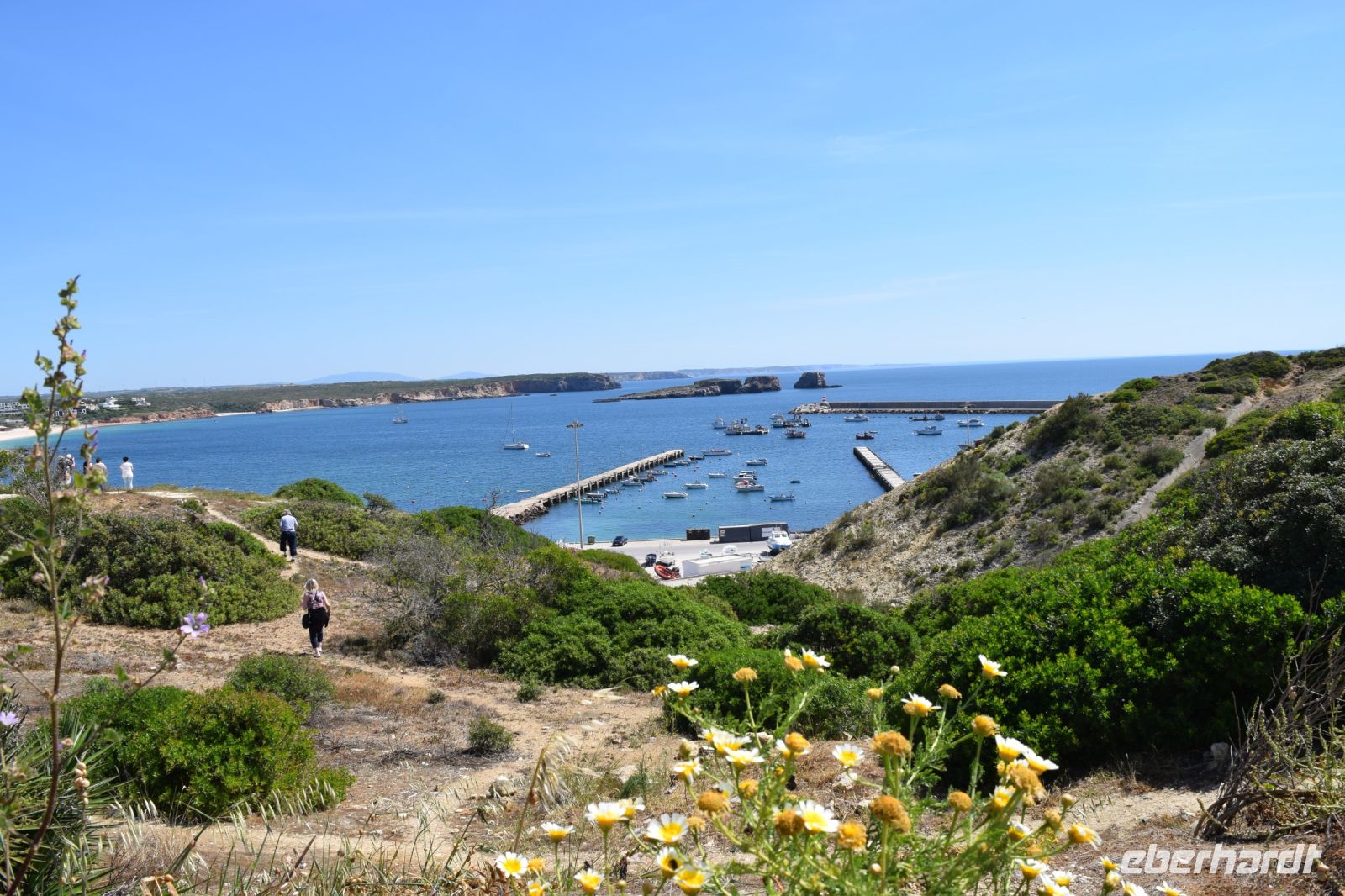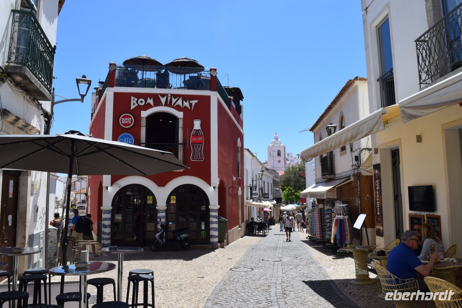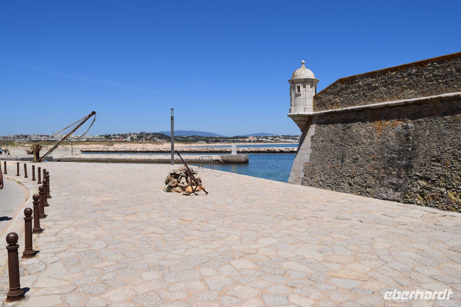Obwohl dieser Ausflug fakultativ angeboten wurde, starten alle Gäste unserer Gruppe um 09.00 Uhr vom Hotel. Wir fahren eine reichliche Stunde mit dem Bus zur südwestlichen Landzunge Portugals, zum Cabo de São Vicente. Der rot-weiße Leuchtturm, der wohl lichtstärkste Leuchtturm Europas, steht einsam auf dem ca. 30 Meter hohen Fels über dem Meer. Sein Lichtschein lotst die bis 60 km entfernten Schiffe am Kap vorbei. Wir steigen aus und machen zahlreiche Fotos von Turm und der farbenfrohen Kulisse. Auch vom wohl "letzten Bratwurststand vor Amerika" entstehen zahlreiche Bilder. Anschließend fahren wir durch die Bucht zur gegenüber liegendem Festungsanlage, die heute militärisch genutzt wird. Bei einem Fotostopp haben wir einen schönen Blick über die Buch zum Cabo de São Vicente. Weiter geht die Fahrt entlang der Algarve nach Lagos. Unterwegs stoppen wir an einem kleinen Fischereihafen und genießen den Blick auf das Meer. In Lagos angekommen haben wir genügend Freizeit für ein Mittagessen in einem der unzähligen Restaurants und einem anschließenden Bummel durch die quirligen Fußgängerzonen der Stadt. Hinter der alten Festungsanlage nahe dem Zentrum befindet sich ein schöner Sandstrand, den ich für eine kleine Pause aufsuche. An der Uferpromenade treffen wir uns schließlich alle wieder und steigen in den Reisebus. Auf der Rückfahrt zum Hotel verabschieden wir uns von unserer tollen Reiseleiterin, die uns während der vergangenen Reisetage mit vielen Informationen versorgte und auch sonst alle Details perfekt organisiert hatte.
