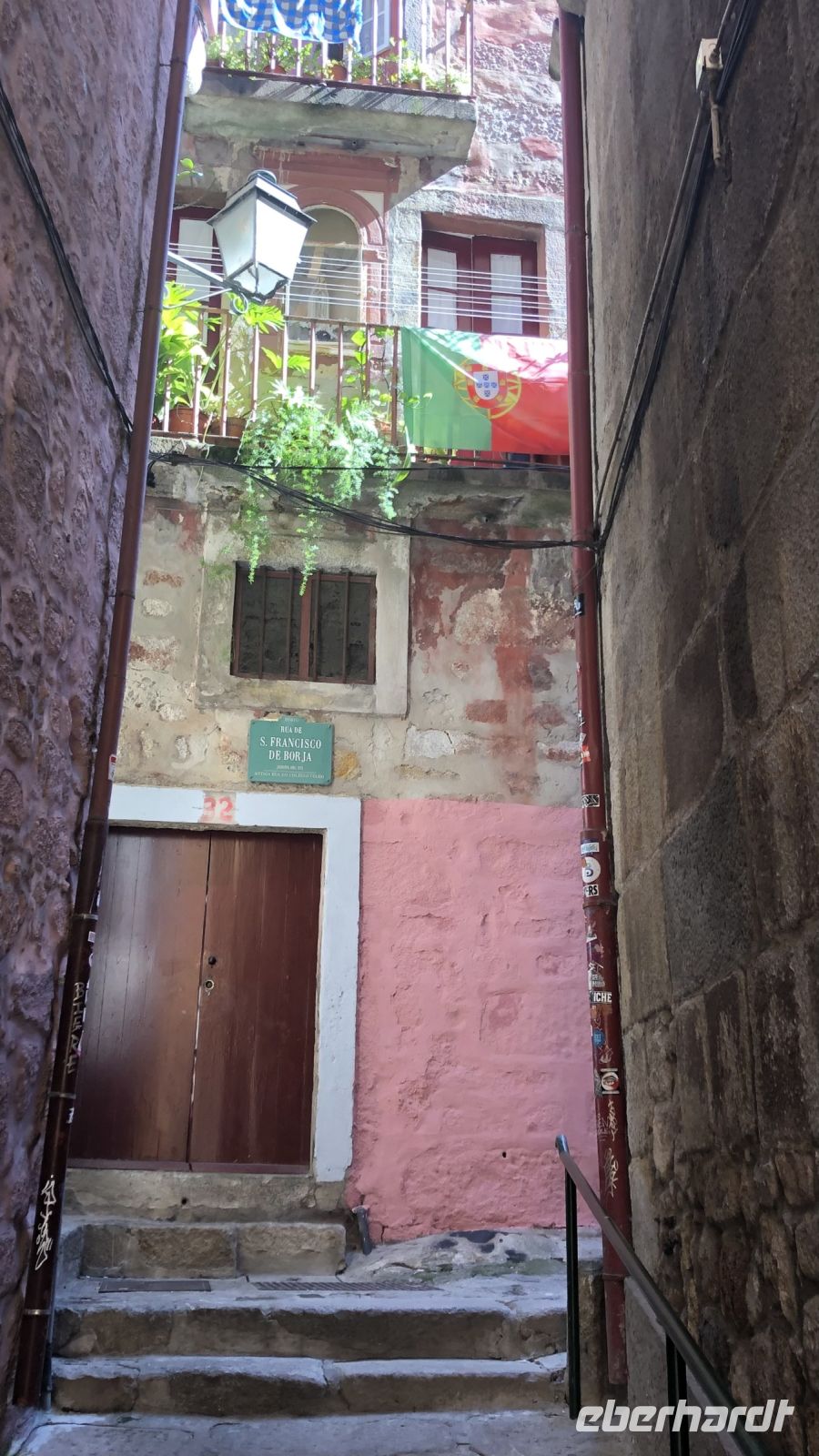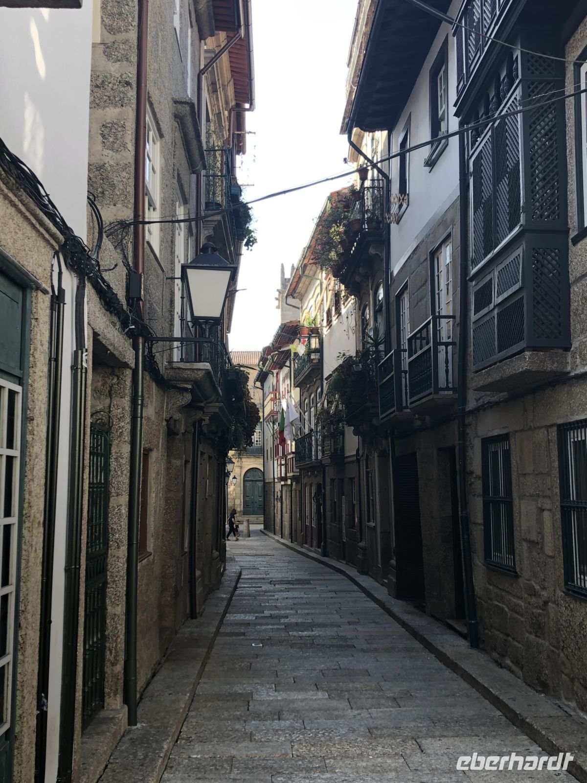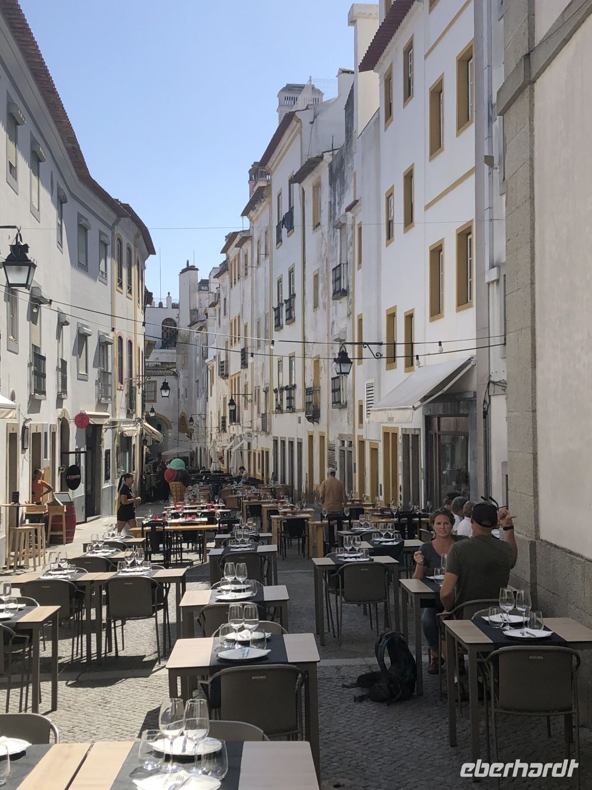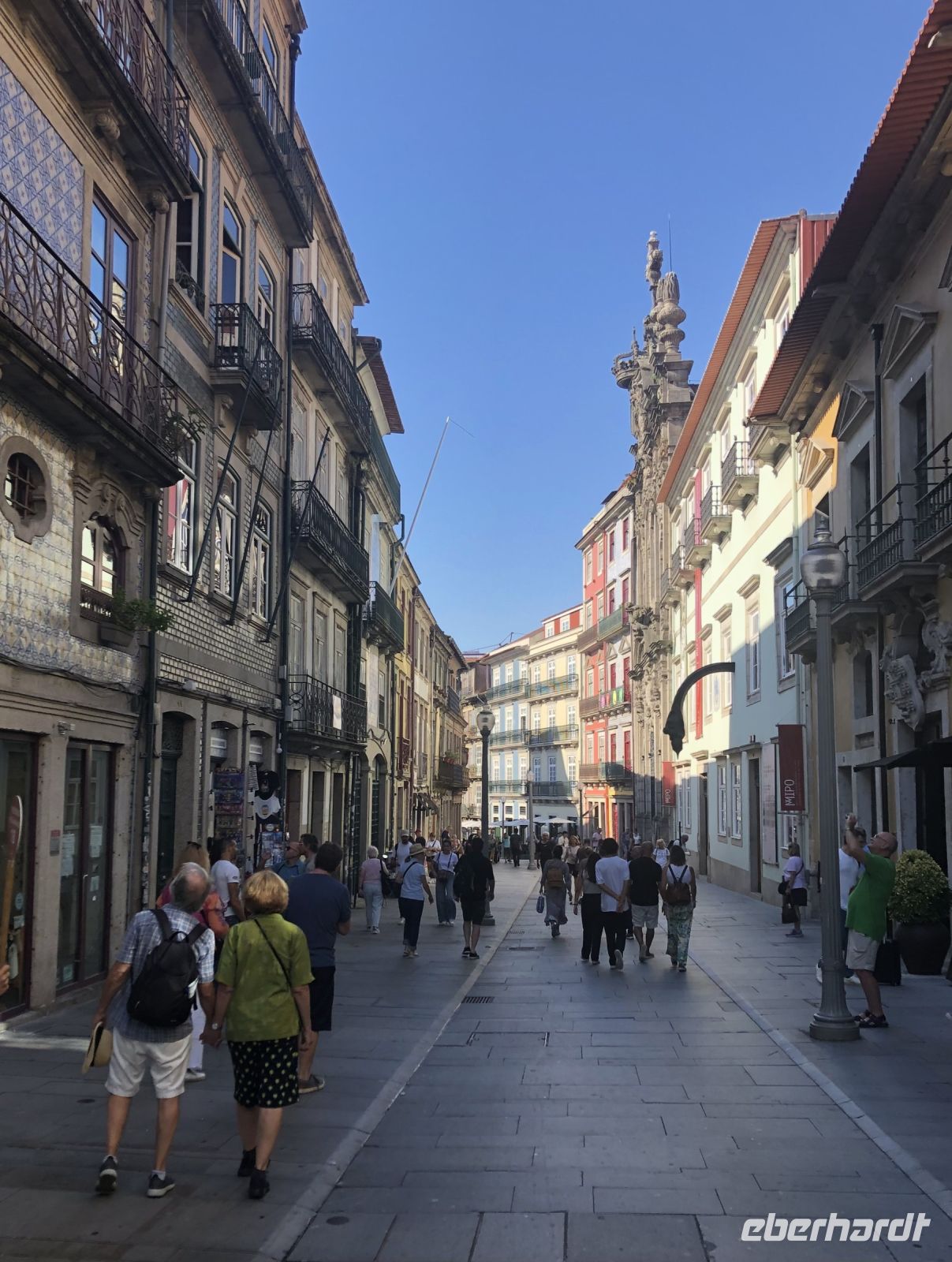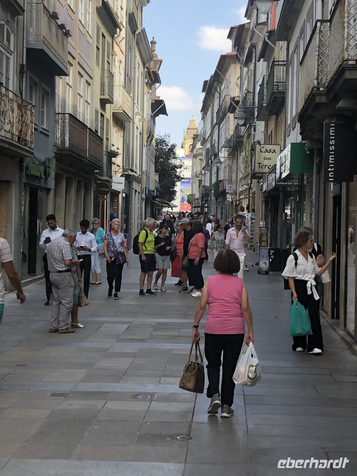 entspannt durch die ansprechenden Fußgängerzonen zwischen Praca da Republica und Porta Nova mit den vielen ansprechenden und einladenden Geschäften, Cafes und Restaurants vorbei an Kathedrale und Bischofspalast.