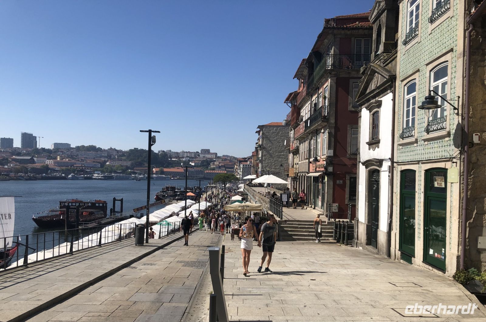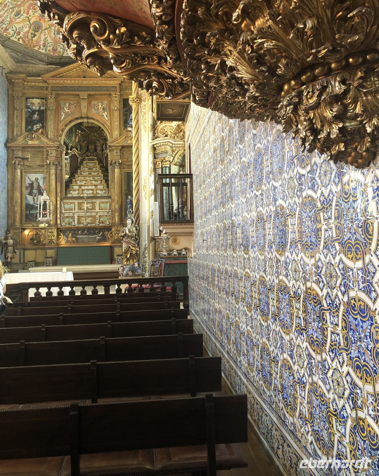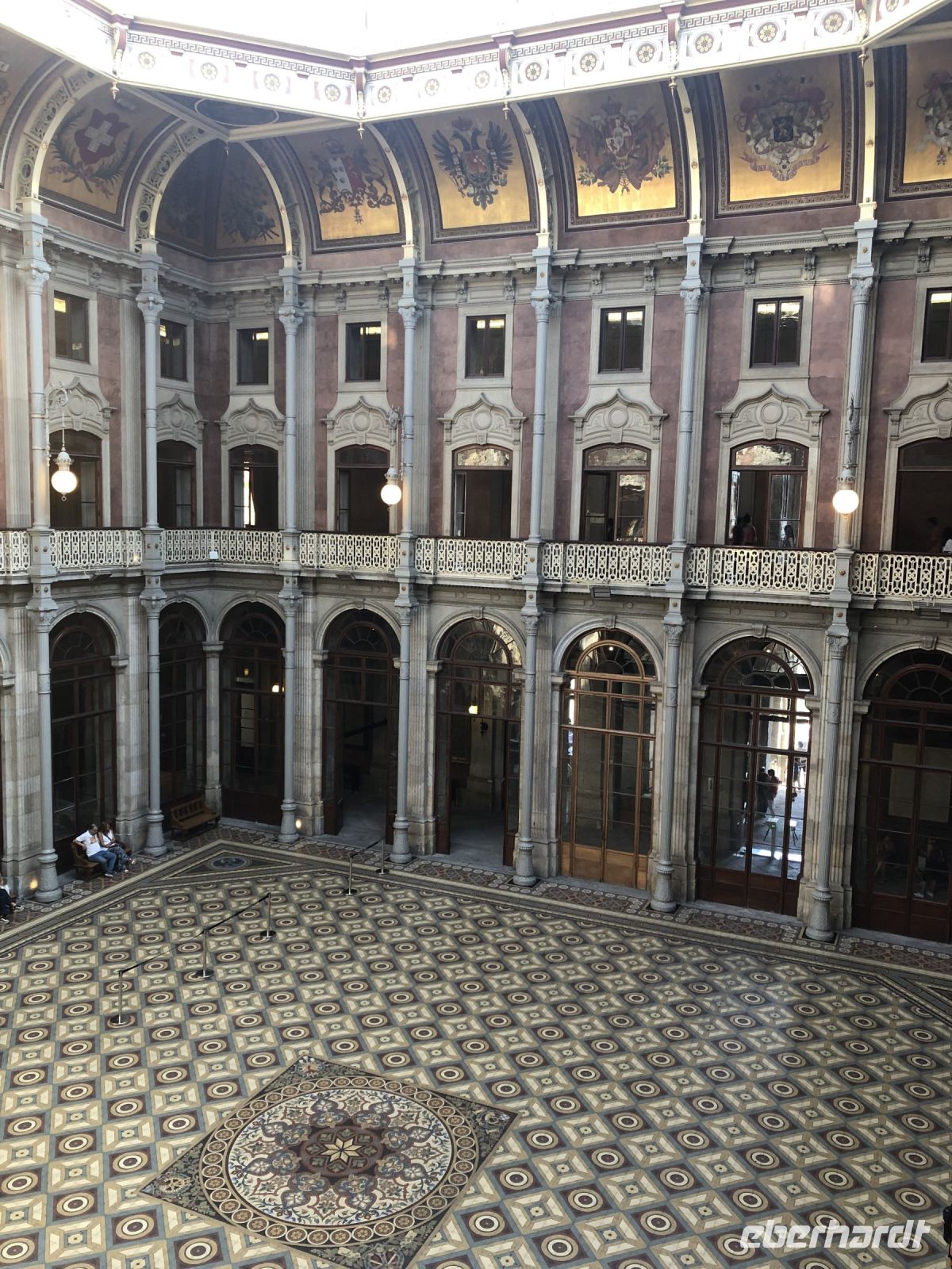 Mit dem Bus und unserer charmanten energiegeladenen Reiseleiterin Fatima werden wir in die Innenstadt gefahren. Wir umrunden das imposante Rathaus im Baixa-Viertel entlang der Großbaustelle Avenida dos Aliados hin zur Praca da Libertade. Die gotische Kathedrale mit ihrem sehenswerten Kreuzgang und den herrlichen Altären ist unser erstes Ziel im ältesten Stadtteil Ribeira. Von dort geht es weiter zum Bahnhof Sao Bento, wo wir in der Vorhalle die riesigen Fliesenbilder bestaunen. In der autofreien schönsten Straße des alten Porto, der Rua das Flores, lebte einst vor allem das Großbürgertum. Eine Besichtigung des Börsenpalastes mit seinem maurischen Saal als Prunkstück rundet unseren Spaziergang durch die Fußgängerzone ab, der an der Praca da Ribeira direkt am Fluss zur Mittagspause endet.