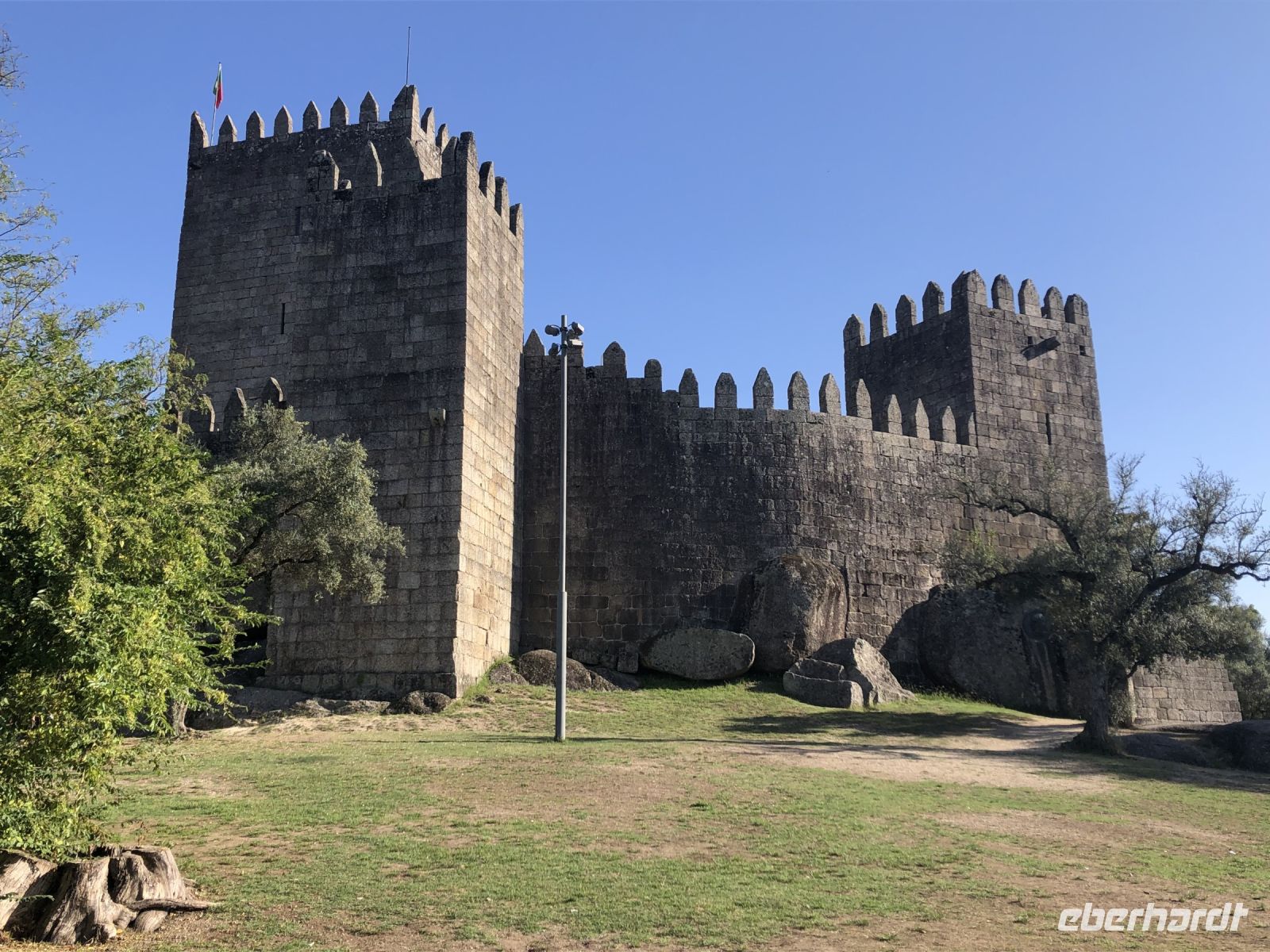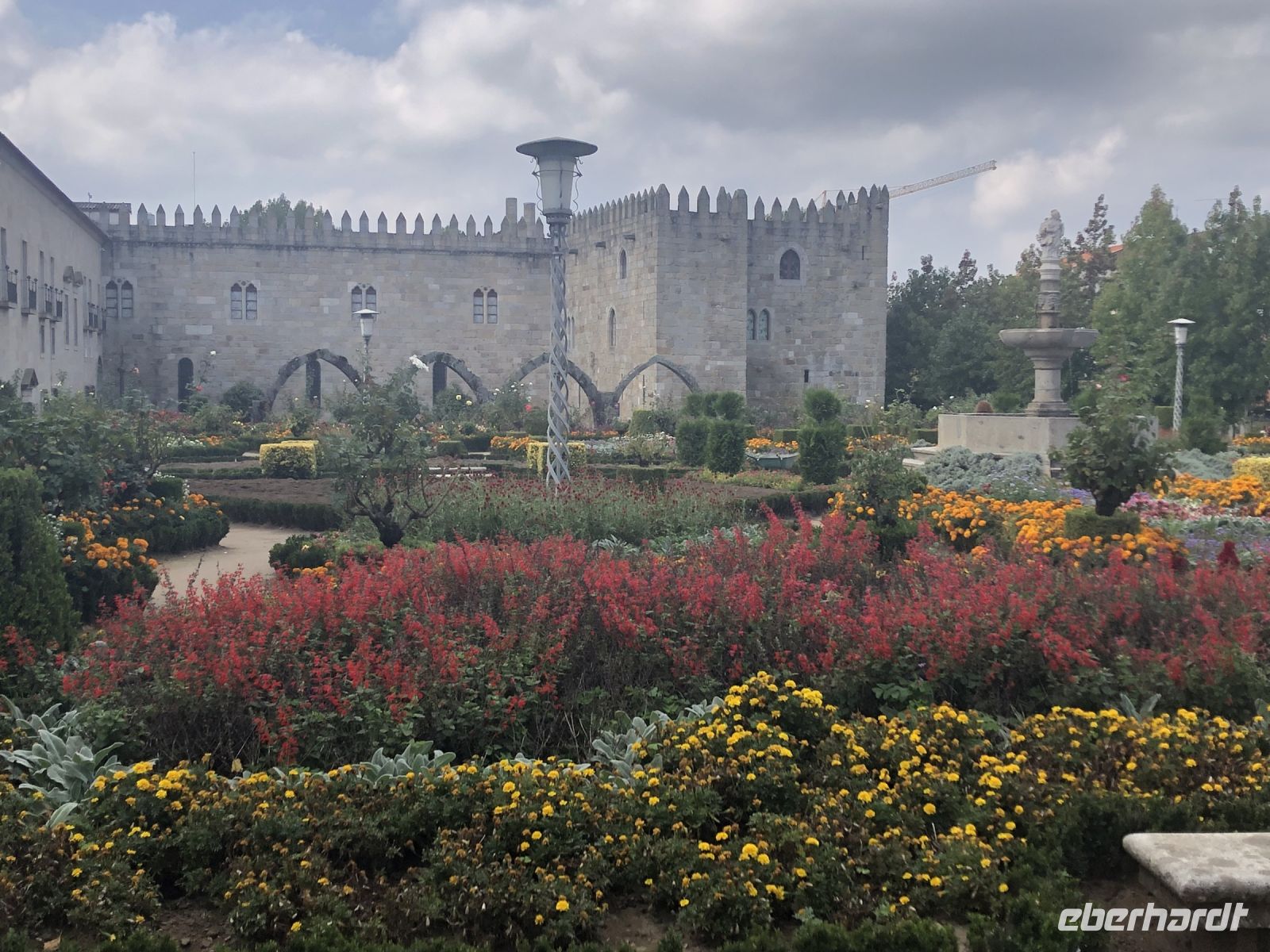 Wiederum herrliches Sommerwetter erwartet uns heute sogar im Minho, dem grünen Norden Portugals mit seinen hohen Niederschlägen. Wir durchfahren eine sehr hügelige ehemals auschließlich bäuerliche und heute ziemlich industrialisierte Gegend und erreichen Guimaraes, die erste Hauptstadt Portugals. Hier wurde Afonso Henrique geboren und getauft, Begründer des eigenständigen portugiesischen Königreichs 1139 nach dem Sieg über die maurischen Truppen. Die bedeutende romanische Burganlage mit den wuchtigen Wehrtürmen und der nahegelegene Herzogspalast faszinieren uns ebenso wie die engen Gassen und von mittelalterlichen Häusern umrahmte Plätze.