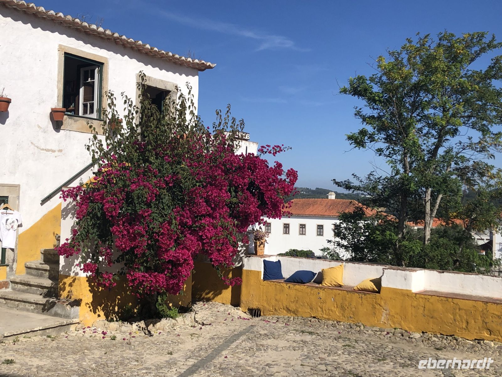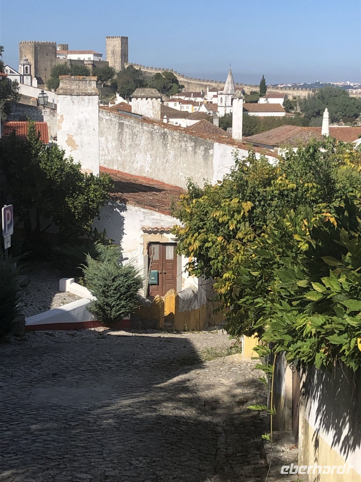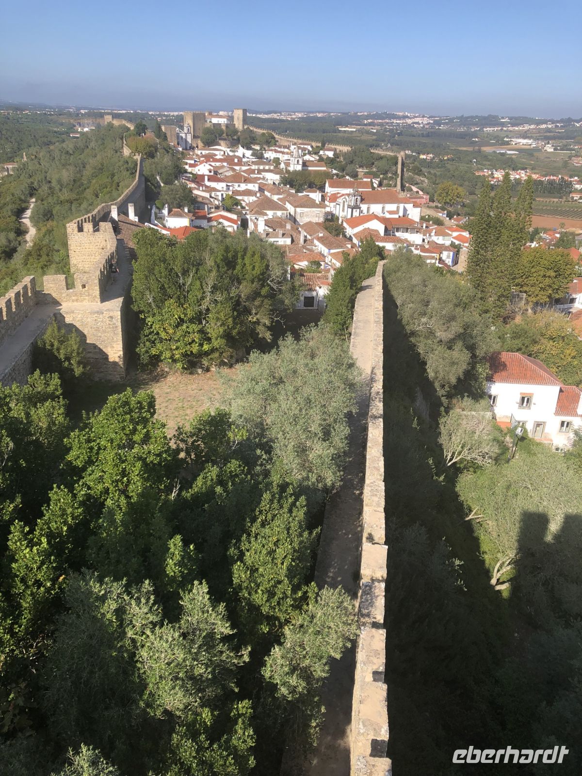 Äußerst frequentiert zeigt sich auch Obidos mit den weißen Häusern und der maurischen Burg, unser letztes Tagesziel. Wir lassen uns im Touristenstrom treiben durch die pittoresken Gassen. Einige Mutige spazieren auf der vollständig erhaltenen Stadtmauer entlang - zur Stadtseite hin meist ohne Geländer.