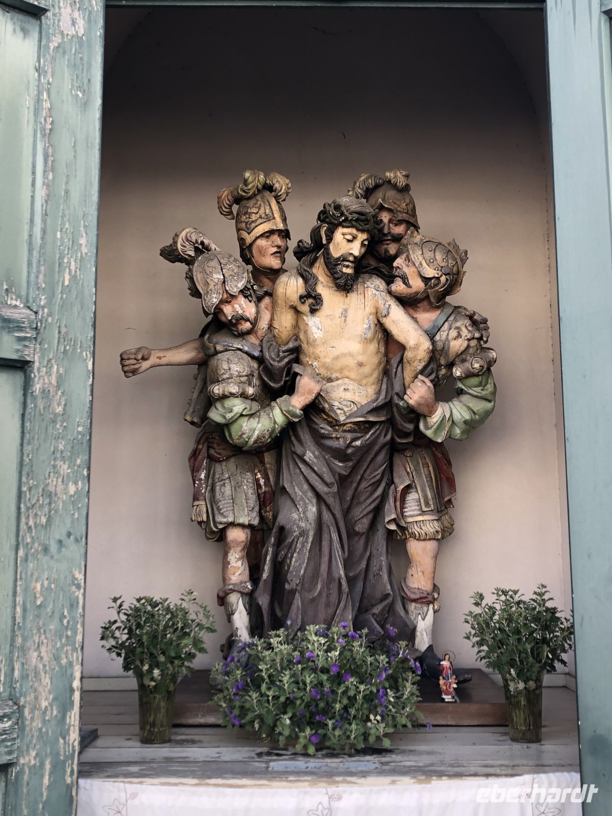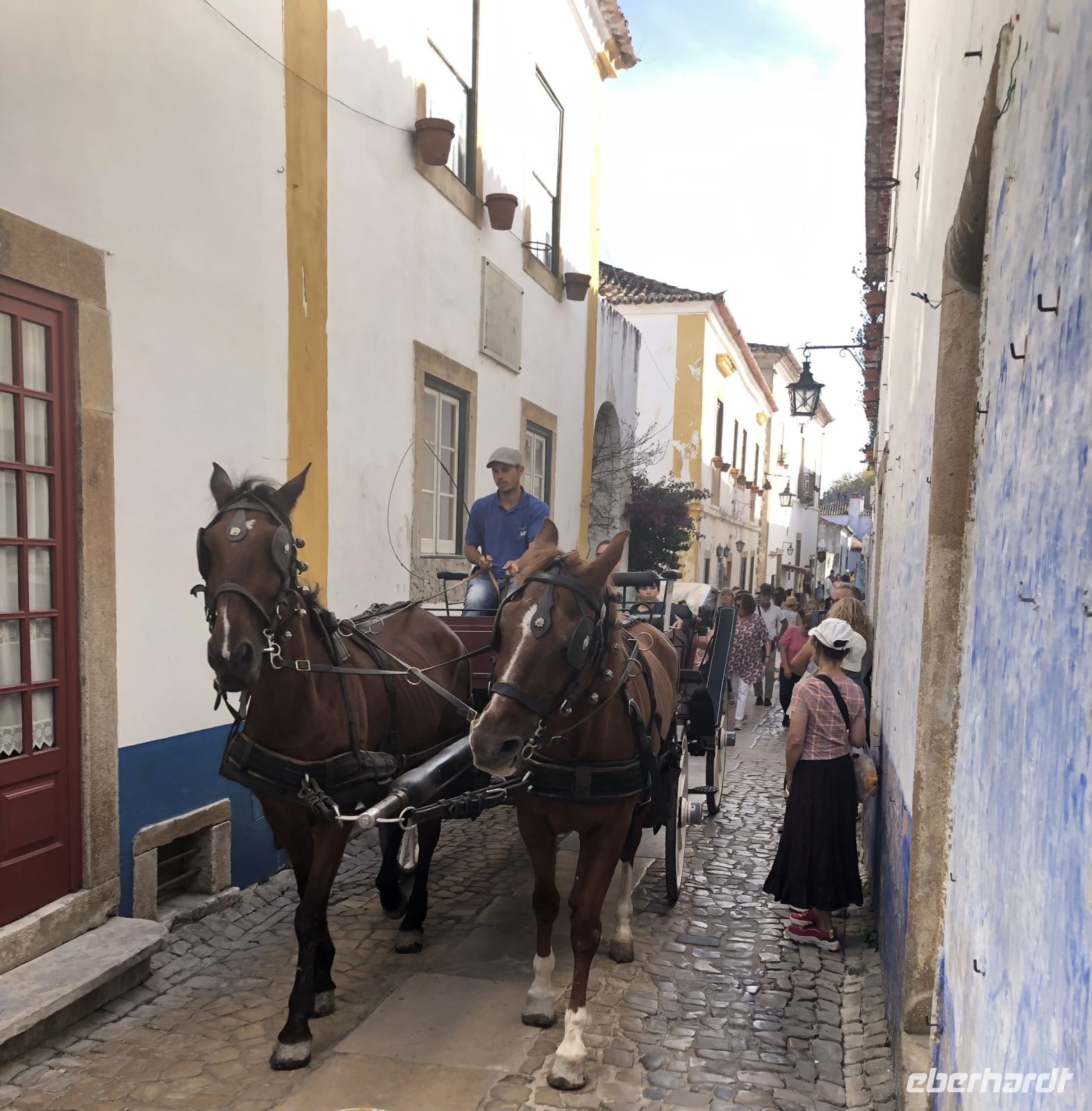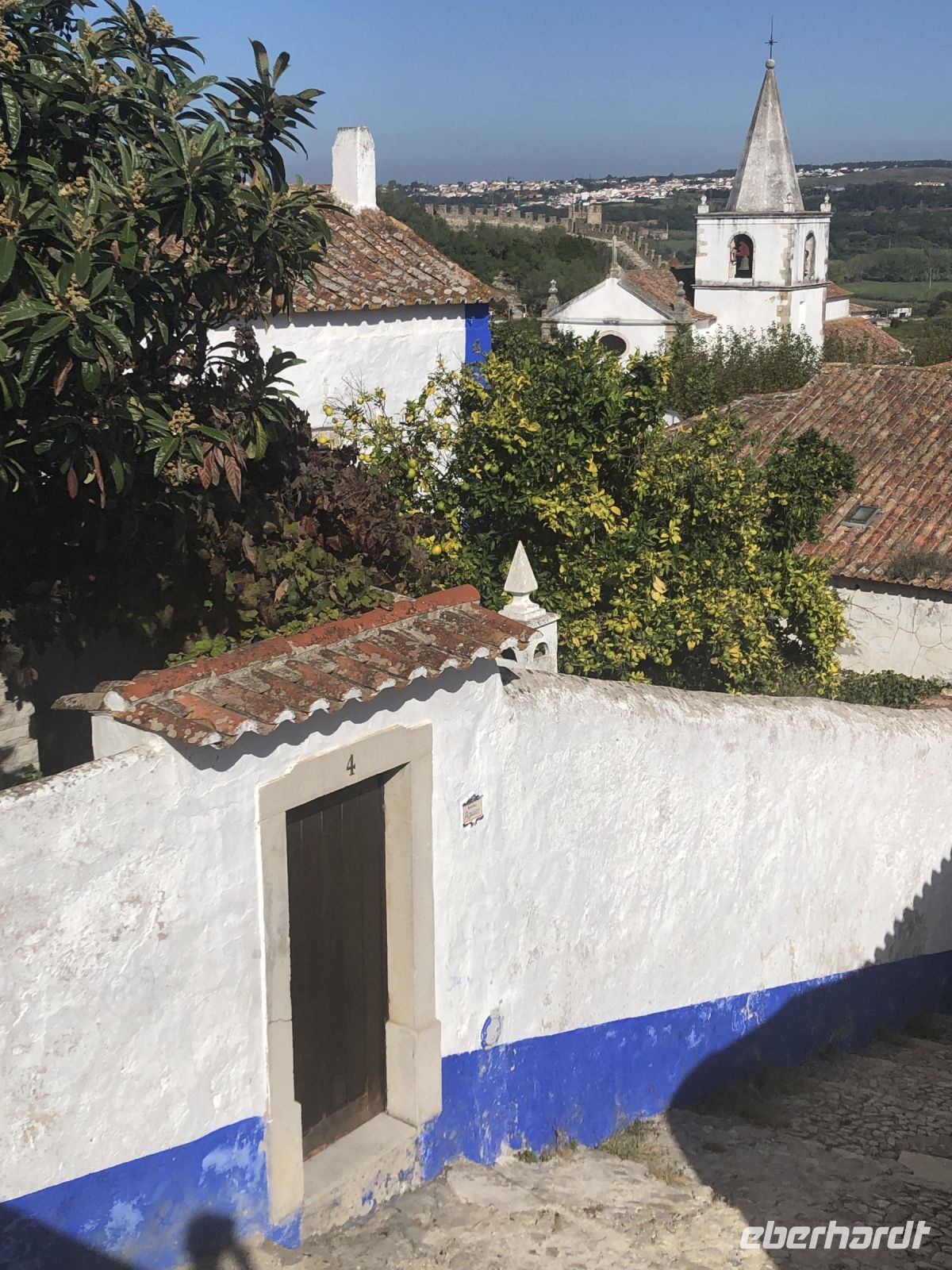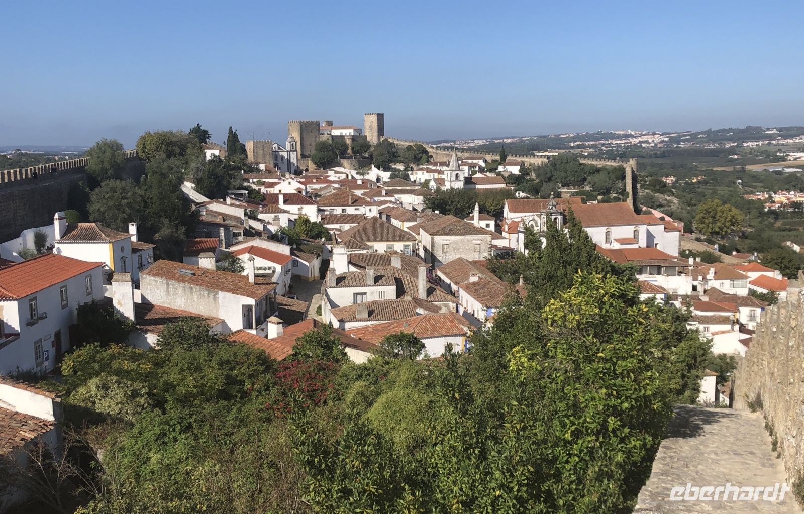 Äußerst frequentiert zeigt sich auch Obidos mit den weißen Häusern und der maurischen Burg, unser letztes Tagesziel. Wir lassen uns im Touristenstrom treiben durch die pittoresken Gassen. Einige Mutige spazieren auf der vollständig erhaltenen Stadtmauer entlang - zur Stadtseite hin meist ohne Geländer.