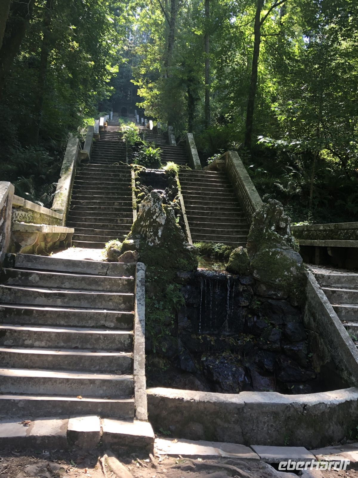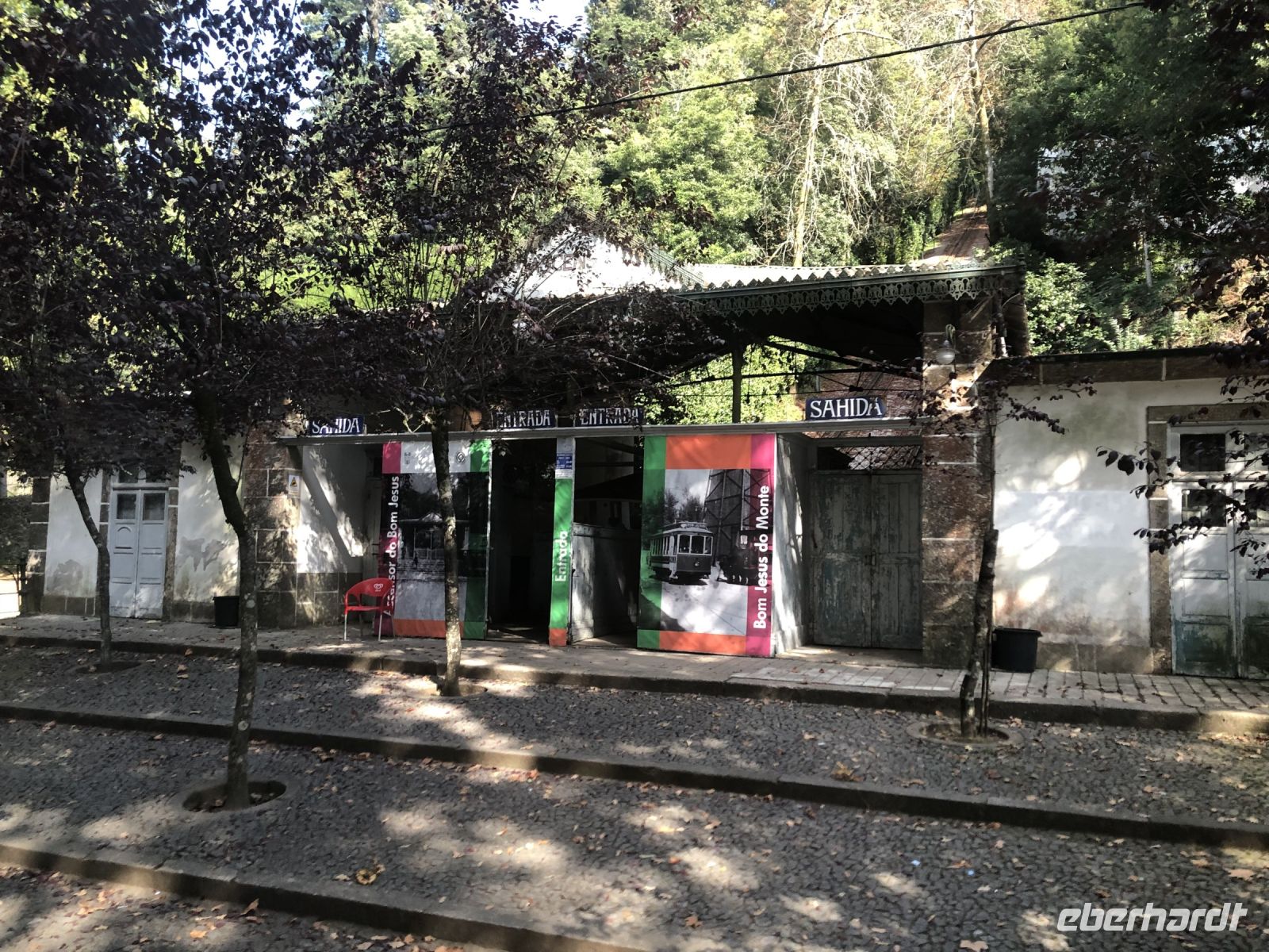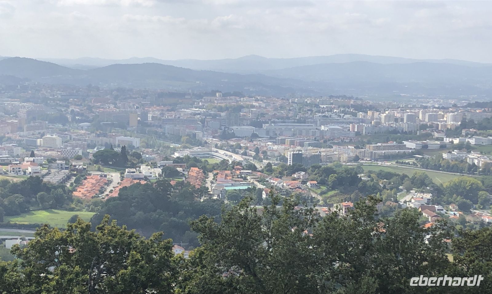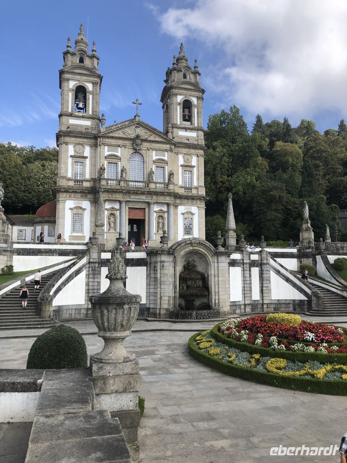 Ein paar Busminuten weiter erwartet uns eine alte Wasserballast-Seilbahn aus dem 19. Jahrhundert, die uns hinauf nach Bom Jesus de Monte bringt. Die Wallfahrtskirche ist zwar kein kunsthistorischer Höhepunkt der Reise, aber allein die Fahrt hoch mit der Bahn und der weite Blick von der Aussichtsplattform hinunter auf Braga sind den Besuch allemal Wert.