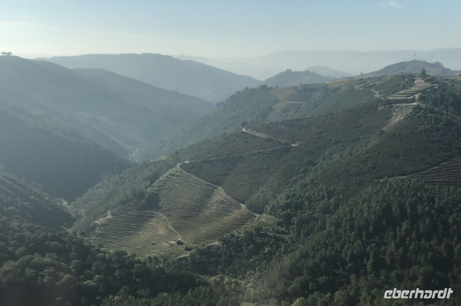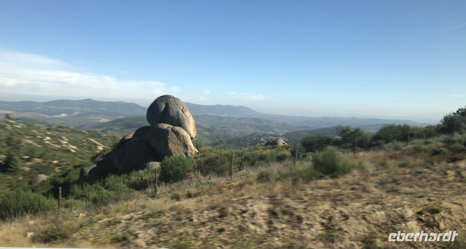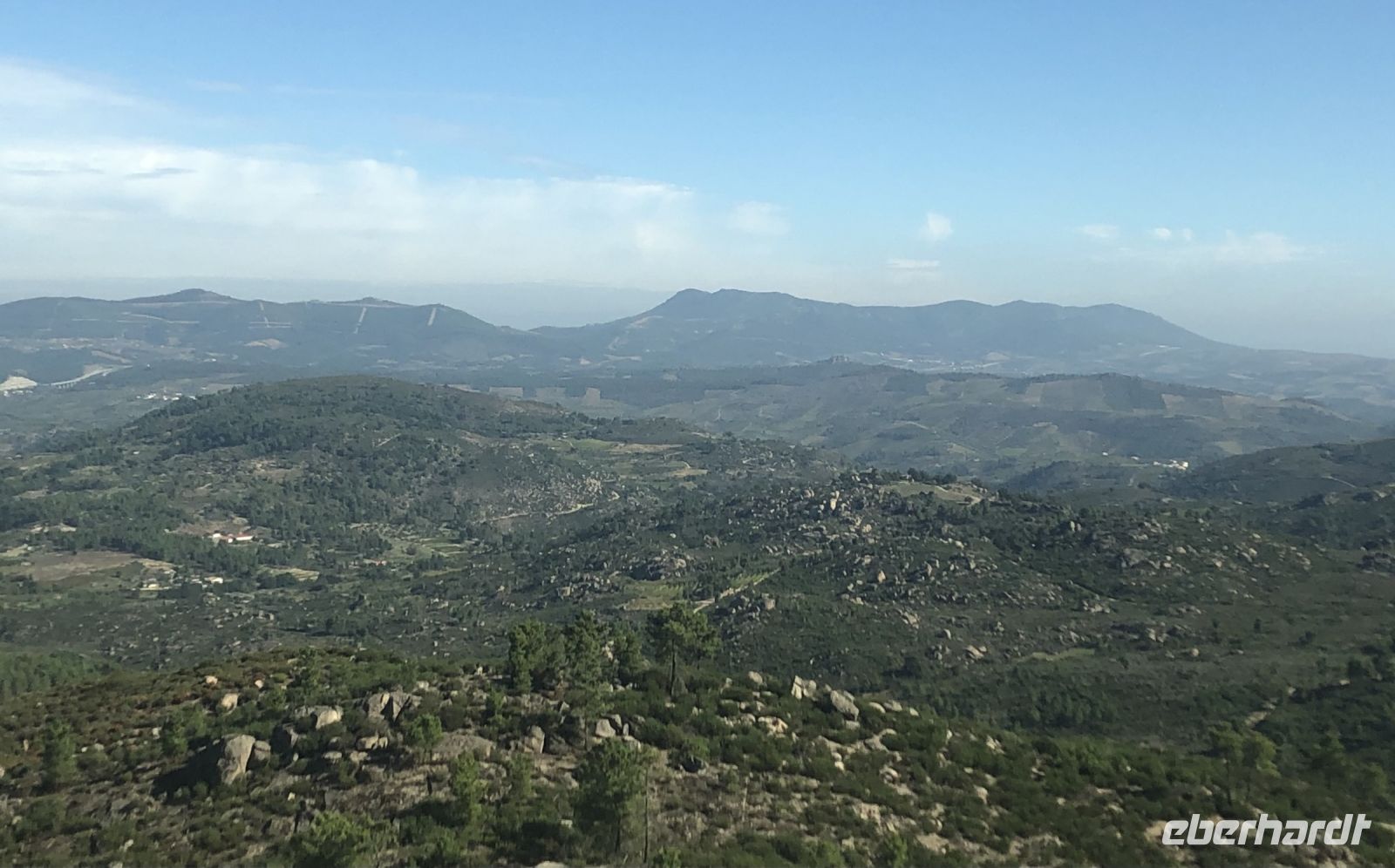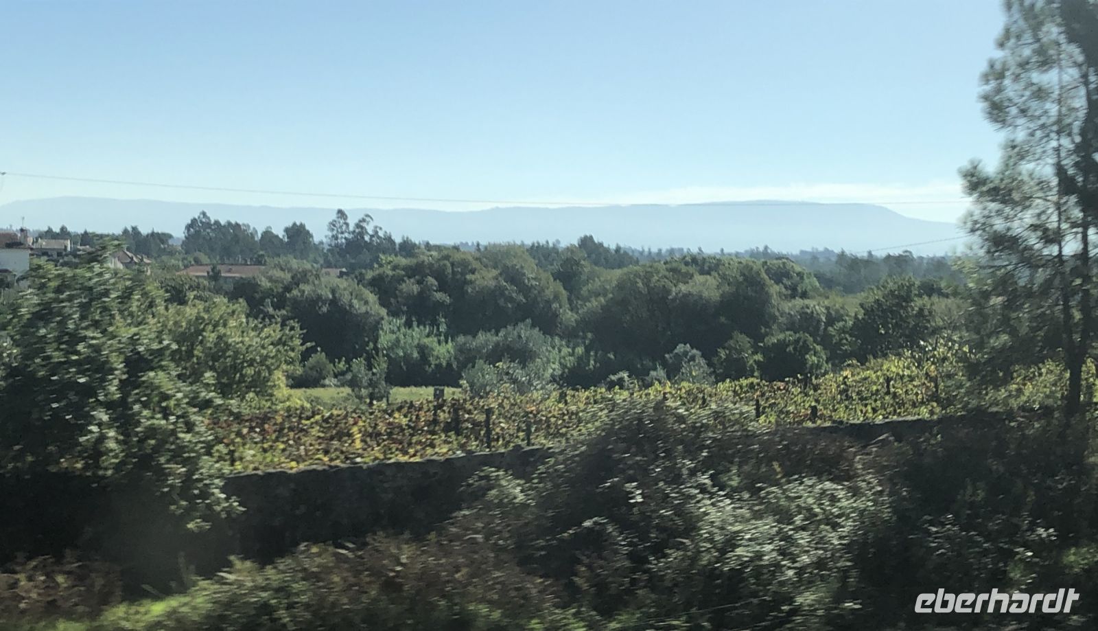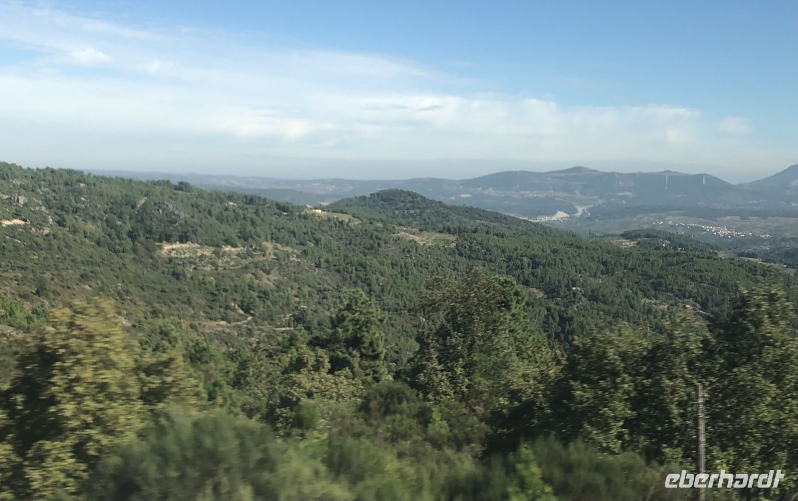 Unterwegs sehen wir dann die Silhouette der fast 2000 Meter hohen Serra da Estrela, deren Gipfel im Winter schneebedeckt sind, erfahren auch über die sich jährlich wiederholenden oft starken Waldbrände in der im Sommer trockenheißen Region.