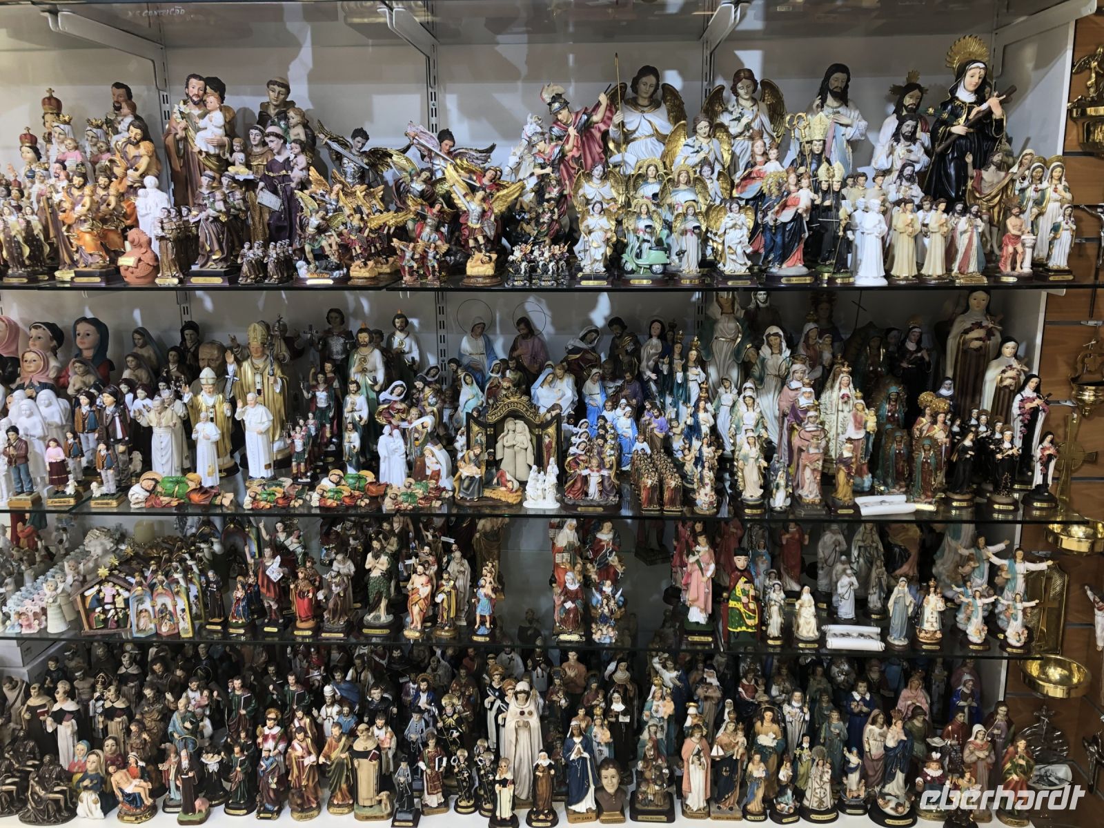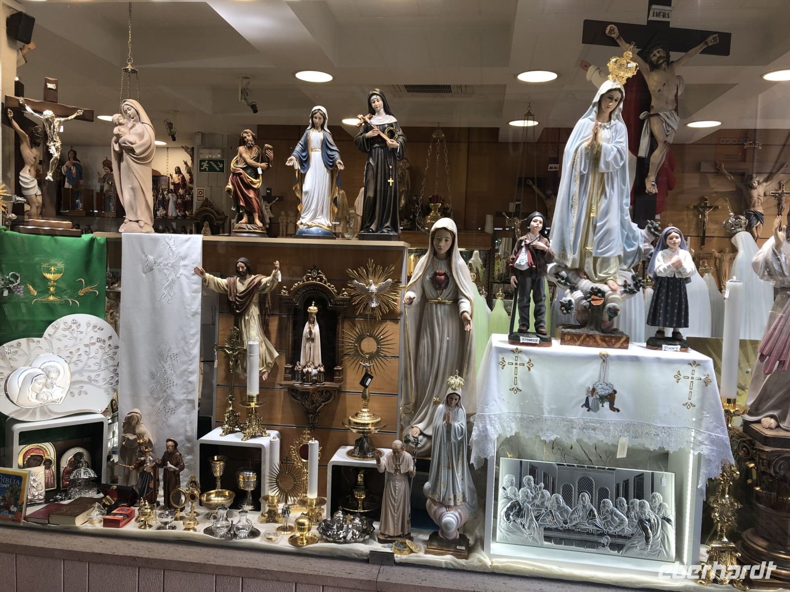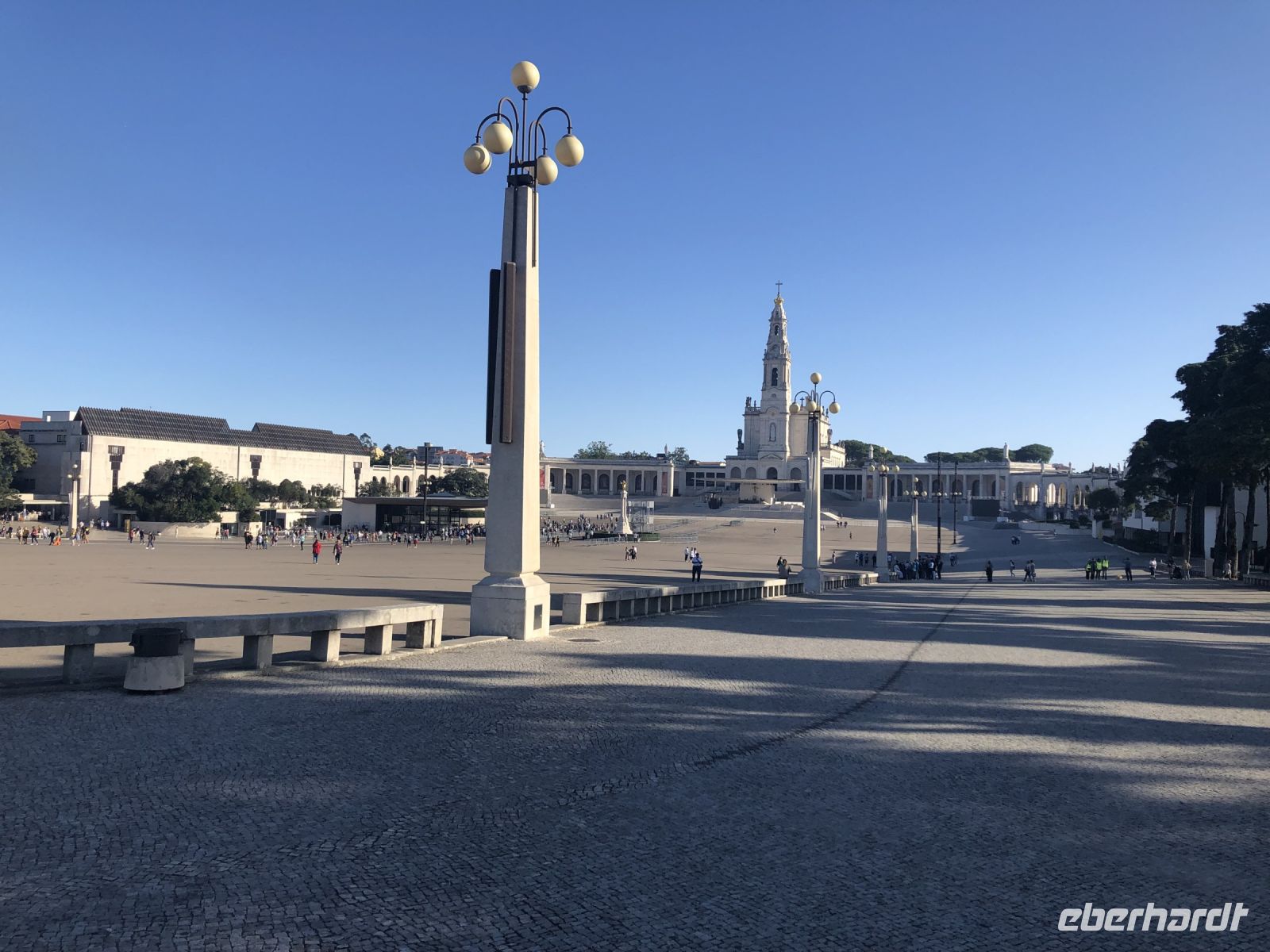 Zur Überraschung aller beginnen wir den Vormittag in dichtem Nebel, der sich an den Busscheiben niederschlägt. Von einer Minute auf die andere dann strahlend blauer Himmel! Kein Wunder sind wir doch unterwegs nach Fatima, Portugals Marienwallfahrtsziel. Jedes Jahr besuchen mehrere Millionen Pilger diesen Ort, einige rutschen auf Knien zum Gotteshaus. Wir dagegen spazieren gemütlich über den riesigen Platz und genießen die imposante Kulisse mit der neobarocken Basilika. Am heutigen Nationalfeiertag wird es schnell zunehmend voller in Fatima mit seinen unzähligen Souvenirgeschäften.