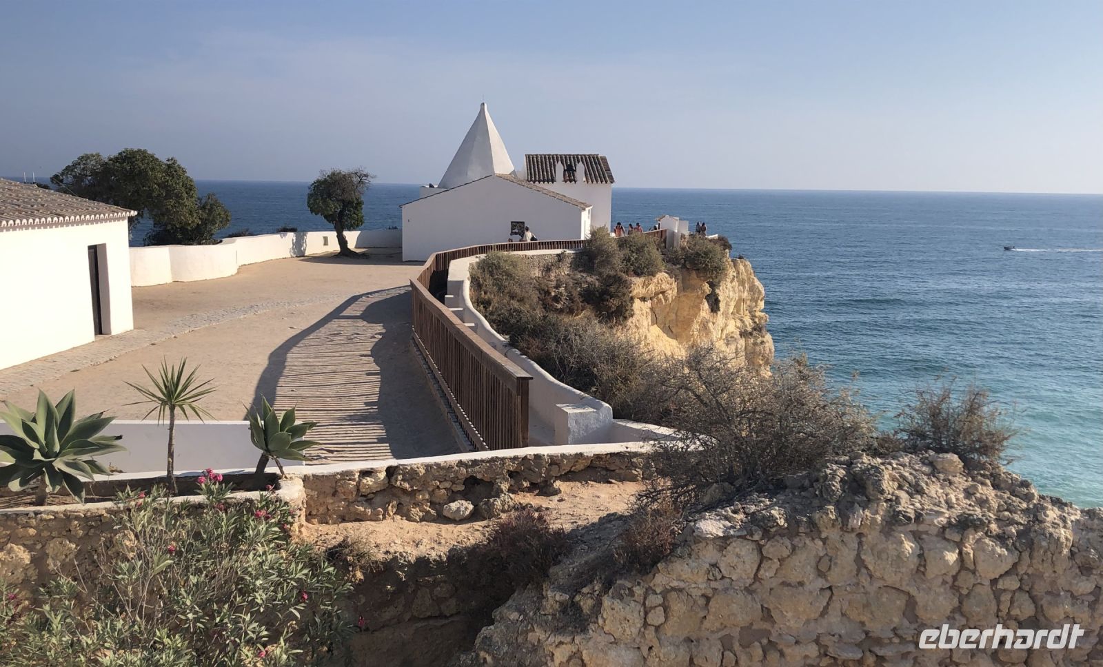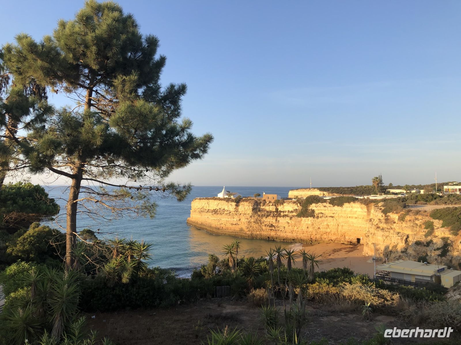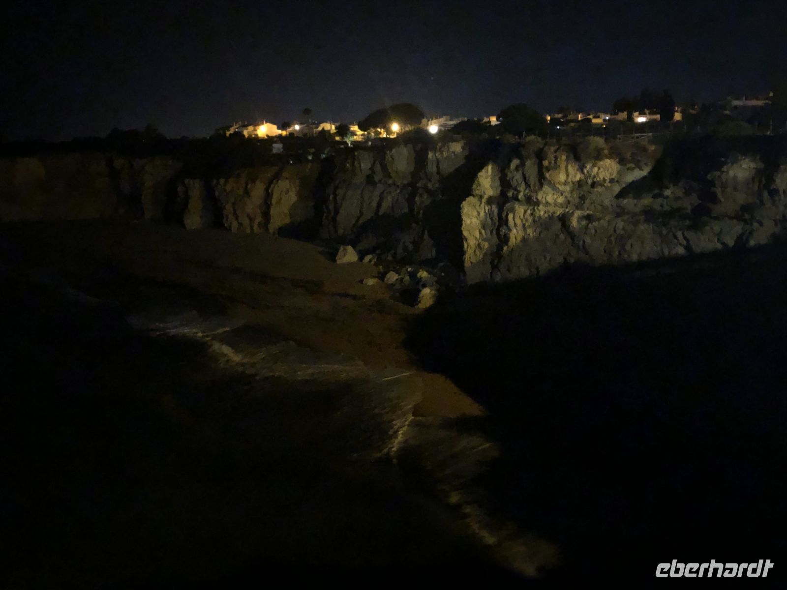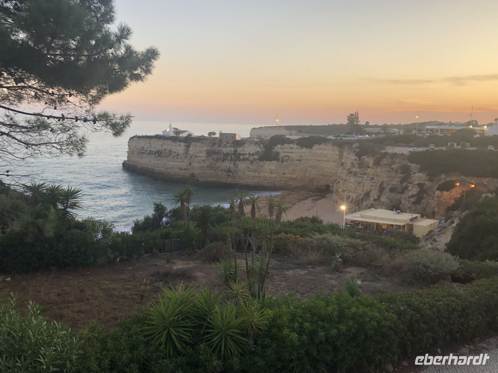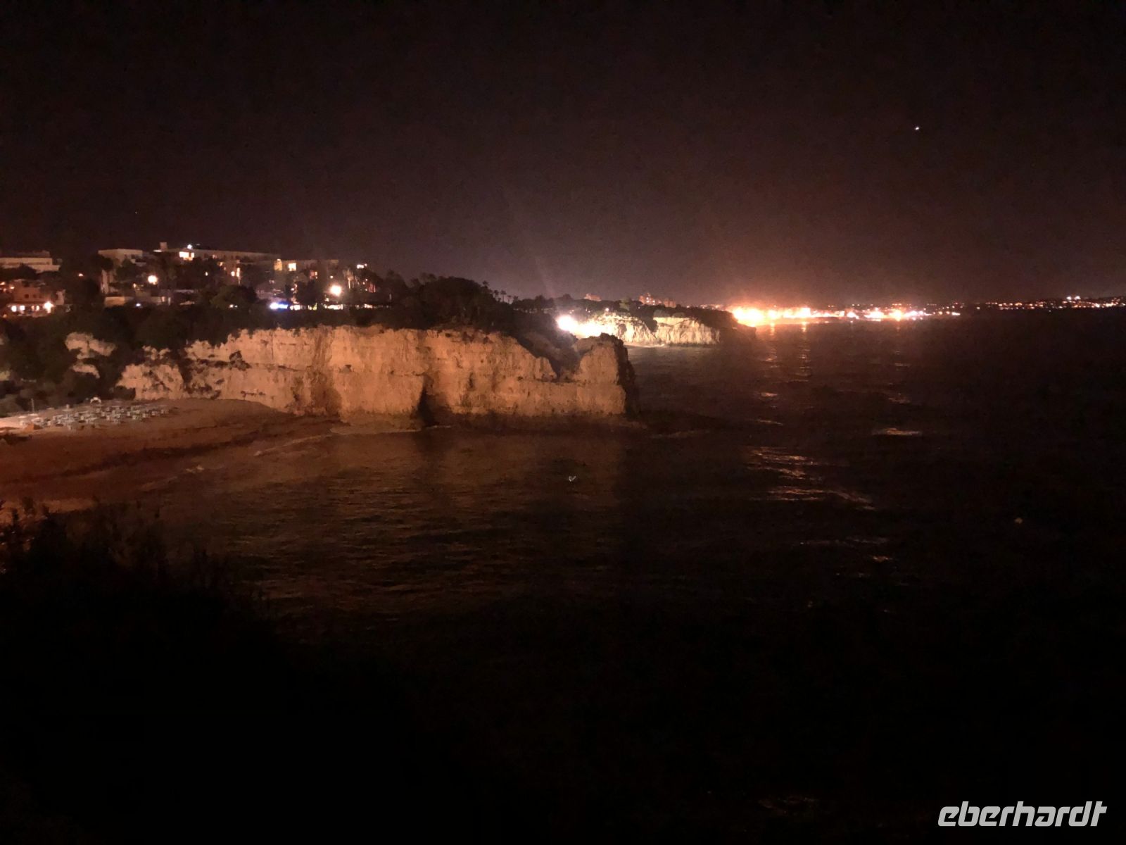 Nach dem Abendessen spazieren wir gemeinsam zur Kapelle Senhora da Rocha auf dem kleinen vom Hotel aus sichtbaren Felsvorsprung und genießen bei warmen Temperaturen das romantische Lichtermeer von Armacao da Pera.