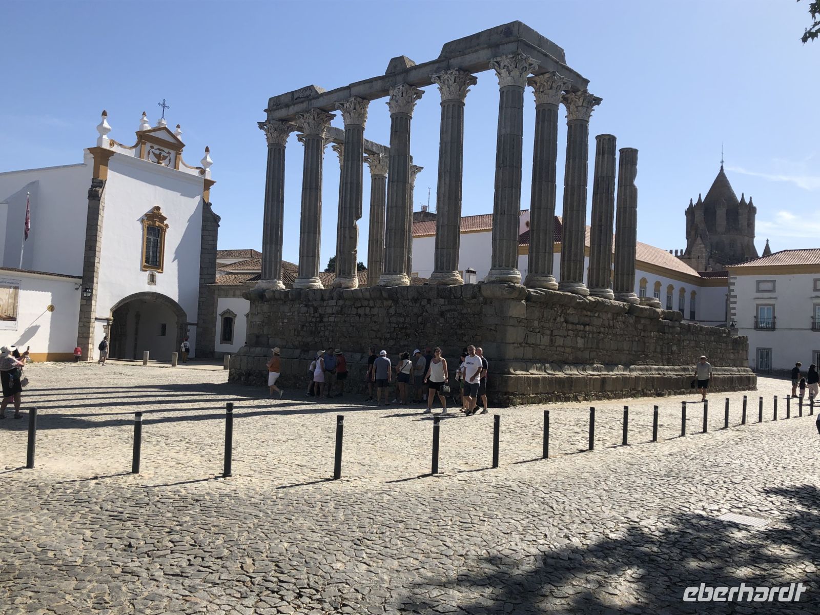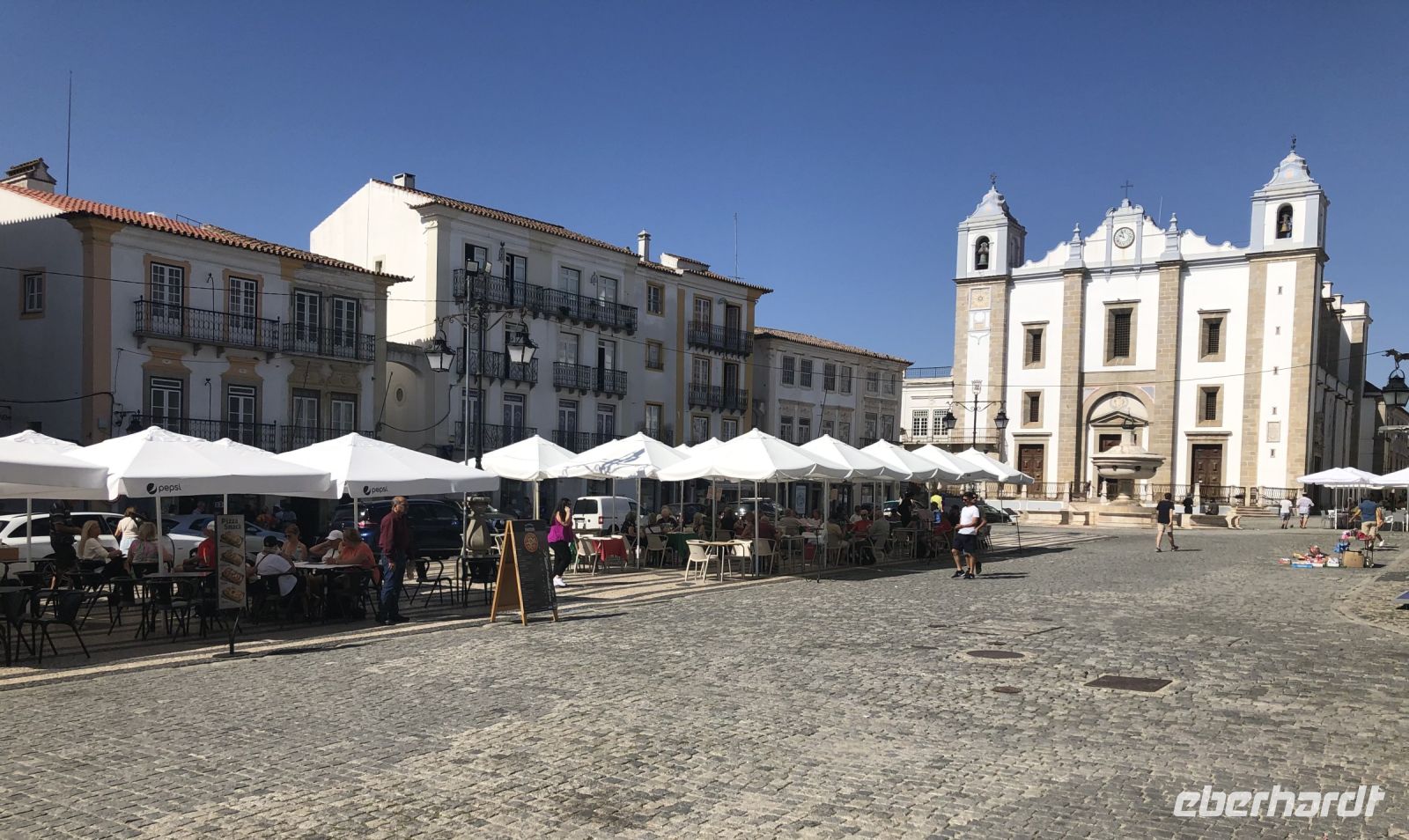 Und dann freuen wir uns natürlich auf die schöne Universitätsstadt Evora, die mit knapp 60000 Einwohnern größte Stadt im Alentejo. Durch die Stadtmauer hindurch gelangen wir schnell zum Römertempel, der größten Sehenswürdigkeit. Seine Säulen waren im Mittelalter zugemauert, da er lange als Schlachthof genutzt wurde. In der gotischen Kathedrale beeindruckt uns die Orgel aus dem 18. Jahrhundert, und wir erleben beim Gang durch die Stadt und beim Passieren der Praca de Giraldo noch einmal das typische portugiesische Flair. Nach der Mittagspause nahe der Franziskanerkirche geht es ruhiger weiter in der Abgeschiedenheit des Alentejo, bevor wir in unserem Hotel in Porches, einem Vorort des vor allem bei Einheimischen beliebten Armacao de Pera ankommen - aus dem einstigen Fischerdorf ist ein sehr touristischer Badeort geworden.