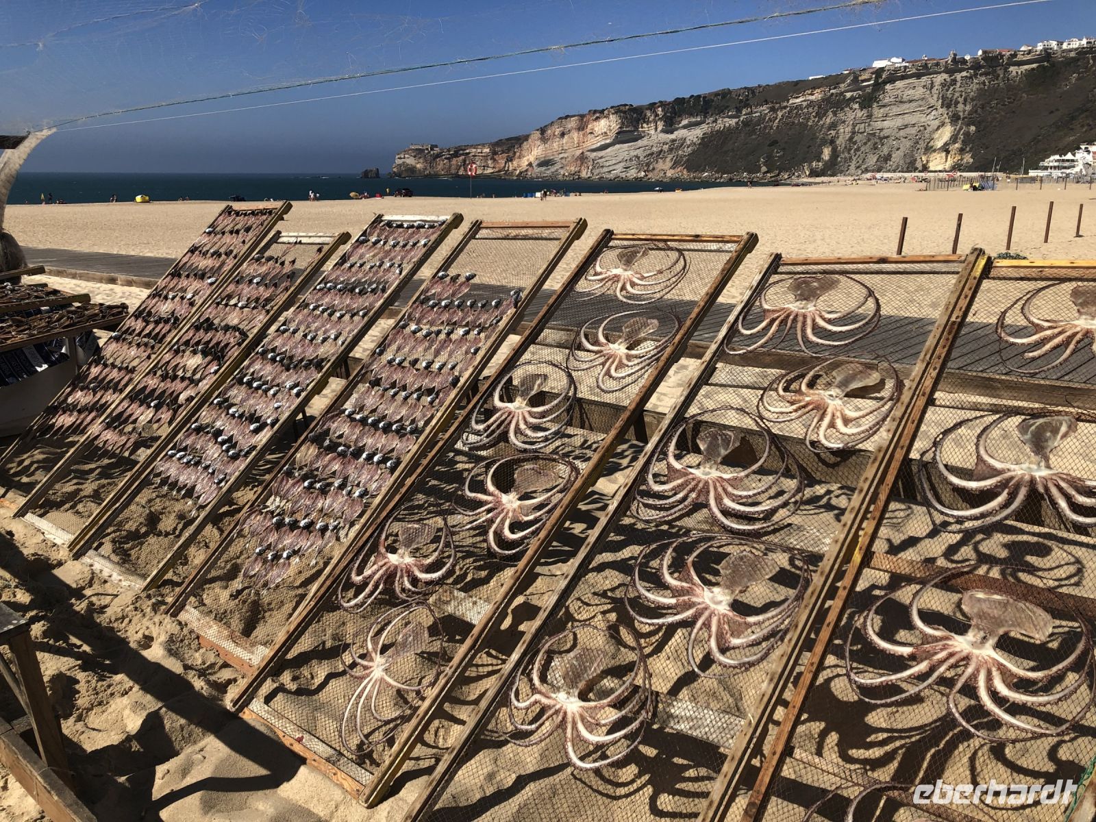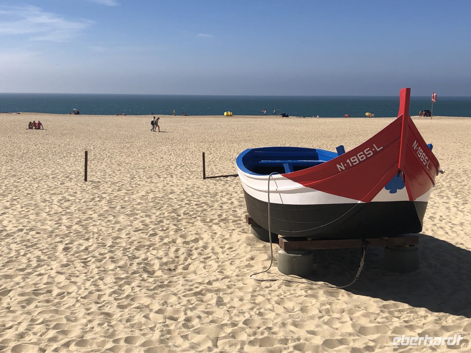 An der Küste in Nazare verbringen wir unsere Mittagspause, spazieren entlang des langen schönen Strandes. Aus dem einstigen Fischerdorf ist ein vielbesuchter Urlaubsort geworden und ein Eldorado für Surfer.