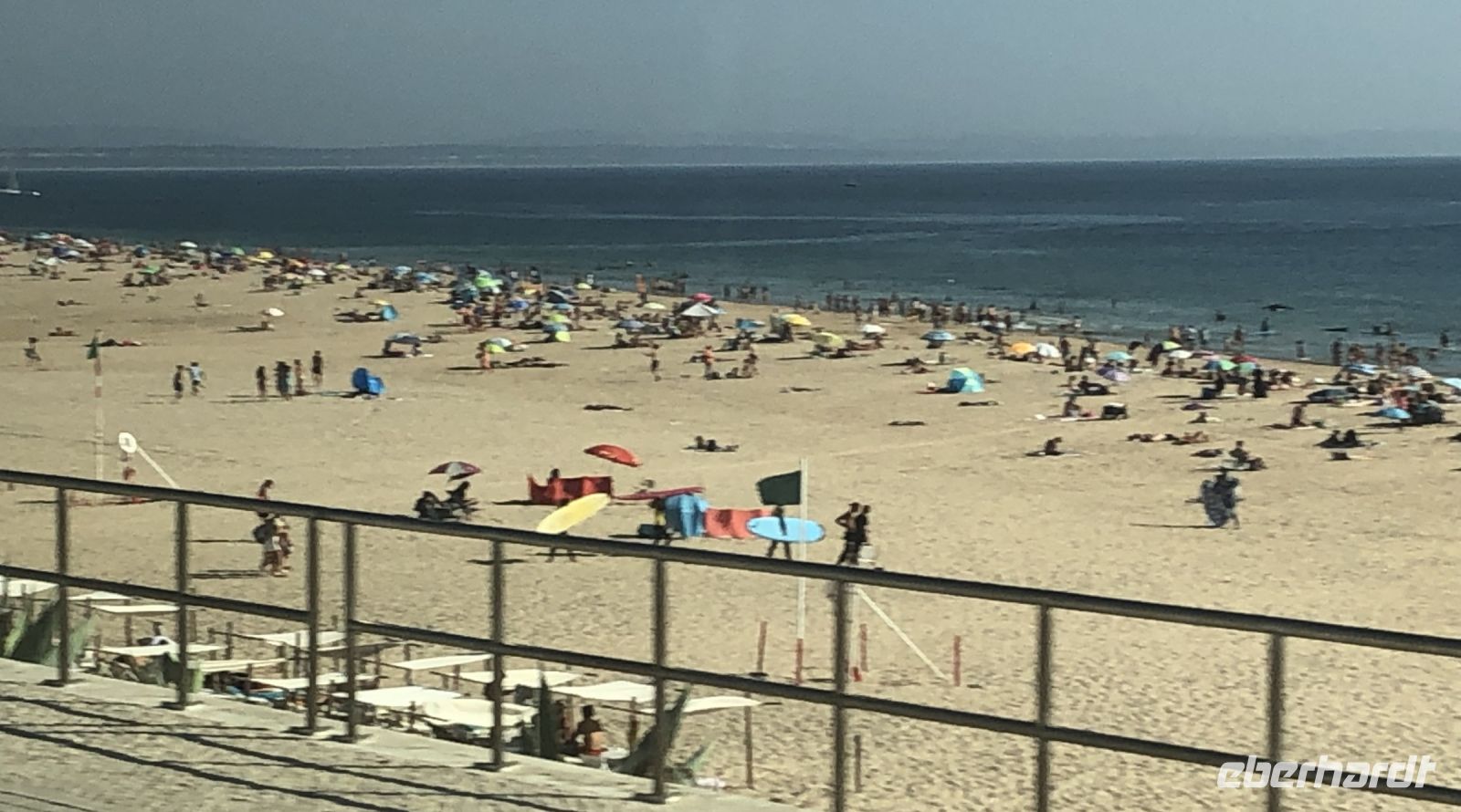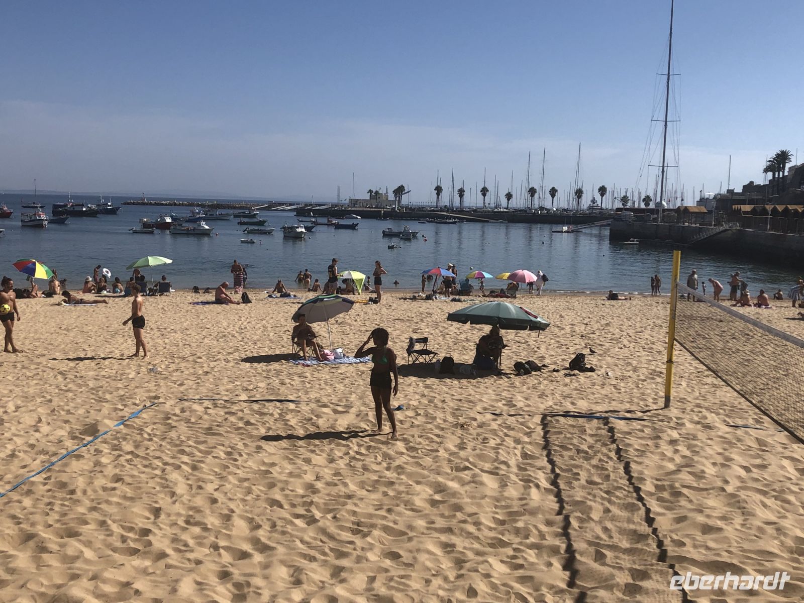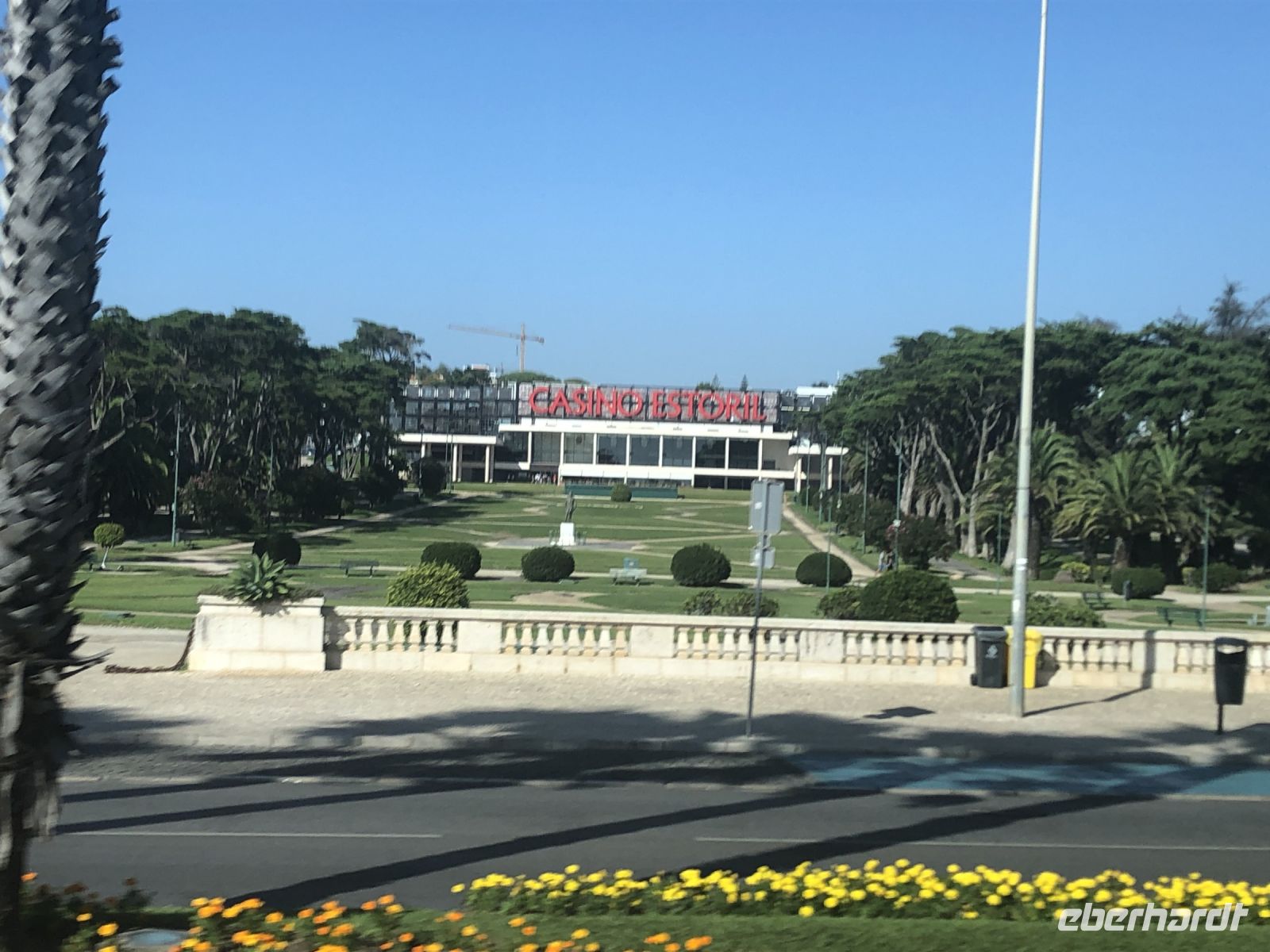 Die Küste entlang mit den belebten Stränden erreichen wir Estoril, das mondäne Strandbad ist gewissermaßen die Geburtsstätte des portugiesischen Tourismus. Wir umfahren das heute noch existierende Casino, das eines der größten in Europa ist.