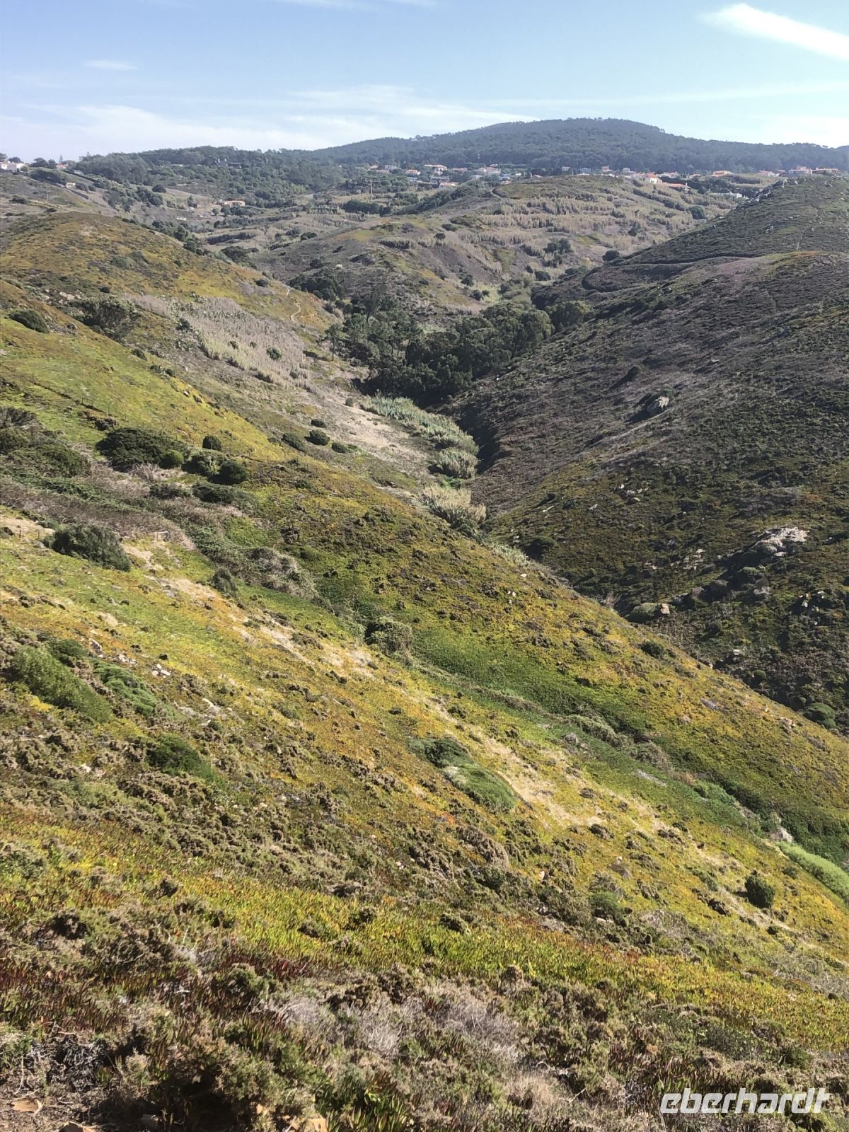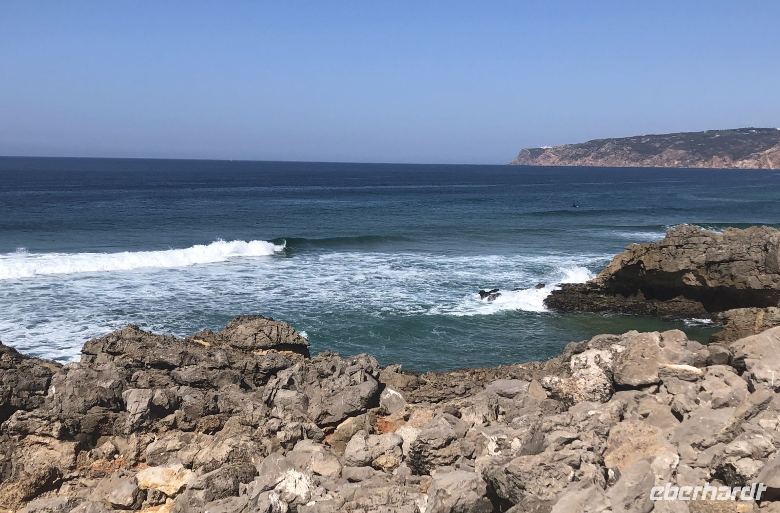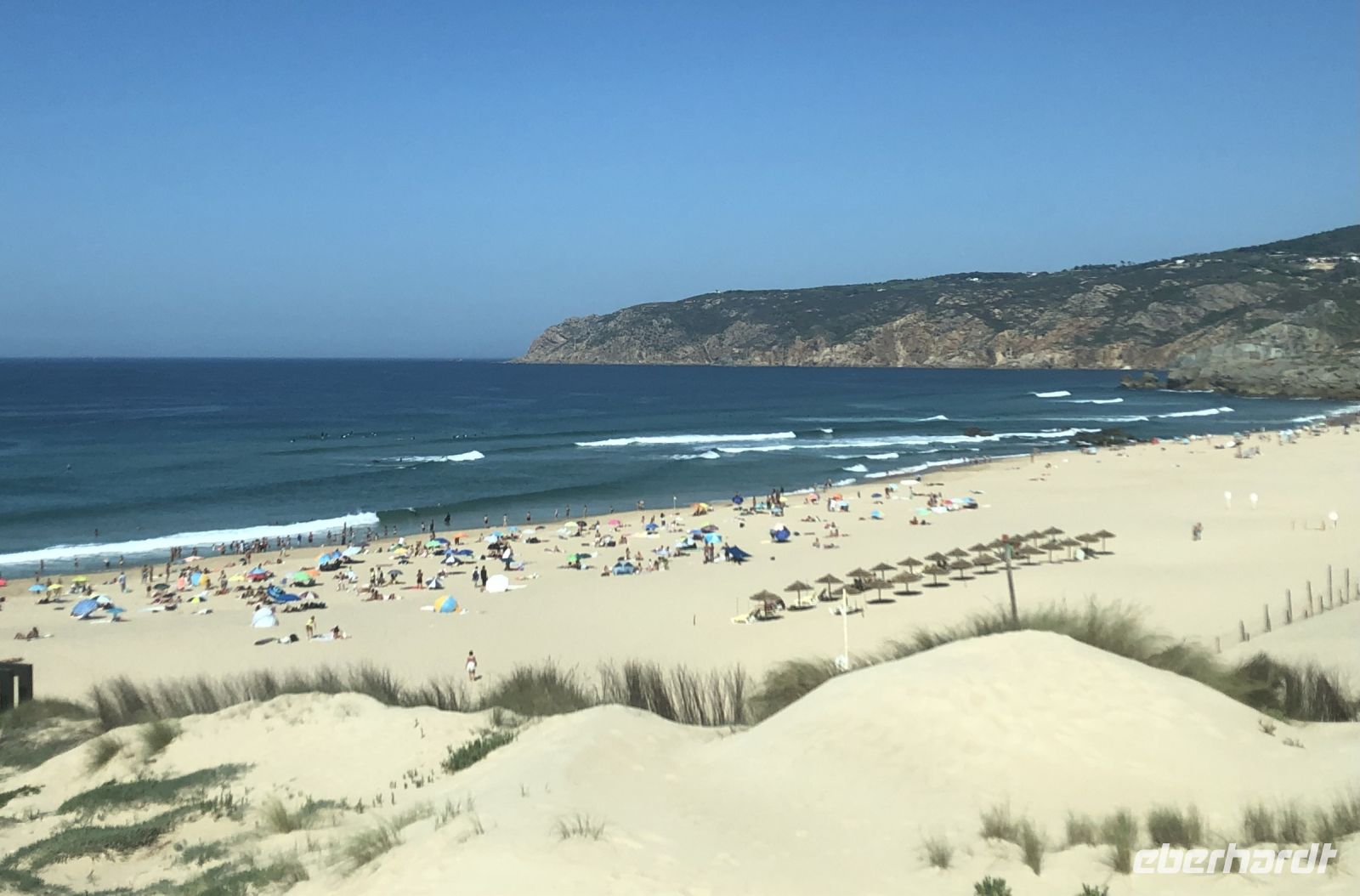 Mit Ziel "Portugiesische Riviera" fahren wir das Gebirge hinunter vorbei an dem unter Surfern weltbekannten Guincho-Strand mit seinen Dünen.