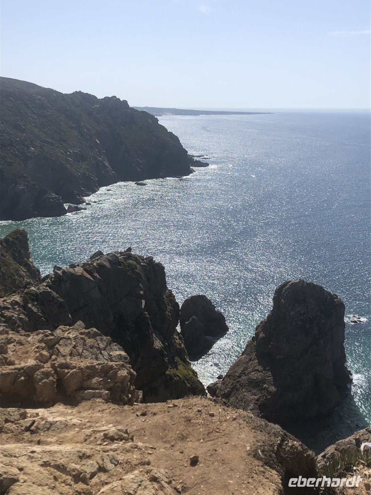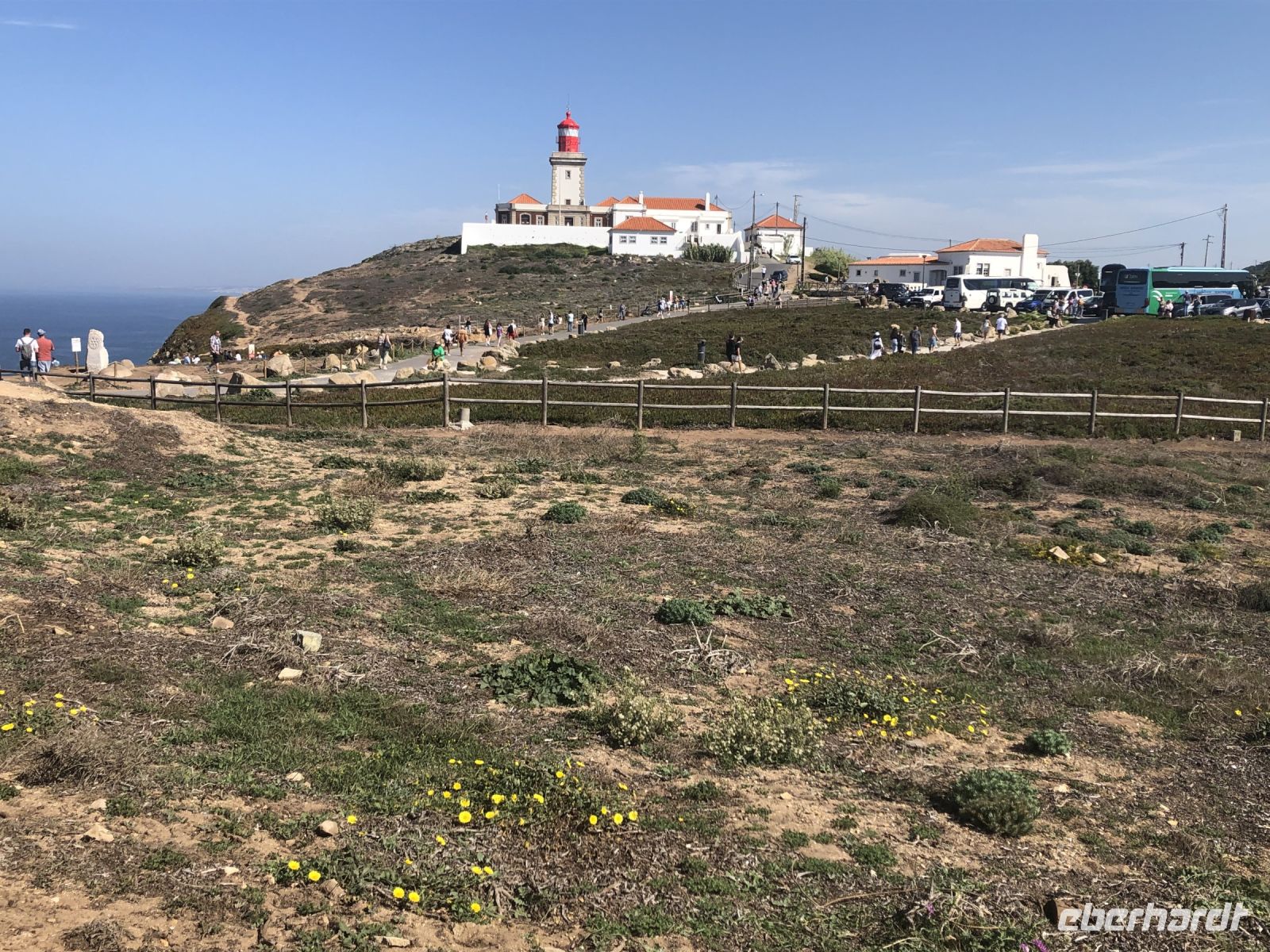 Anschließend verweilen wir oben am Cabo da Roca mit seinem Leuchtturm, dem westlichsten Punkt Festlandeuropas. Die Ausblicke auf das weite Meer und die zerklüftete Felsenküste sind grandios, die flächendeckenden gelb blühenden Mittagsblumen leider schon verblüht.