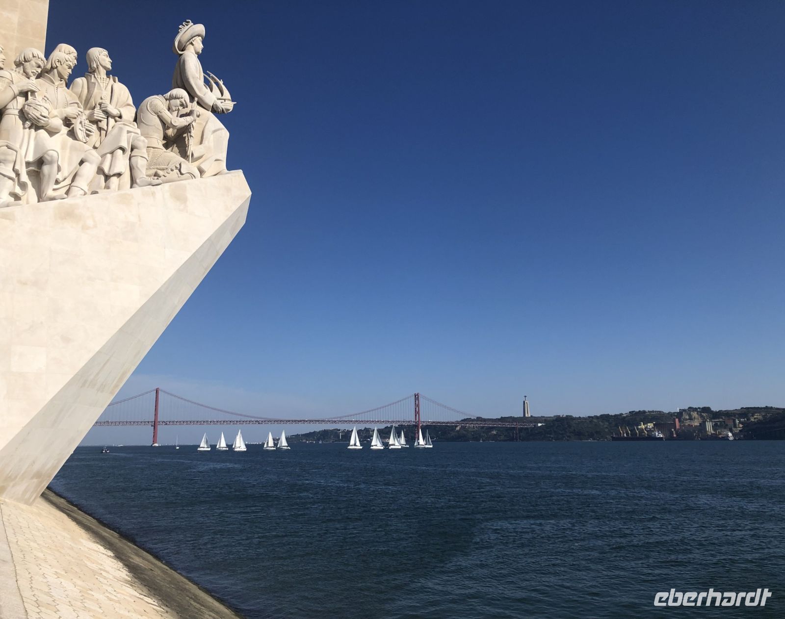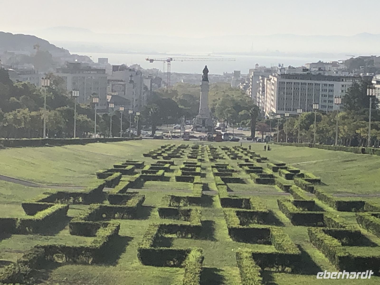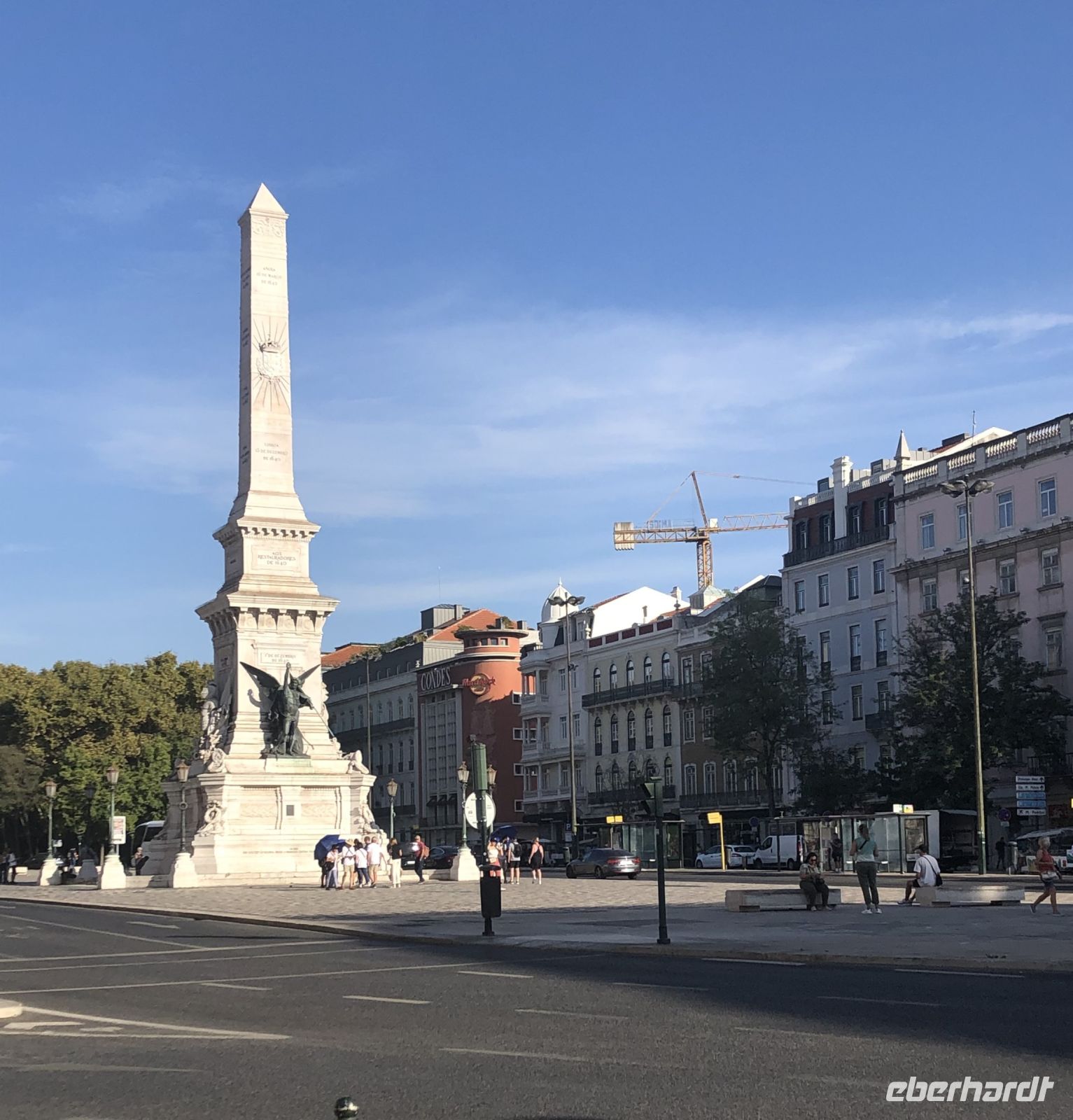 Vorbei an der Stierkampfarena, einem roten Ziegelsteinbau aus dem späten 19. Jahrhundert mit einem Fassungsvermögen von knapp 9000 Besuchern lässt bei uns der erste weite Ausblick oberhalb des Parque Eduardo VII die Vorfreude auf die Hauptstadt steigen. Weiter geht es vorbei an der Statue des Marques de Pombal und die Avenida da Libertade hinunter, der Champs-Elysees Lissabons.