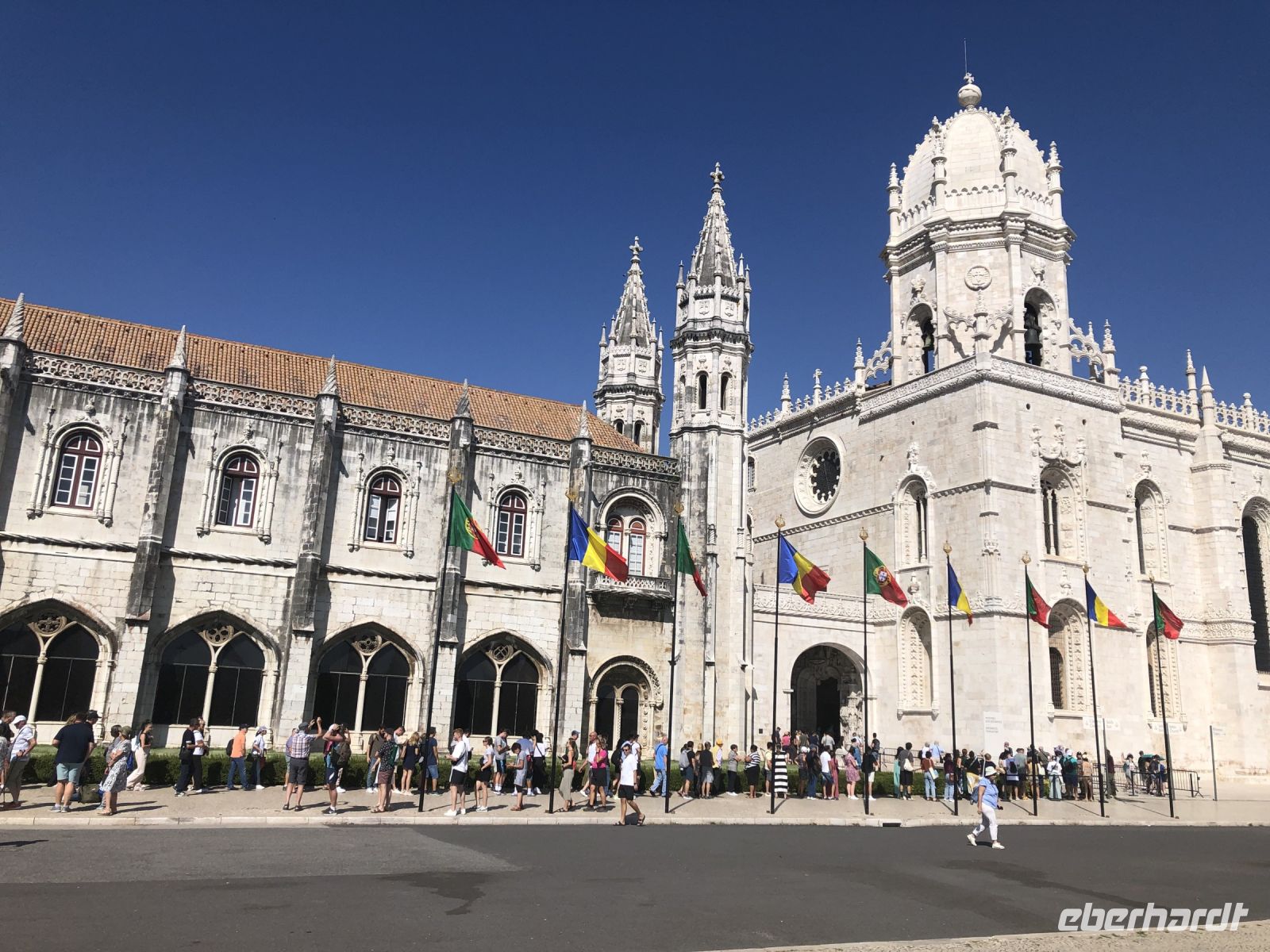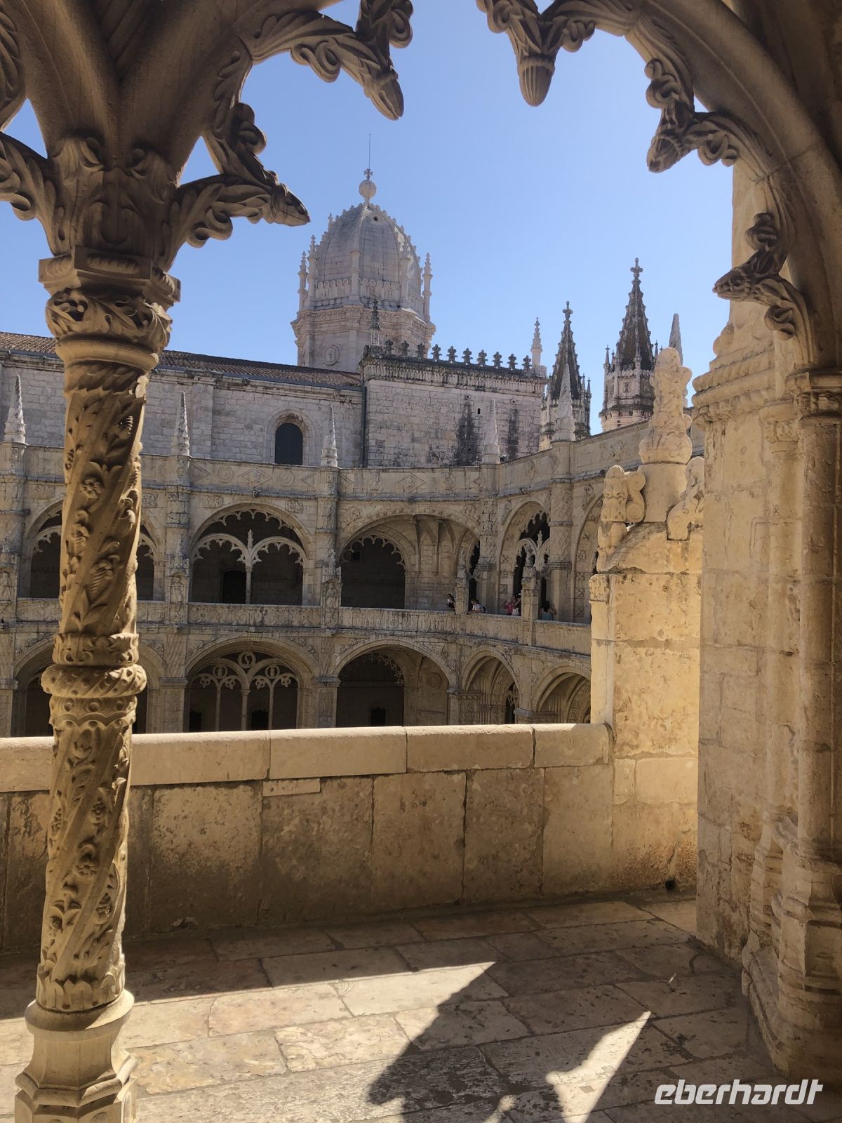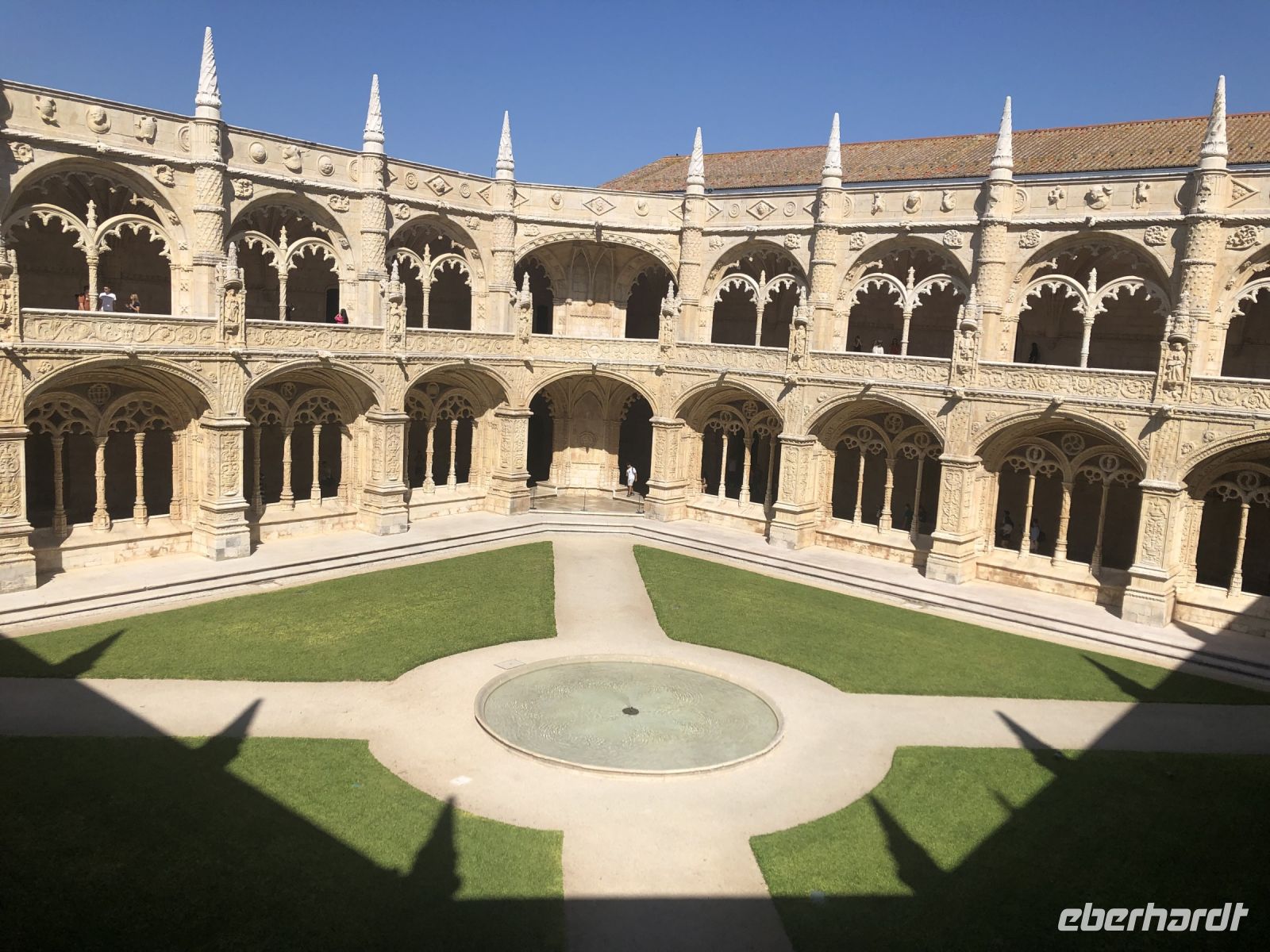 Am Nachmittag geht es nach Belem mit den prachtvollen Bauten aus dem Goldenen Zeitalter Portugals. Wir passieren den klassizistischen Nationalpalast, wo im 19. Jahrhundert die Könige wohnten und seit 1910 die bürgerlichen Staatspräsidenten. Das Jeronimos-Kloster begeistert mit seinem manuelinischen Kreuzgang und dem Grab von Vasco da Gama. Die kurzen Spaziergänge und Aufenthalte zum Torre de Belem und zum Entdeckerdenkmal mit Blick auf die 28 Meter hohe Jesus-Statue auf der anderen Uferseite des Tejo lassen gar Urlaubsstimmung aufkommen, bevor wir unter der Brücke des 25. April ziemlich erschöpft zum Hotel zurückfahren.