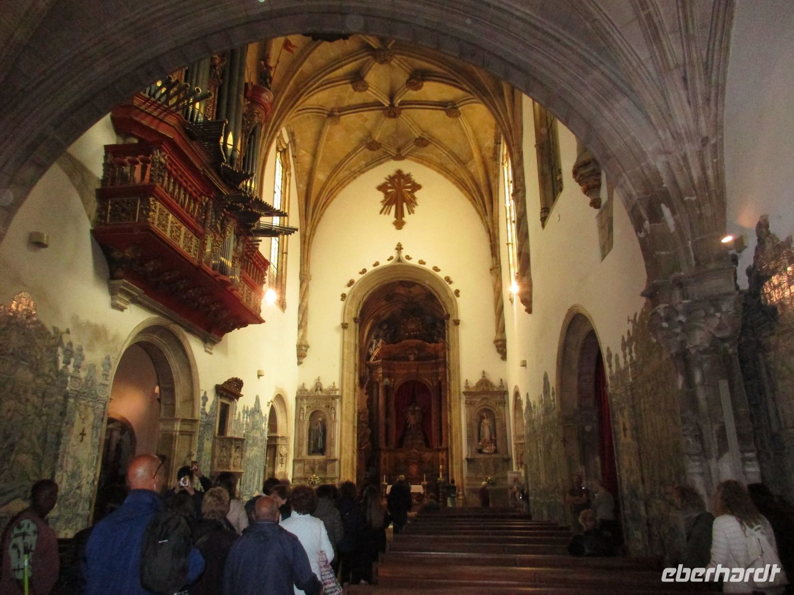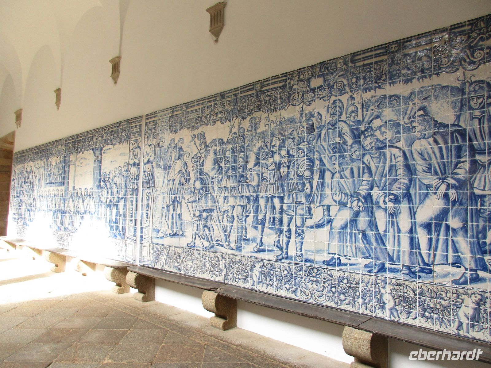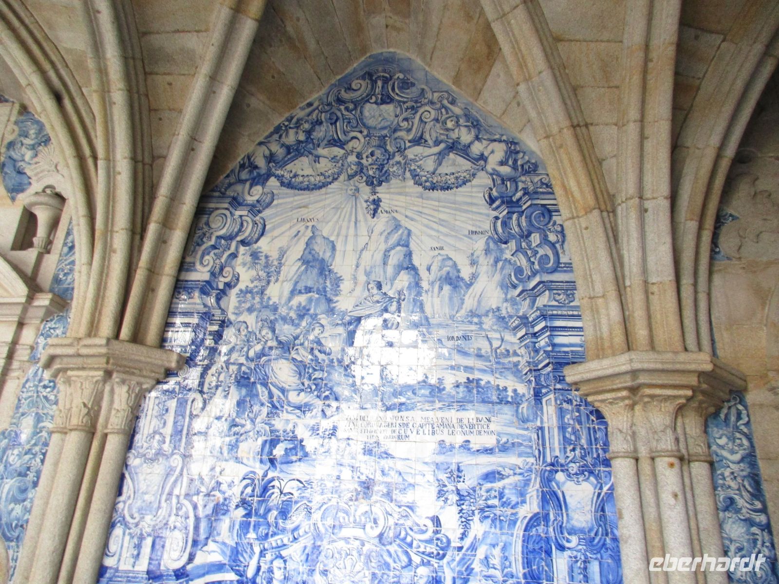 Nun laufen wir bis zu dem beliebten Bahnhof Sao Bento und verweilen hier, um die wunderschönen Azulejos zu bewundern, die zu kunstvollen Bildern zusammengesetzt wurden und viele Szenen aus Schlachten und die Hochzeit des Königspaares darstellen. Auch hier wird noch restauriert, um alles wieder in neuem Glanze erstrahlen zu lassen. Weiter spazieren wir zur Hauptkirche Portos.
