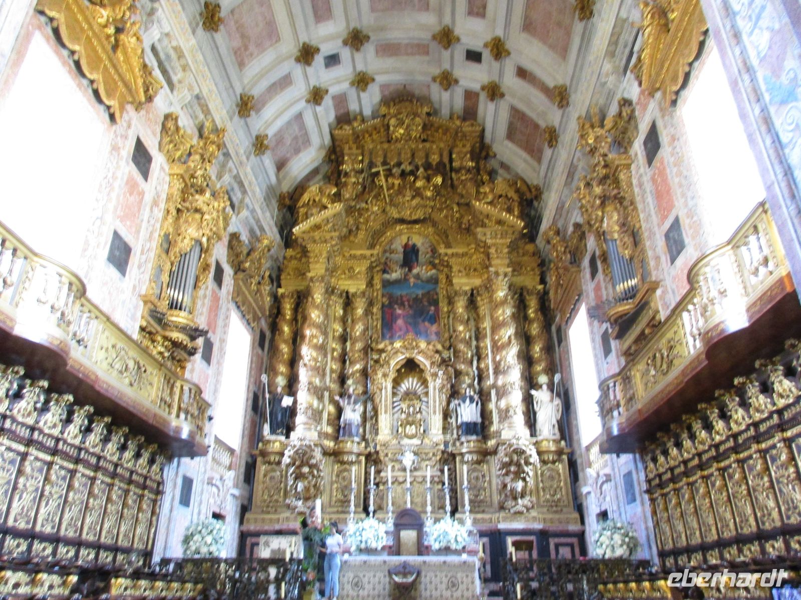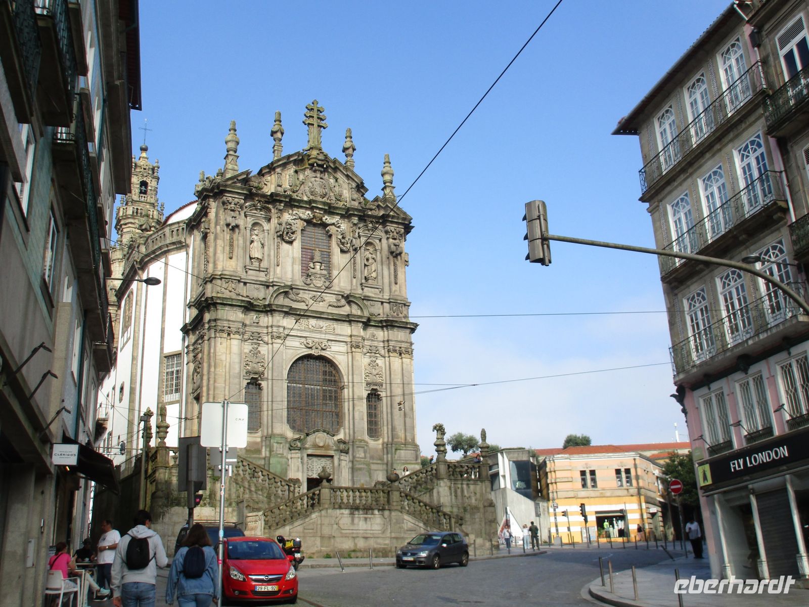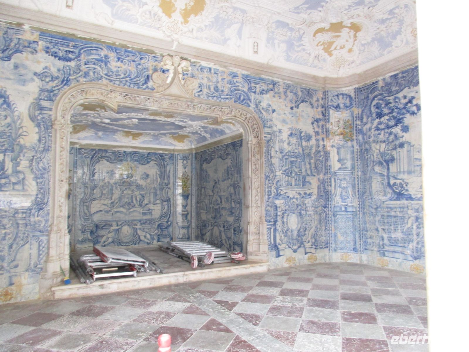Nun laufen wir bis zu dem beliebten Bahnhof Sao Bento und verweilen hier, um die wunderschönen Azulejos zu bewundern, die zu kunstvollen Bildern zusammengesetzt wurden und viele Szenen aus Schlachten und die Hochzeit des Königspaares darstellen. Auch hier wird noch restauriert, um alles wieder in neuem Glanze erstrahlen zu lassen. Weiter spazieren wir zur Hauptkirche Portos.