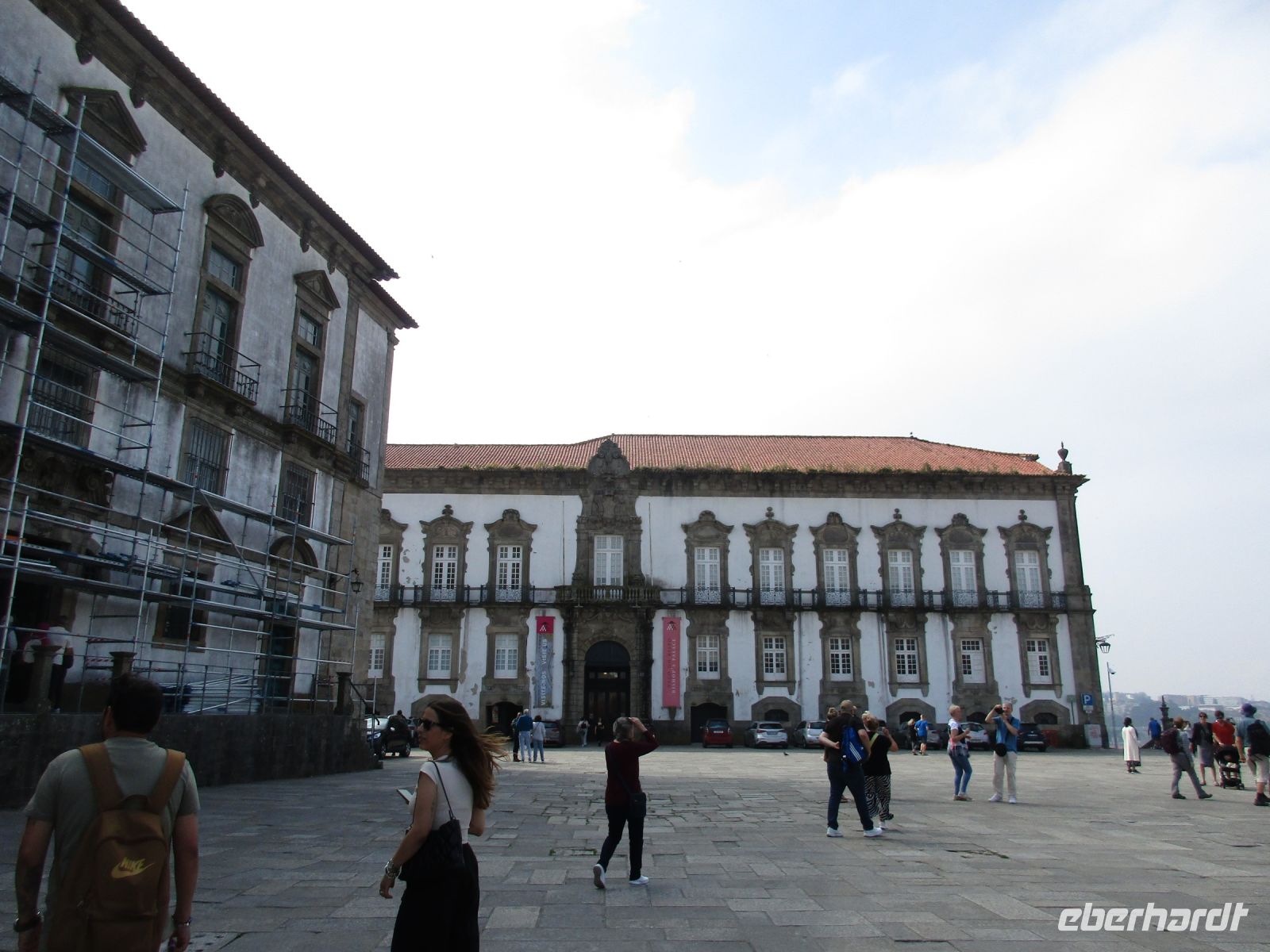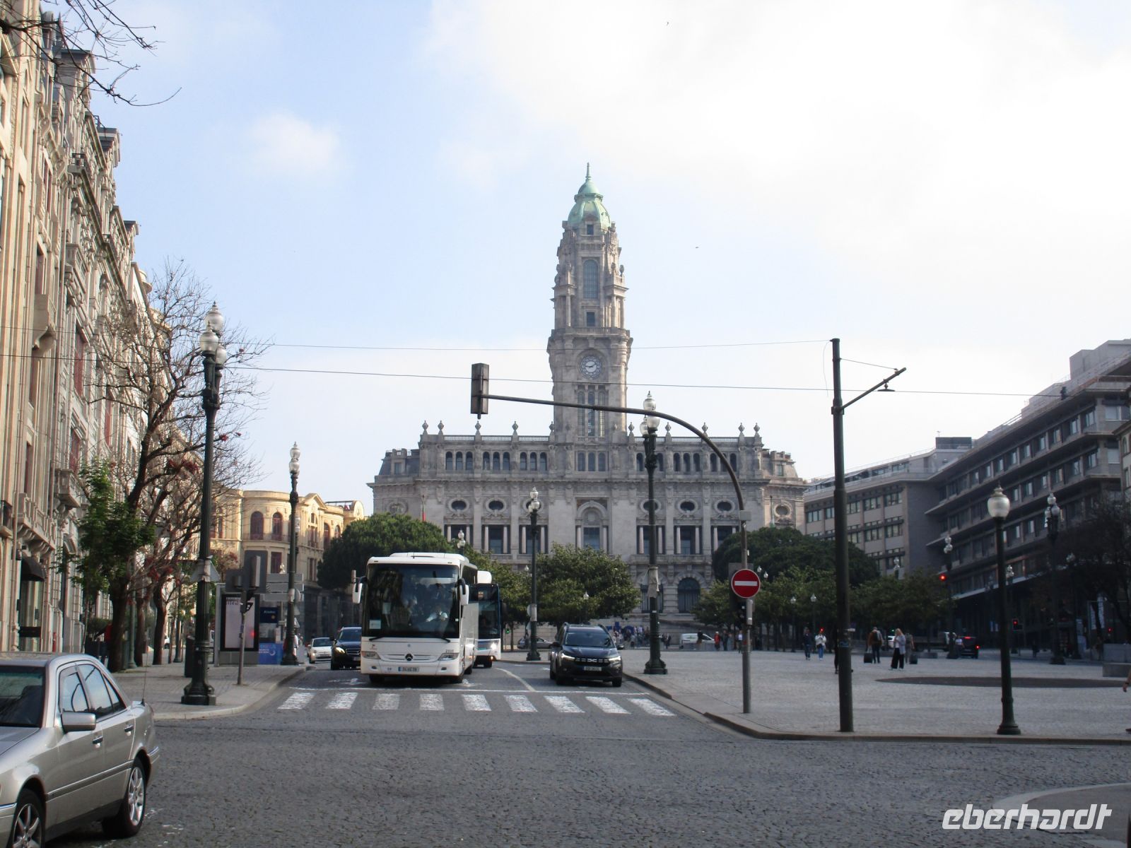 Nach einem gesunden Frühstück begeben wir uns zu unserem Bus, wo unsere örtliche Reiseleiterin Isabel und Fahrer José bereits auf uns warten. Auf unserem Programm stehen Stadtrundfahrt und Stadtrundgang durch Porto. Wir laufen vorbei am Rathausplatz, der gerade eine Baustelle ist. In Porto wird eine neue Metro-Linie gebaut, weshalb wir nicht überall mit dem Bus durchkommen. Aber etwas Bewegung tut uns sehr gut. Der Bau der neuen Rubi-Linie soll bis 2026 dauern und verbindet die „Casa da Música“ und Santo Ovidio und umfasst auch den Bau einer neuen Brücke über den Douro. In 2 Jahren könnten wir dann von unserem Hotel bis ins Zentrum Portos mit der Metro fahren.