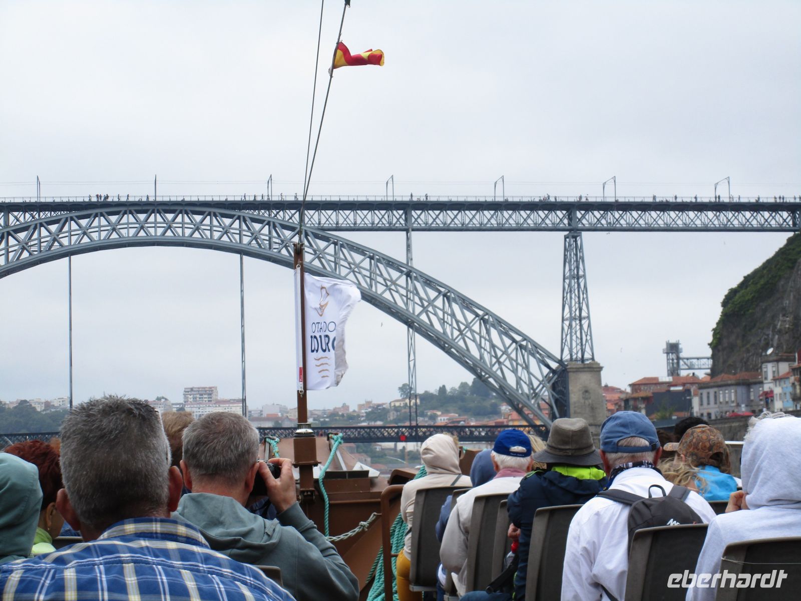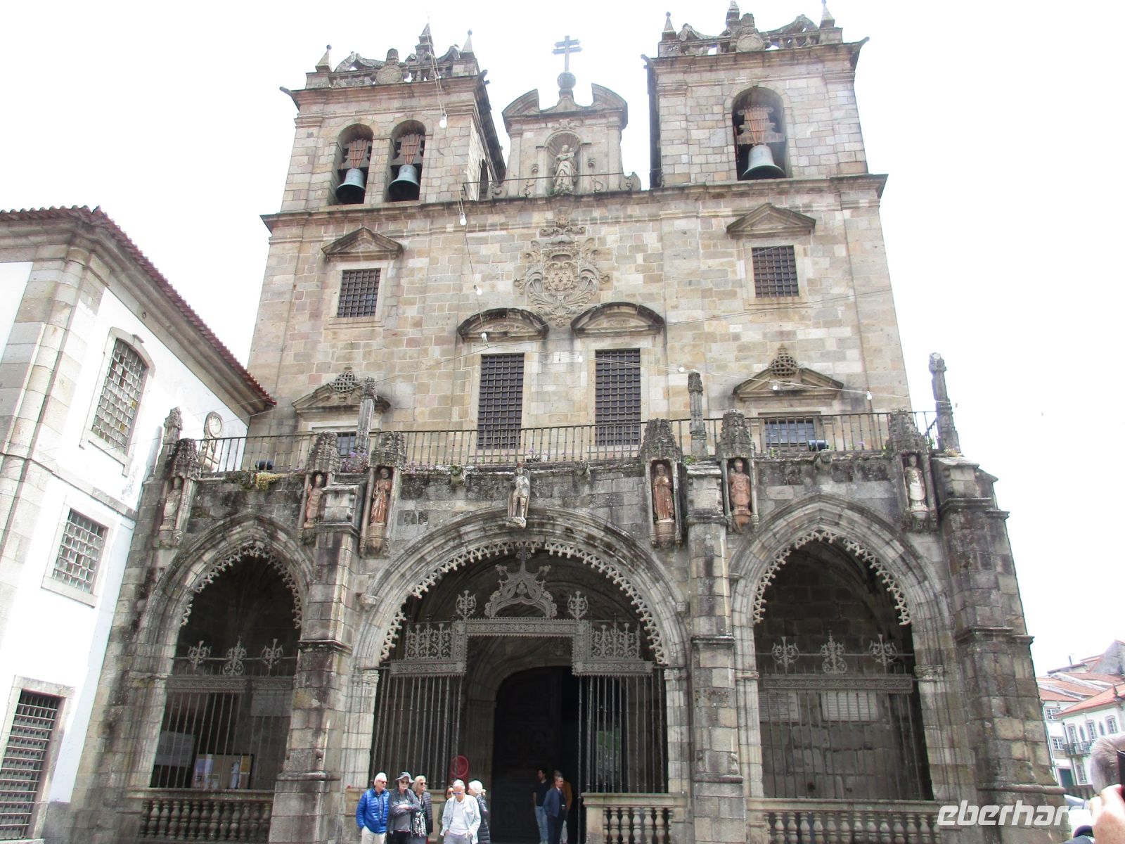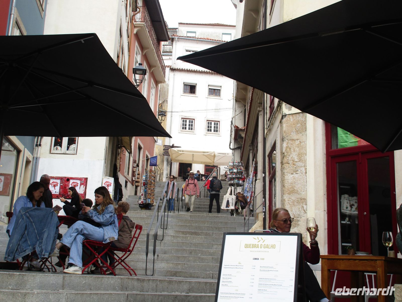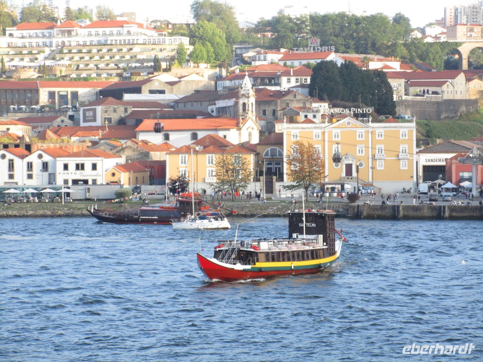 Als erstes begegnet uns das Denkmal von Vimara Peres, der im 9. Jahrhundert den Norden Portugals von den Mauren befreite. Daneben erstrahlt die Kathedrale, auch Sé genannt. Obwohl ihr Bau schon 1110 begann, wurde sie erst im 18. Jhd. eröffnet. Der Kirchenbau vereint romanische, barocke und gotische Baustile und besticht durch die edle Innengestaltung des italienischen Baumeisters Nicolao Nasoni. Der prägt übrigens das Stadtbild von Porto. Weiter geht es zur Börse, auch als Handelskammer Portos bezeichnet, die von der Königin Maria II. finanziert wurde. Die Stadt hatte nie einen Königspalast, aber hier gibt es einen Saal der Könige. Wir besichtigen alle Säle und bewundern die Porträts der Könige und jetzigen Bürgermeister Portos. Auch Gustave Eiffel hatte hier ein Arbeitszimmer. Teófilo Seyrig und Gustave Eiffel gründeten 1869 ein gemeinsames Unternehmen. Sie trennten sich nach 10 Jahren wieder, aber Ihre Brücken können wir heute noch bewundern. Wir begeben uns nun zur Ribeira, dem beliebten Ufer am Goldenen Fluss, wie der Douro auch genannt wird. Nach unserer Mittagspause unternehmen wir eine Bootsfahrt und durchqueren die berühmte Brücke Ponte Dom Luis I. von Seyrig, die Ponte Infante Dom Henrique und die Brücke Maria Pia, die Gustave Eiffel gebaut hat. Sie wird allerdings seit 30 Jahren nicht mehr benutzt, dafür gibt es aber dahinter eine neue Autobahnbrücke. Alle Brücken verbinden Porto und Vila Nova de Gaia. Wir sehen die Liegeplätze der Flusskreuzfahrtschiffe und fahren zurück Richtung Atlantik zur Mündung des Douro ins Meer. Am Ufer angekommen, erwartet uns der Bus und bringt uns zur Weinkellerei „Rozés“. Hier verkosten wir leckeren weißen und roten Portwein. Danach überraschen uns Isabel und José noch mit einer wunderschönen Tour entlang der Uferstraße bis Matosinhos, wo wir an der „Käseburg“ noch einige Schnappschüsse mitnehmen können. Durch die mondäne Wohngegend Portos geht es zurück zu unserem Hotel. Nach einer Stunde Ruhezeit stehen wir schon wieder bereit, denn wir fahren zum Ufer Ribeira, wo sich unser nettes Lokal „Chez Lapin“ befindet, in dem wir heute Abend verwöhnt werden. Anschließend bringt uns José zum Hotel zurück und so endet der erste Tag mit vielen neuen Bildern im Kopf.