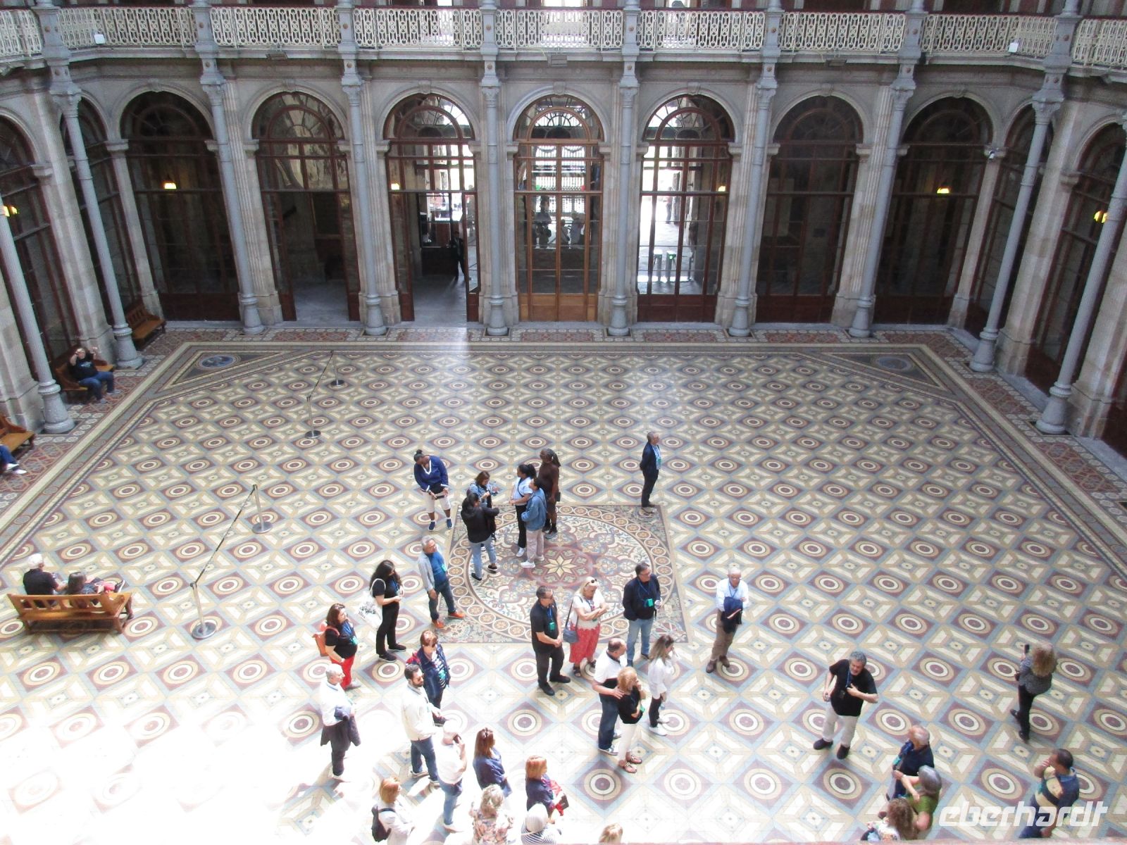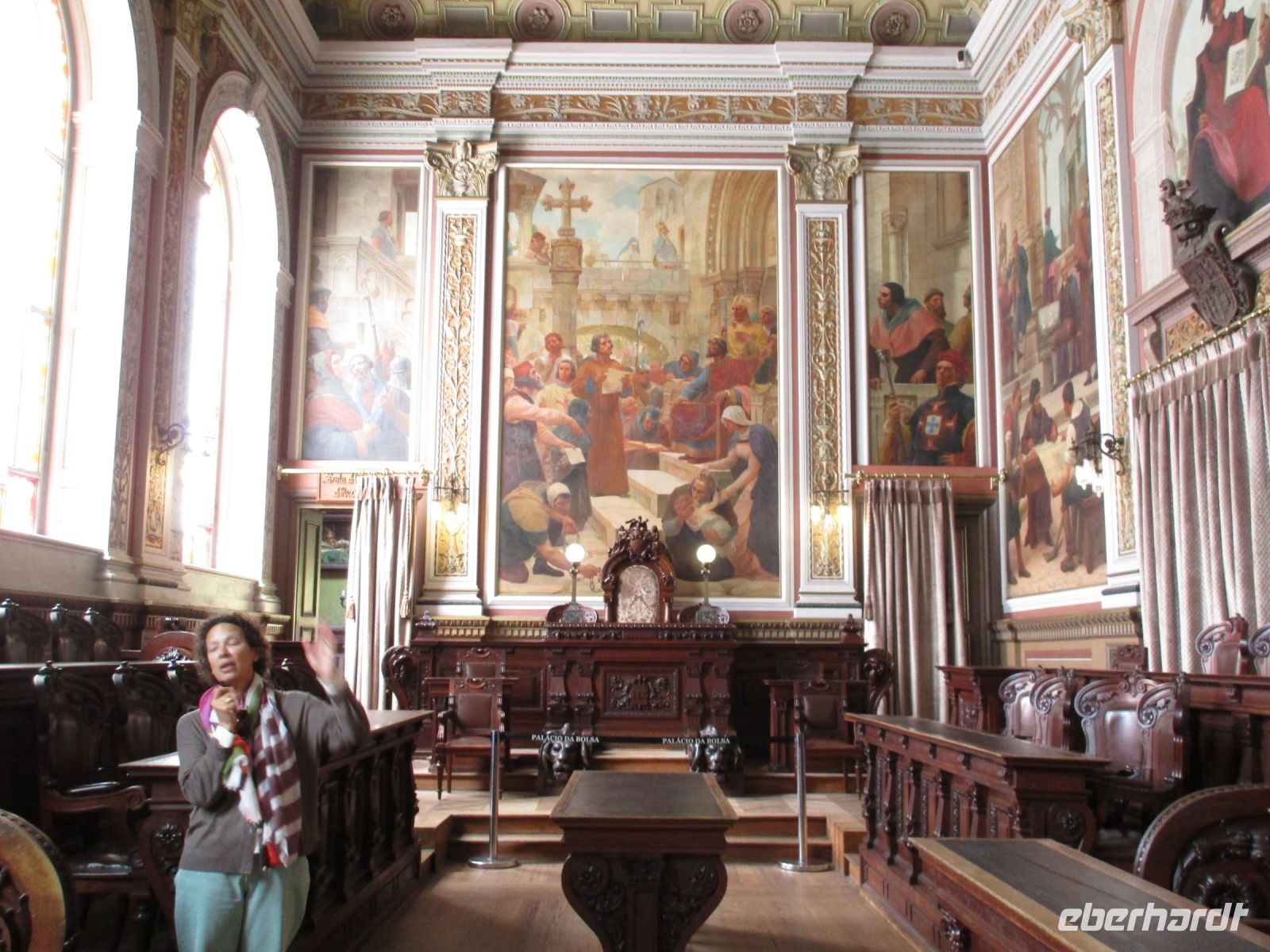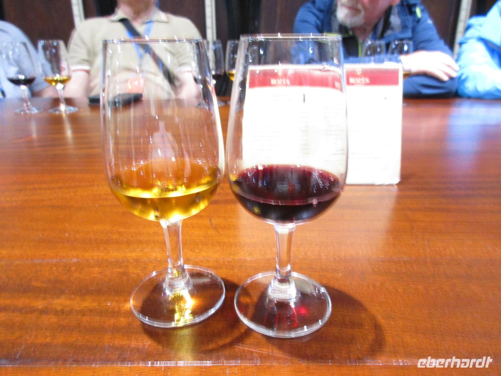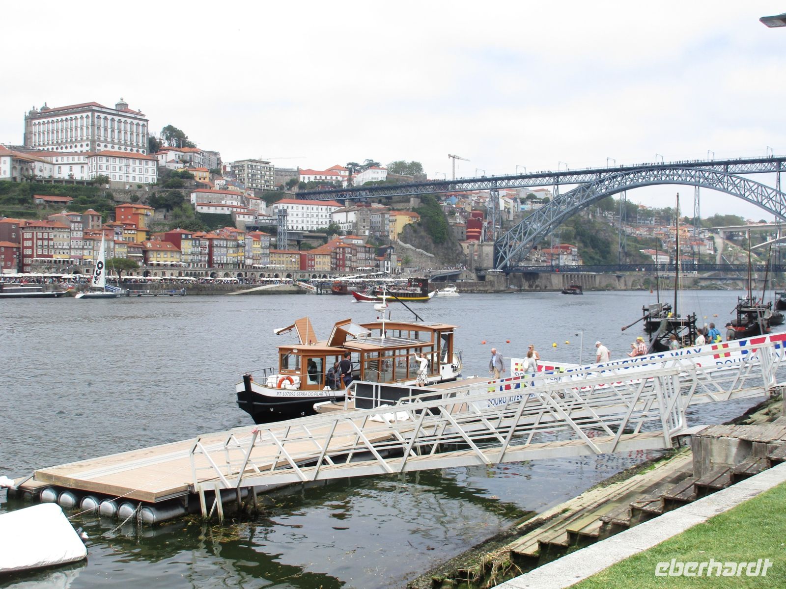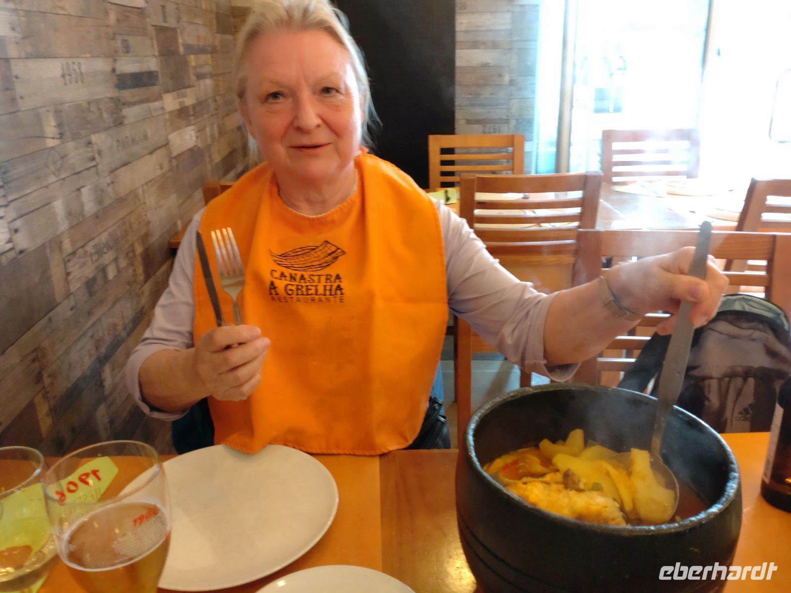 Als erstes begegnet uns das Denkmal von Vimara Peres, der im 9. Jahrhundert den Norden Portugals von den Mauren befreite. Daneben erstrahlt die Kathedrale, auch Sé genannt. Obwohl ihr Bau schon 1110 begann, wurde sie erst im 18. Jhd. eröffnet. Der Kirchenbau vereint romanische, barocke und gotische Baustile und besticht durch die edle Innengestaltung des italienischen Baumeisters Nicolao Nasoni. Der prägt übrigens das Stadtbild von Porto. Weiter geht es zur Börse, auch als Handelskammer Portos bezeichnet, die von der Königin Maria II. finanziert wurde. Die Stadt hatte nie einen Königspalast, aber hier gibt es einen Saal der Könige. Wir besichtigen alle Säle und bewundern die Porträts der Könige und jetzigen Bürgermeister Portos. Auch Gustave Eiffel hatte hier ein Arbeitszimmer. Teófilo Seyrig und Gustave Eiffel gründeten 1869 ein gemeinsames Unternehmen. Sie trennten sich nach 10 Jahren wieder, aber Ihre Brücken können wir heute noch bewundern. Wir begeben uns nun zur Ribeira, dem beliebten Ufer am Goldenen Fluss, wie der Douro auch genannt wird. Nach unserer Mittagspause unternehmen wir eine Bootsfahrt und durchqueren die berühmte Brücke Ponte Dom Luis I. von Seyrig, die Ponte Infante Dom Henrique und die Brücke Maria Pia, die Gustave Eiffel gebaut hat. Sie wird allerdings seit 30 Jahren nicht mehr benutzt, dafür gibt es aber dahinter eine neue Autobahnbrücke. Alle Brücken verbinden Porto und Vila Nova de Gaia. Wir sehen die Liegeplätze der Flusskreuzfahrtschiffe und fahren zurück Richtung Atlantik zur Mündung des Douro ins Meer. Am Ufer angekommen, erwartet uns der Bus und bringt uns zur Weinkellerei „Rozés“. Hier verkosten wir leckeren weißen und roten Portwein. Danach überraschen uns Isabel und José noch mit einer wunderschönen Tour entlang der Uferstraße bis Matosinhos, wo wir an der „Käseburg“ noch einige Schnappschüsse mitnehmen können. Durch die mondäne Wohngegend Portos geht es zurück zu unserem Hotel. Nach einer Stunde Ruhezeit stehen wir schon wieder bereit, denn wir fahren zum Ufer Ribeira, wo sich unser nettes Lokal „Chez Lapin“ befindet, in dem wir heute Abend verwöhnt werden. Anschließend bringt uns José zum Hotel zurück und so endet der erste Tag mit vielen neuen Bildern im Kopf.