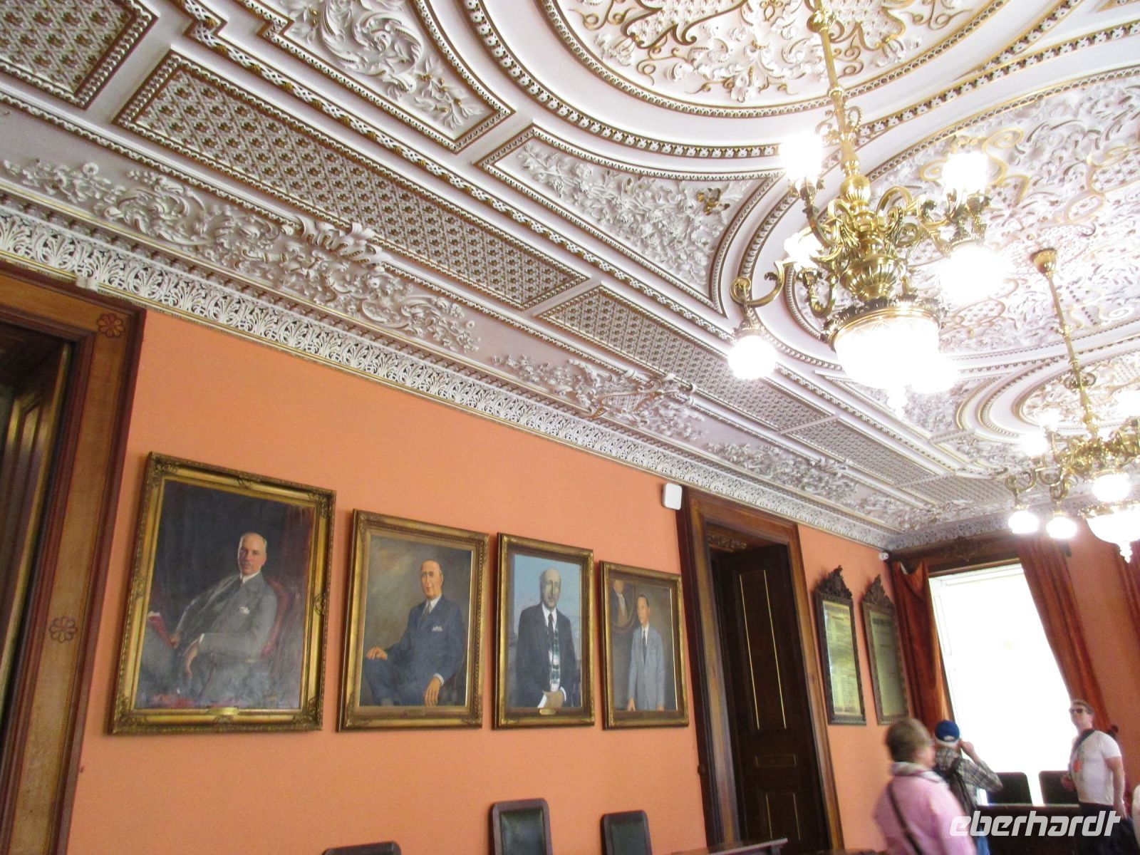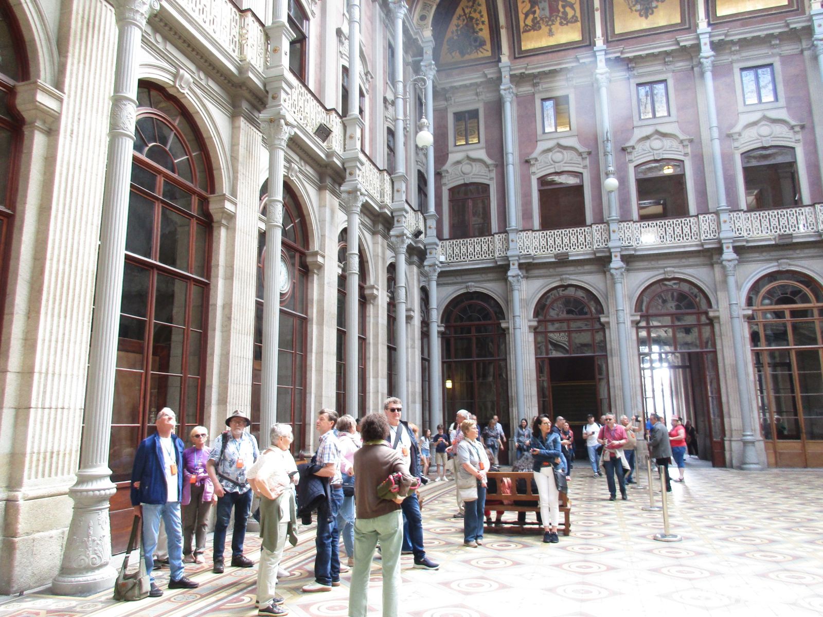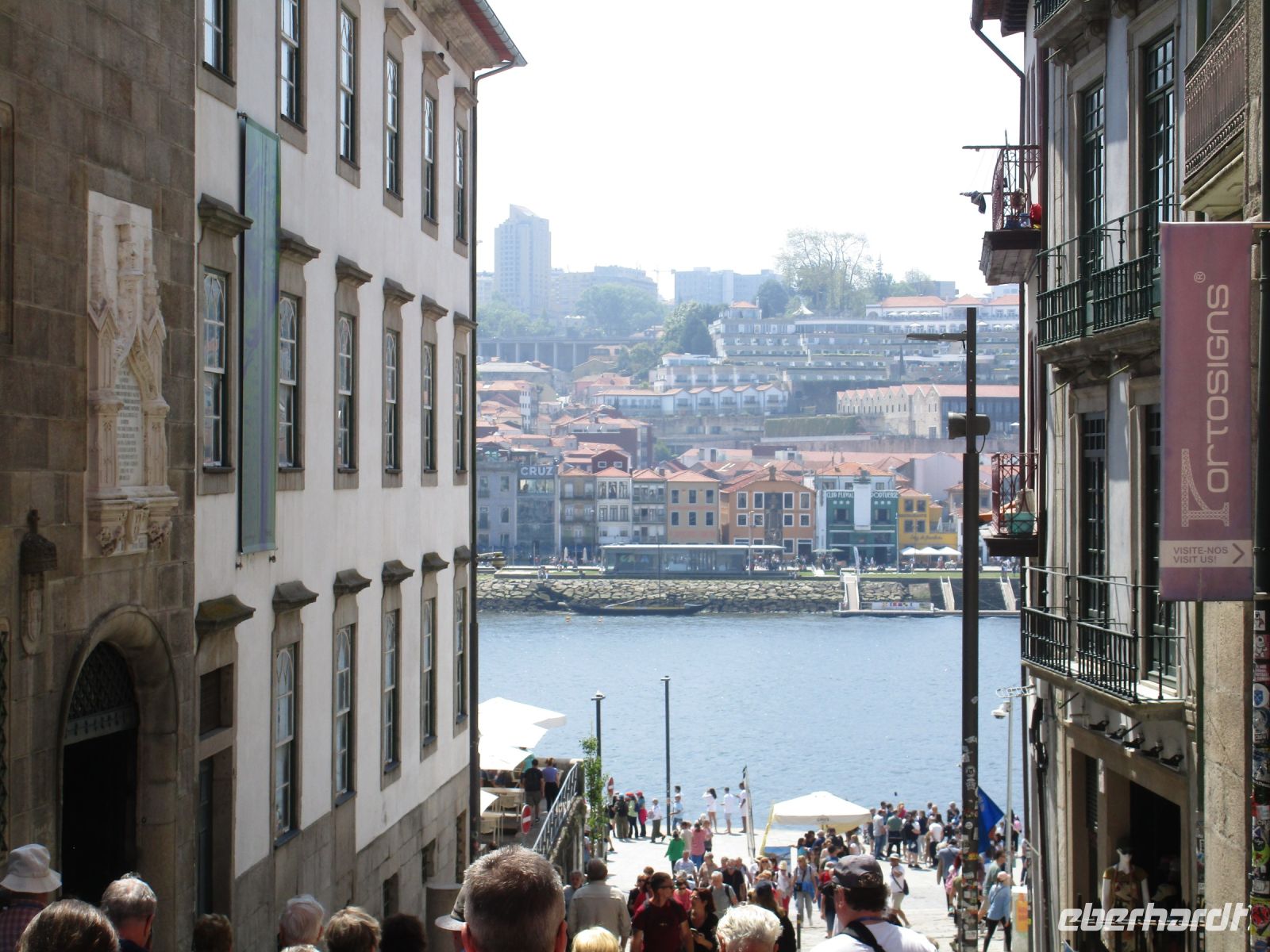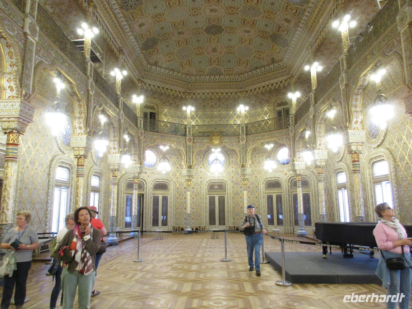 Als erstes begegnet uns das Denkmal von Vimara Peres, der im 9. Jahrhundert den Norden Portugals von den Mauren befreite. Daneben erstrahlt die Kathedrale, auch Sé genannt. Obwohl ihr Bau schon 1110 begann, wurde sie erst im 18. Jhd. eröffnet. Der Kirchenbau vereint romanische, barocke und gotische Baustile und besticht durch die edle Innengestaltung des italienischen Baumeisters Nicolao Nasoni. Der prägt übrigens das Stadtbild von Porto. Weiter geht es zur Börse, auch als Handelskammer Portos bezeichnet, die von der Königin Maria II. finanziert wurde. Die Stadt hatte nie einen Königspalast, aber hier gibt es einen Saal der Könige. Wir besichtigen alle Säle und bewundern die Porträts der Könige und jetzigen Bürgermeister Portos. Auch Gustave Eiffel hatte hier ein Arbeitszimmer. Teófilo Seyrig und Gustave Eiffel gründeten 1869 ein gemeinsames Unternehmen. Sie trennten sich nach 10 Jahren wieder, aber Ihre Brücken können wir heute noch bewundern. Wir begeben uns nun zur Ribeira, dem beliebten Ufer am Goldenen Fluss, wie der Douro auch genannt wird. Nach unserer Mittagspause unternehmen wir eine Bootsfahrt und durchqueren die berühmte Brücke Ponte Dom Luis I. von Seyrig, die Ponte Infante Dom Henrique und die Brücke Maria Pia, die Gustave Eiffel gebaut hat. Sie wird allerdings seit 30 Jahren nicht mehr benutzt, dafür gibt es aber dahinter eine neue Autobahnbrücke. Alle Brücken verbinden Porto und Vila Nova de Gaia. Wir sehen die Liegeplätze der Flusskreuzfahrtschiffe und fahren zurück Richtung Atlantik zur Mündung des Douro ins Meer. Am Ufer angekommen, erwartet uns der Bus und bringt uns zur Weinkellerei „Rozés“. Hier verkosten wir leckeren weißen und roten Portwein. Danach überraschen uns Isabel und José noch mit einer wunderschönen Tour entlang der Uferstraße bis Matosinhos, wo wir an der „Käseburg“ noch einige Schnappschüsse mitnehmen können. Durch die mondäne Wohngegend Portos geht es zurück zu unserem Hotel. Nach einer Stunde Ruhezeit stehen wir schon wieder bereit, denn wir fahren zum Ufer Ribeira, wo sich unser nettes Lokal „Chez Lapin“ befindet, in dem wir heute Abend verwöhnt werden. Anschließend bringt uns José zum Hotel zurück und so endet der erste Tag mit vielen neuen Bildern im Kopf.