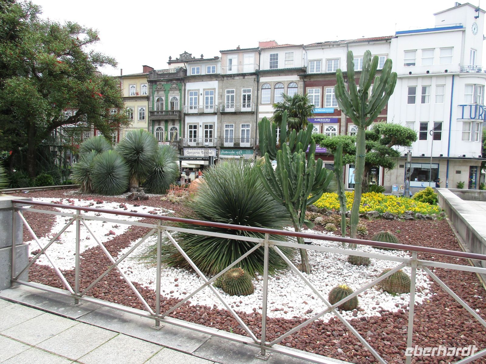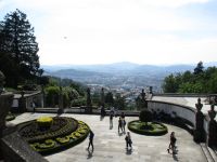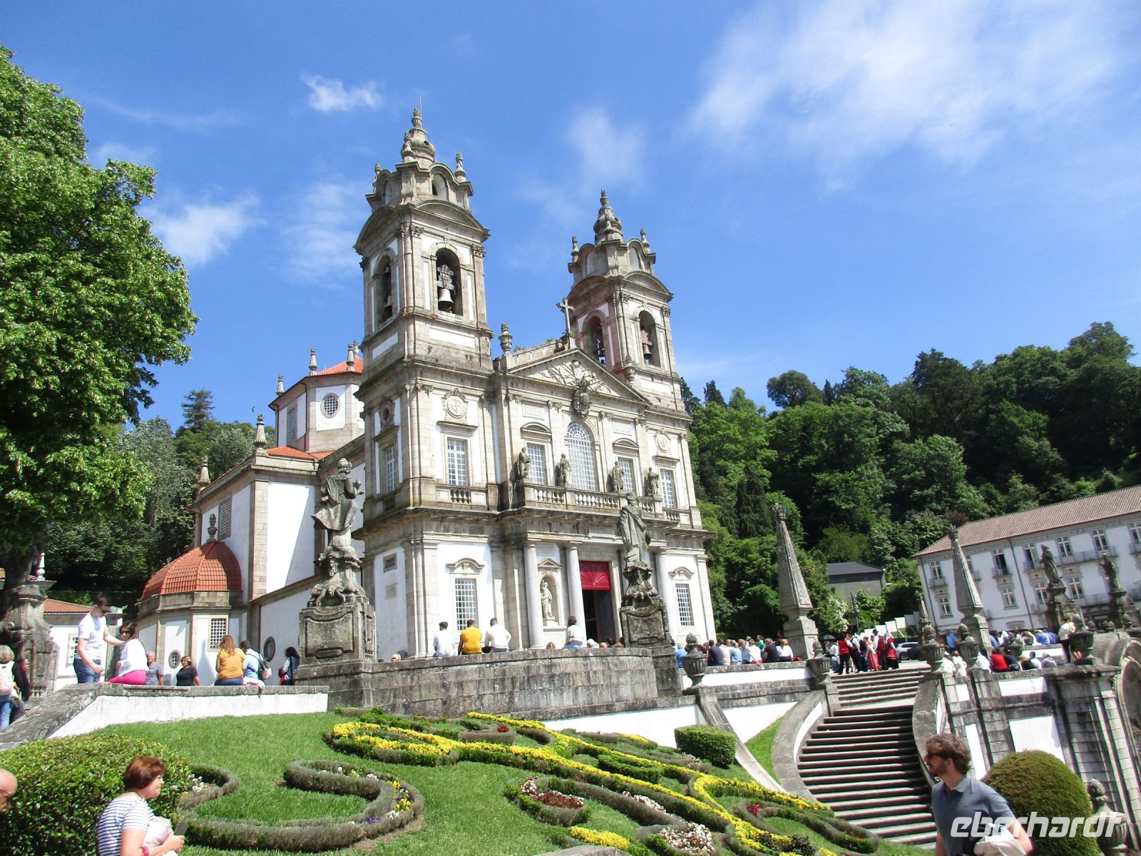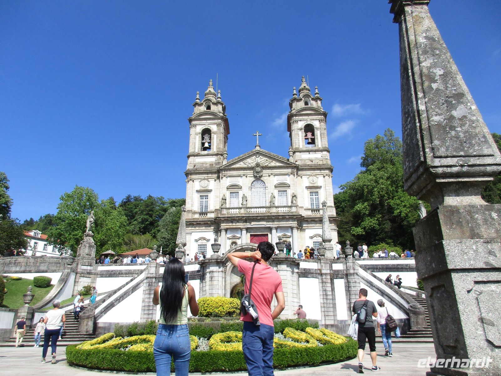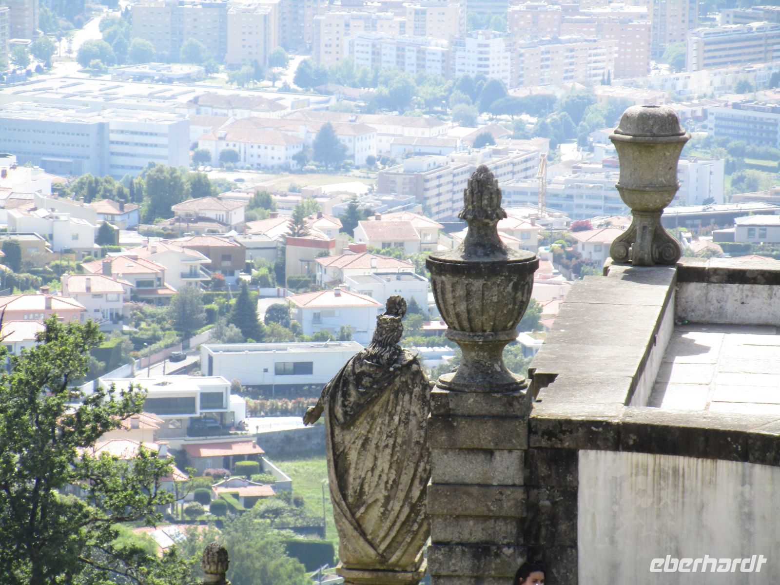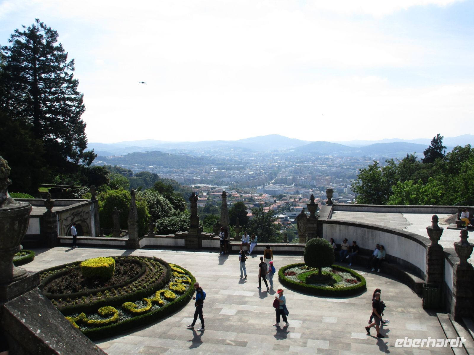 Am heutigen Tag fahren wir in den Norden ins grüne Minho und erreichen Guimaraes, die so genannte Wiege Portugals. Nachdem Vimara Peres im 9. Jahrhundert die Mauren vertrieben hatte und das Land im Norden vereinnahmt hatte, entstand Portucale. Afonso I., Sohn von Heinrich aus Burgund und seiner Frau Theresia von Léon, festigte und befriedete die Grafschaft Portucale und wurde so der erste König und galt fortan als Eroberer und Begründer Portugals. Vor ihm war Mumadona Dias die mächtigste Frau im Nordwesten der Iberischen Halbinsel. Sie regierte bis Mitte des 1000. Jhd. als 4. Gräfin Portugals und stiftete das Kloster Sao Mamede und die Burg, auf der König Afonso I. geboren wurde. Afonso I. lebte hier und kämpfte gegen seine Mutter Theresia, die sich wieder an Spanien annähern wollte. Heute sehen wir nur noch Reste der Burg. Dafür ist das Schloss der Herzöge von Braganza mit seinen vielen Türmen und Schornsteinen noch sehr gut erhalten und ist ein Museum für wertvolles Porzellan und Wandteppiche. Das Schloss war auch einmal Sitz des Diktators Salazar. Vorbei am Schloss der Herzöge von Braganza spazieren wir in die Innenstadt zum Oliven-Platz. Nach etwas Freizeit fahren wir weiter nach Braga, dem ewigen Bischofssitz. Nach einer kurzen Führung und meinem obligatorischen Foto am Garten der Heiligen Barbara gönnen wir uns eine gediegene Mittagspause in der hübschen Stadt, in der man auch sehr gut einkaufen kann. Anschließenden geht es zum portugiesischen Wallfahrtsort Bom Jesus do Monte.