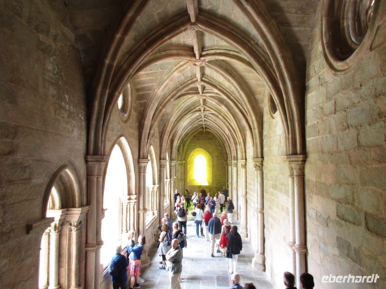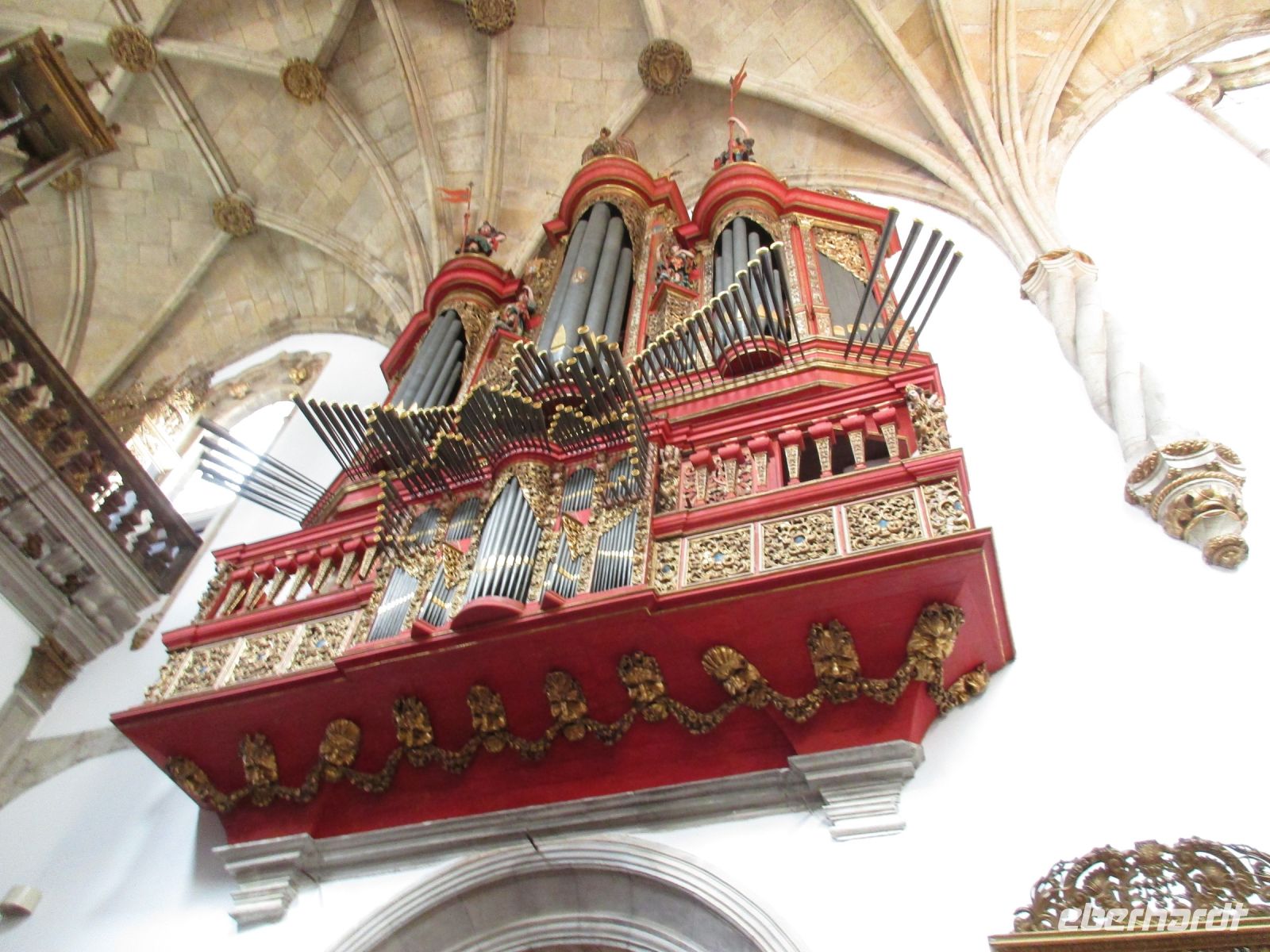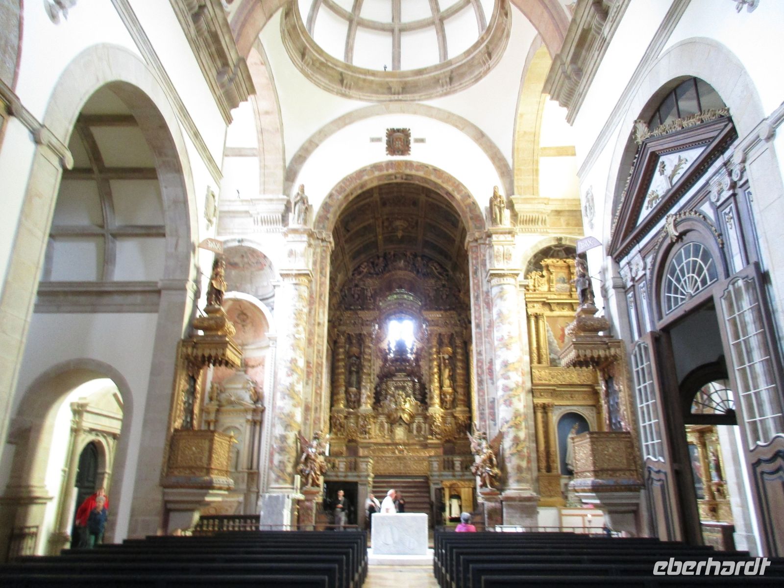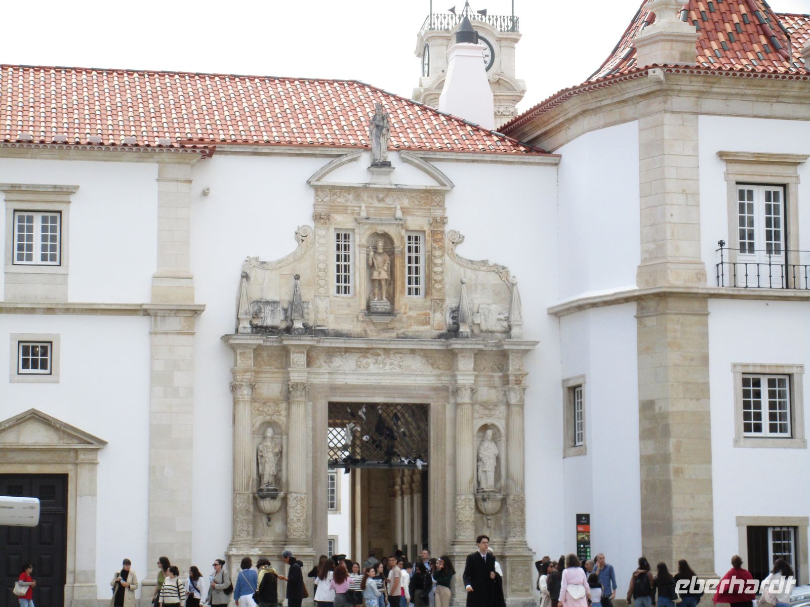 Nach dem Frühstück laden wir heute wieder unsere Koffer, um unsere Rundreise fortzusetzen. Zunächst geht es nach Viseu, eine beschauliche Bischofsstadt und Hauptstadt der Dao-Region. Wir durchqueren das Gebiet der heldenhaften keltiberischen Stämme der Lusitaner. Ihr Anführer Viriato leistete erbitterten Widerstand gegen die Römer, aber durch Verrat und Ermordung durch seine eigenen Leute wurde der Weg frei für die Römer, die nun die gesamte Iberische Halbinsel besiedelten. Isabel führt uns zum Adro da Sé mit der Kathedrale aus grauem Granit und die Kirche da Misericórdia. Beeindruckend sind die Innenräume der Sé mit dem einzigartigen manuelinischen Tauknoten-Gewölbe aus dem 16. Jhd. über romanischen Stützen. Der Kreuzgang mit seinen Renaissance-Arkaden erscheint dagegen klassisch-antik. Wir verabschieden uns von der Kathedrale und gehen vorbei an der Statue König Duartes bis zu einem kleinen Café am Denkmal des Schriftstellers Aquilino Ribeiro, wo es noch schnell einen Espresso oder Galao gibt. Unser Bus erwartet uns bereits und bringt uns weiter in die Serra do Bucaco, in der sich der Nationalwald Mata do Bucaco mit einer Fläche von 105 ha befindet. Mitten im Nationalpark steht das neo-manuelinische 5-Sterne-Palace-Hotel, das von König Carlos Ende des 19. Jhd als Sommerresidenz errichtet wurde. Im Waldpark gibt es viel zu entdecken, wie Quellen und kleine Kapellen. Alles deutet auf die barfüßigen Karmeliter hin, die hier in Einsiedeleien lebten. Anfang des 17. Jhd. wurde hier das Karmeliterkloster Convento de Santa Cruz do Bucaco gegründet, um die Waldbestände zu schützen und zu pflegen. Es gibt 400 einheimische und 300 exotische Bäume und Sträucher, die hauptsächlich durch die portugiesischen Seefahrer hergebracht und durch Karmelitinnen angepflanzt wurden. Mitte des 17. Jhd. übernahm der Pabst den Schutz des Waldes. Laut Edikt des Pabstes durfte unter Androhung von Exkommunikation kein Baum gefällt werden und Frauen durften die Klosteranlage nicht einmal betreten, die von einer 5,7 km langen Mauer umgeben war und 10 Tore hatte. Nahe dem Tor von Coimbra findet man noch Regeln auf Tafeln im Mauerwerk. Coimbra ist unser nächstes Ziel. Wir verlassen die Region mit dem Kurort Luso, bekannt durch heilendes Quellwasser, mit der Stadt Mealhada, bekannt durch köstliche Spanferkel, und die kleine Weinregion Bairrada. In der Universitätsstadt Coimbra am Mondego-Fluss beginnen wir mit einer gemütlichen Mittagspause. Danach bringt uns der Bus hinauf zur Universität. Sie wurde Ende 1290 durch König Dom Dinis gegründet und im 16. Jhd. durch König Johann III. endgültig nach Wechseln mit Lissabon in Coimbra hier auf dem Berg angesiedelt. Die Räume Sala dos Capelas und die des Privaten Examens, wo der König früher übernachtete, sind sehr beeindruckend, ebenso wie die kleine Kapelle. Aber am faszinierendsten ist die berühmte Joanina-Bibliothek. Sie gehört mit ihren 200.000 kostbaren Bänden zu den schönsten barocken Bibliotheken der Welt. Der absolutistische König Johann V. ließ sie im 18. Jhd. für seine Frau Maria Anna von Österreich bauen und hatte den Baumeister Joao Carvalho Ferreira damit beauftragt. Im Hof bewundern wir das Wahrzeichen Coimbras, den Uhrturm mit Glocke, auch „Ziege“ genannt. Dieser Tag hatte es wieder in sich und wir freuen uns über unser elegantes 4*-Hotel „Vila Galé Coimbra“. Das Abendessen ist grandios und danach kann man noch an der Bar stoppen, bevor es in die wohlverdienten Betten geht.