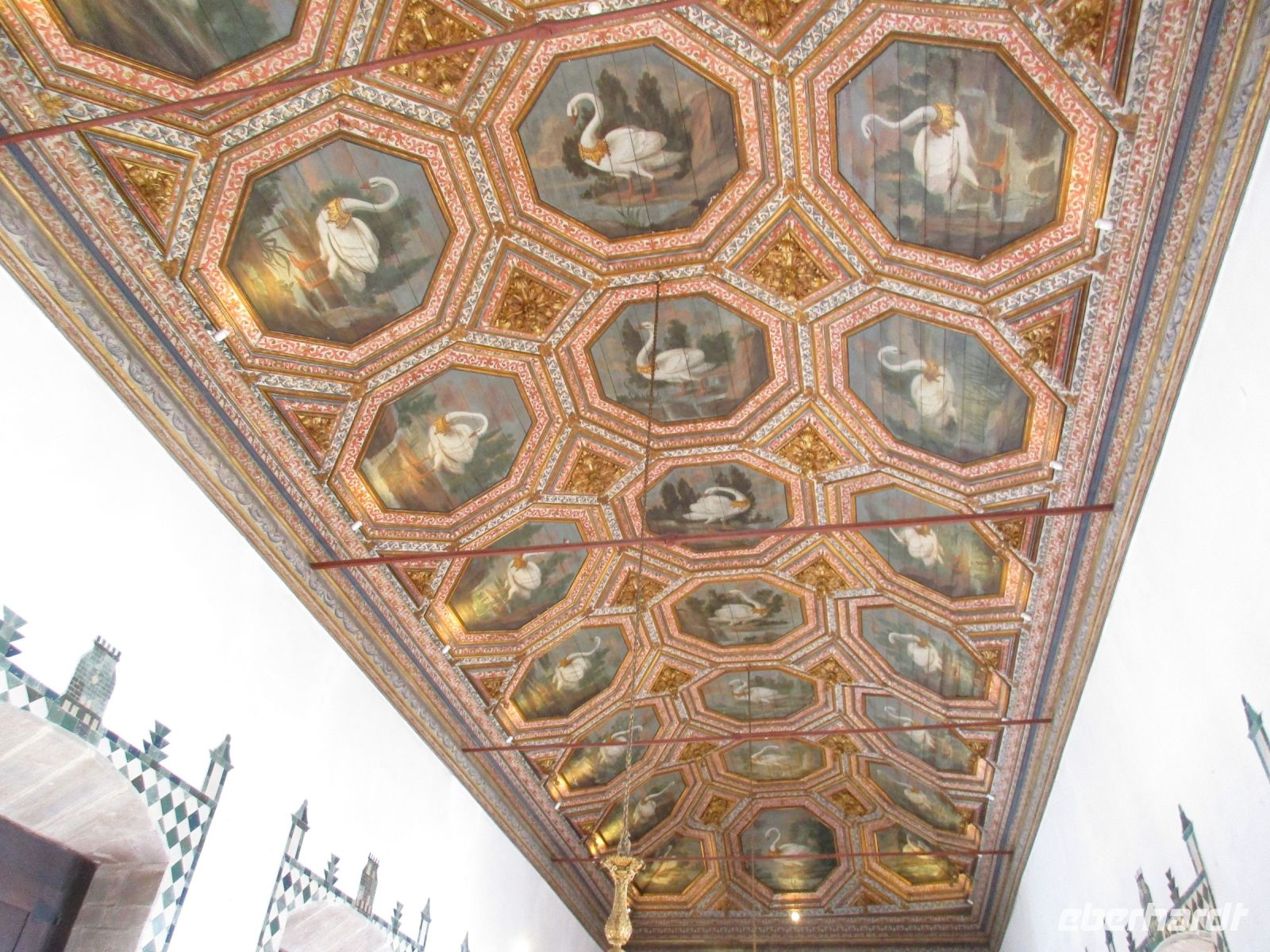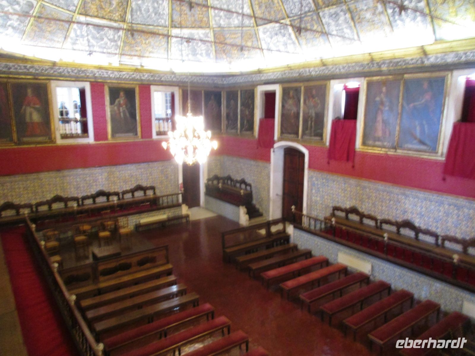 Heute erwartet uns ein spektakulärer Ausflug in die Berge nach Sintra zur Sommerresidenz der Könige. Der Palácio Nacional wurde im 14. Jhd. begonnen und im manuelinischen Stil vollendet. Auf den maurischen Grundmauern von Alcázar baute König Dinis seine Gemächer, dann begann König Joao I. den Bau der Sommerresidenz im 15. Jhd. Er ließ die Decke in einem Saal mit 136 Elstern bemalen, die ein Spruchband mit „Por bem“ trugen, denn 136 Hofdamen hatten darüber getratscht, dass er eine von ihnen geküsst hatte. Das war seine Antwort. König Manuel erweiterte die Baulichkeiten. Joao III. richtete den Palast im 16. Jhd. im Stil der Renaissance ein. Zahlreiche Azulejos mit maurischen Motiven und ältere aus dem 17. Jhd. zieren die Wände der verschiedenen Räume. Das Mobiliar ist kunstvoll aus edlen Hölzern gearbeitet und mit filigranen Intarsien versehen. Alles ist sehr geschmackvoll und funktionell für die damalige Zeit, was uns sehr beeindruckt. Die Schlossküche ist sensationell. Die zwei konischen Schornsteine ragen aus dem Dach heraus und sind das Wahrzeichen von Sintra. Nach dem Besuch des Königspalastes fahren wir weiter zum westlichsten Punkt des Europäischen Festlandes, zum Cabo da Roca. Wir sind nicht die Einzigen und bahnen uns unseren Weg zur Steilküste, um unsere eigenen Bilder zu machen. Entlang des Guincho fahren wir weiter nach Cascais, wo wir unsere Mittagszeit verbringen. Hier kann man nicht nur gut essen, sondern auch wunderbar shoppen. Nach der Pause fahren wir vorbei an Estoril, wo viel gebaut wurde, Richtung Lissabon. Am frühen Nachmittag erreichen wir unser Hotel und verfügen noch über etwas freie Zeit, bevor es wieder zum Abendessen geht. Danach heißt es erneut Koffer packen, denn morgen geht es weiter in den Süden.