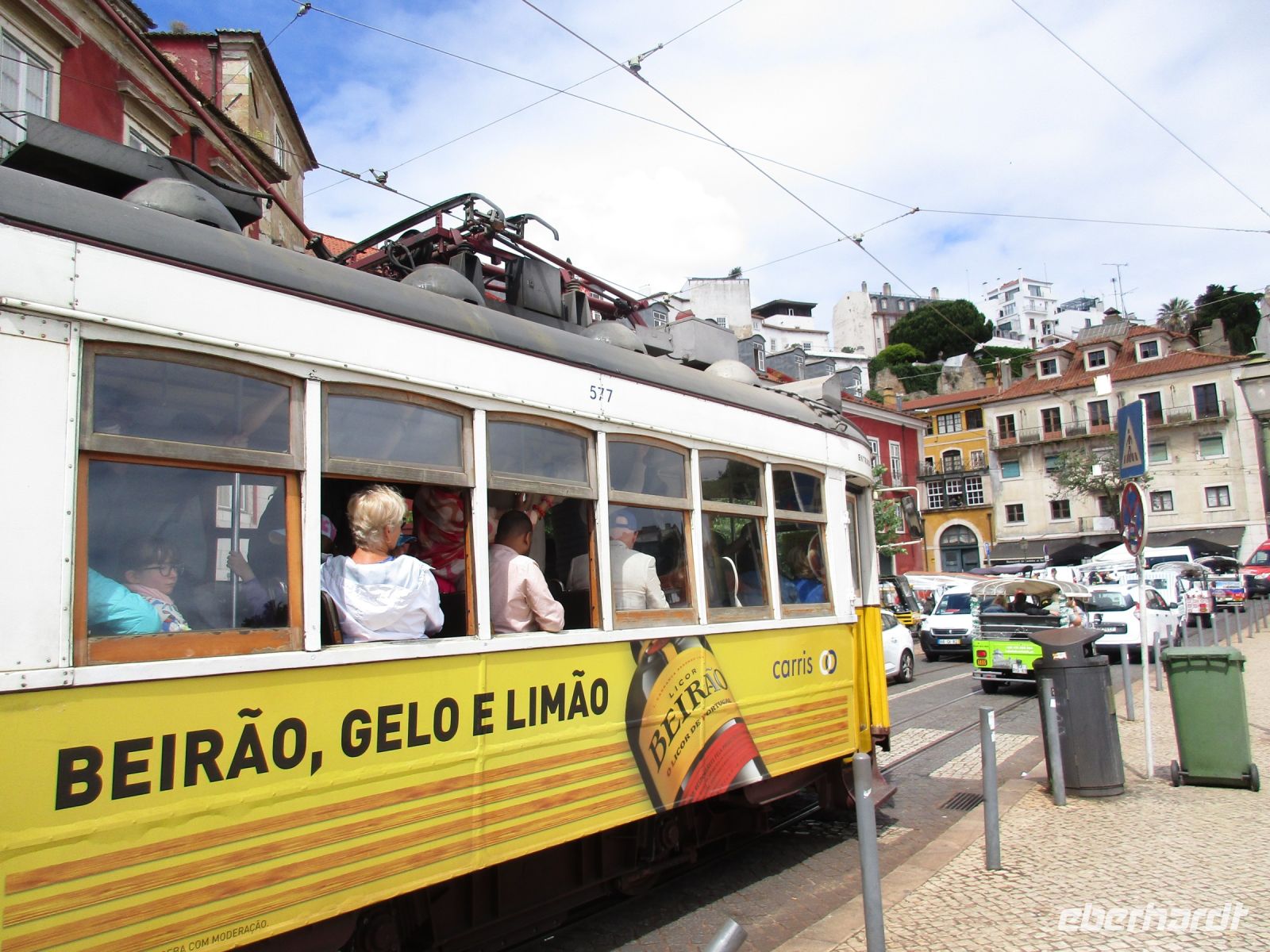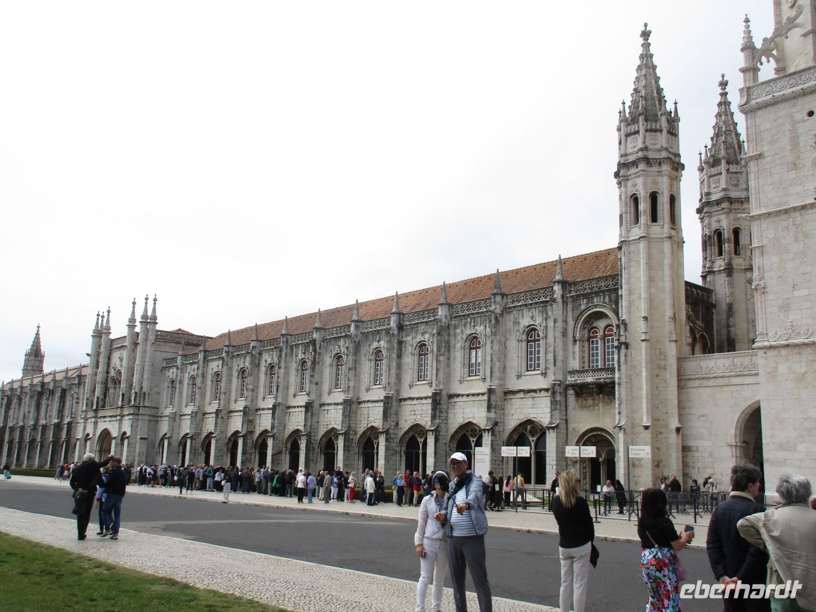 Heute steht ein wunderschöner, aber anstrengender Tag vor uns, deshalb stärken wir uns erst einmal mit einem kräftigen Frühstück. Wir fahren bis zum Restauradores-Platz. Von hier aus führt uns Isabel per Pedes und mit Lift hinauf zum Castelo. Die Burg ist ein Wahrzeichen Lissabons und man hat eine atemberaubende Aussicht auf die Hauptstadt Portugals mit seinen Stadtteilen Alfama, Barrio Alto, Baixa und Chiado oder Belém. Durch die Alfama, vorbei an vielen kleinen Restaurants, in denen am Abend Fado angeboten wird, führt uns unser Weg wieder hinunter zum Rossio-Platz. Nach dem langen, ausführlichen Spaziergang benötigen wir erst einmal eine Pause und Stärkung. Leckereien gibt es hier an jeder Ecke. Anschließend erwartet uns wieder unser Busfahrer und bringt uns nach Belém zum Hieronymuskloster. Hier treffen wir auf lange Schlangen vor den Eingangstoren. Isabel führt uns durch die Kirche und zeigt uns auch die Gräber von Luís de Camoes und Vasco da Gama, der erst 1880 von Kochi, Indien, überführt wurde. Nach unserer Besichtigung zeigt uns Isabel noch das Entdeckerdenkmal von Heinrich dem Seefahrer und den Torre de Belém. Der wunderschöne Turm im manuelinischen Stil gilt auch als Wahrzeichen von Lissabon und hat das Erdbeben von 1755 überstanden. Überwältigt von all den geschichtsträchtigen und wunderschönen Gebäuden und Plätzen begeben wir uns wieder zurück ins Hotel. Nach einer kurzen Erfrischungspause treffen wir uns wieder zu einem Spaziergang zum Restaurant „A Valenciana“, wo uns typisch portugiesische Gerichte serviert werden. Danach freuen wir uns auf unsere bequemen Betten.