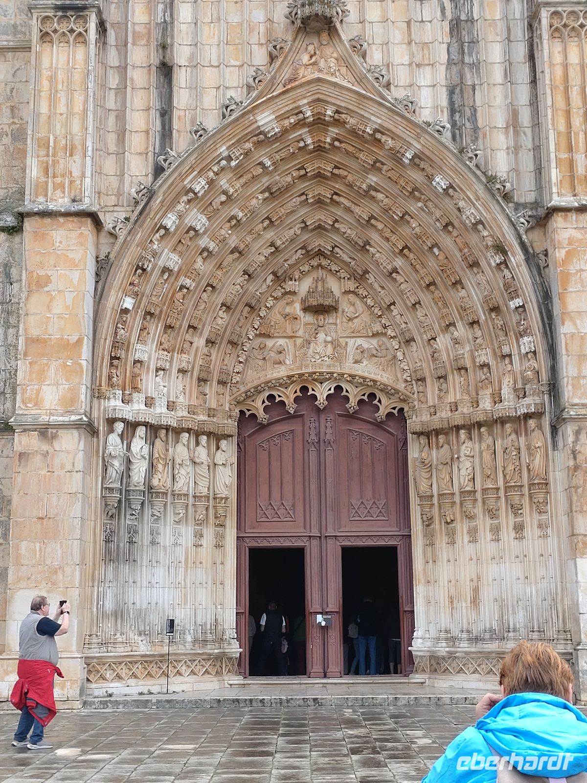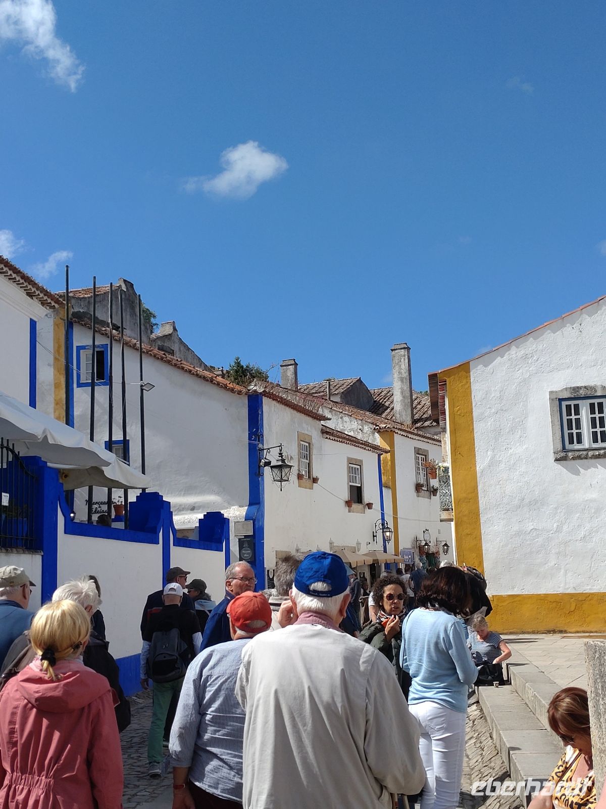 Nach unserem gemütlichen Frühstück geht es wieder mit gepackten Koffern auf Tour. Heute hat unser Tilo Geburtstag. Ich überreiche eine kleine Aufmerksamkeit und Grüße von Eberhardt und dann singen wir ihm zu Ehren „Happy birthday“. Nach einer guten Stunde Fahrtzeit erreichen wir dann den bedeutendsten portugiesischen Wallfahrtsort Fátima, ein portugiesischer Teil des Pilgerweges nach Santiago de Compostela. Am 13. Mai 1917 soll hier den 3 Kindern Lúcia, ihrem Cousin Francisco und dessen Schwester Jacinta die Jungfrau Maria in einer Steineiche erschienen sein und danach noch weitere Male. Heute ist Fátima ein religiöses Wahrzeichen Portugals. Das Wetter ist heute nicht sehr einladend und wir fahren dann weiter zum Kloster Batalha, das so viel wie „Schlacht“ bedeutet. Nuno Álvares Pereira kämpfte im Auftrag des Königs gegen die Kastilier. Die entscheidende Schlacht von Aljubarrota zwischen dem kastilischen und portugiesischen Heer 1385 gewann er dank seines Genies und seiner strategischen Meisterleistung. Damit war der Weg frei für die zweite portugiesische Dynastie aus dem Hause Avis. Johann I. wird König und durch seine Heirat mit der englischen Prinzessin Philippa of Lancaster ein starker Herrscher mit starken Verbündeten. Aus Dankbarkeit für die gewonnene Schlacht ließ der König vom 14.-16. Jhd. das Kloster Santa Maria da Vítória errichten. Der ehrfürchtige Bau misst 88 m Länge und 32 m Höhe. Die Gründerkapelle ist Grablege der königlichen Dynastie Avis mit dem Königspaar, Heinrich dem Seefahrer und Königssohn Pedro. Nur Königssohn Duarte wollte seine eigenen Kapellen, die er nie fertigstellte. Wir reisen weiter nach Nazaré, um endlich den Atlantik zu sehen. Wir stoppen in Sítio und genießen einen wunderbaren Blick auf das ehemalige Fischerdorf. Die Monsterwelle von Nazaré können wir heute nicht sehen, aber hohe Wellen schon. Unten am Strand suchen wir uns alle ein nettes Plätzchen, um unsere Mittagspause am Meer zu genießen. Empfehlung des Tages: Fischeintopf. Einfach köstlich! Nächste Station auf unserem Weg nach Lissabon ist Óbidos. Diese Stadt war ein Geschenk des Königs Dom Dinis an seine Gattin. Noch heute ist sie von einer gut erhaltenen Burgmauer umgeben. Enge Gassen, die Pfarrkirche Santa Maria, hübsche Geschäfte und kleine Restaurants und Cafés laden zum Flanieren und Verweilen ein. „Eberhardt“ spendiert uns einen Ginjinha im Schokoladenbecher, die Spezialität hier. Die Lage des Ortes ist spektakulär und die Aussicht reicht weit hinaus. Vorbei an vielen Mühlen, Ruinen oder neu erbaut, geht es zum Endspurt. Wir freuen uns auf die Hauptstadt. Unser 4*-Hotel „Smy“ befindet sich in der Nähe des Parks Eduard VII. Von hier aus könnte man bequem bis ins Zentrum laufen. Wir aber heute nicht mehr. Für uns heißt es ausruhen und unser Abendessen im Hotel genießen.