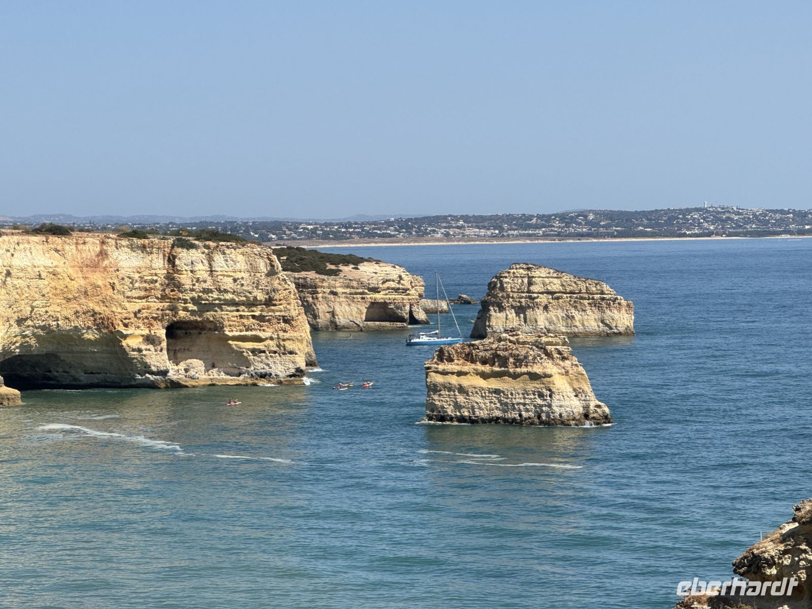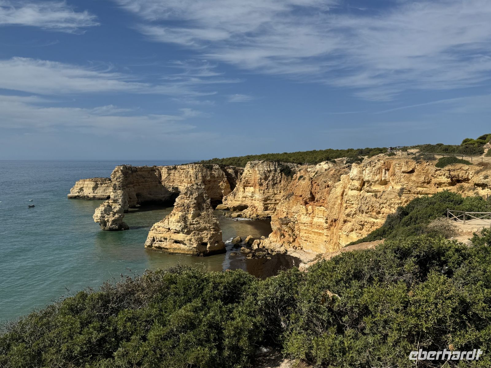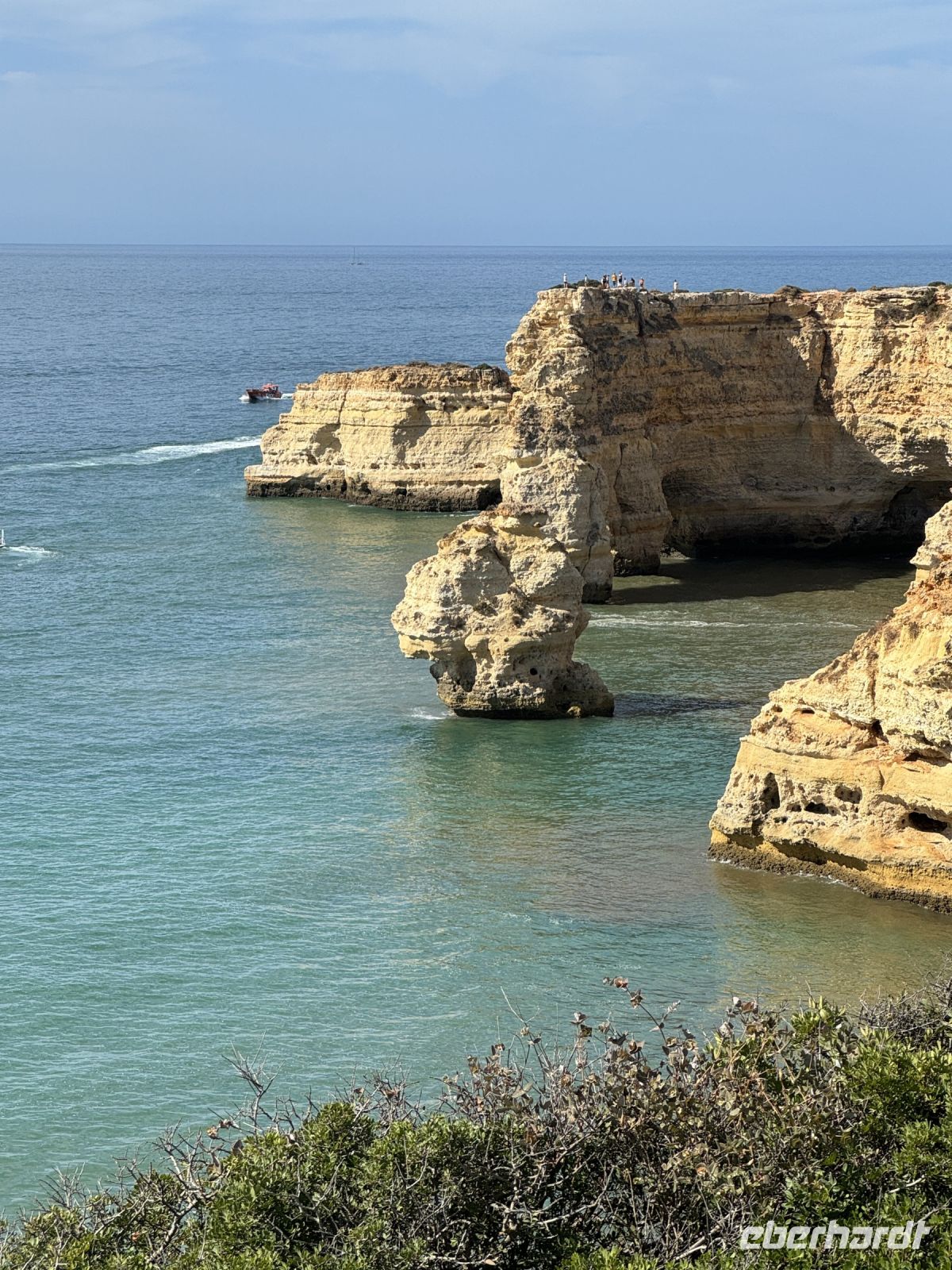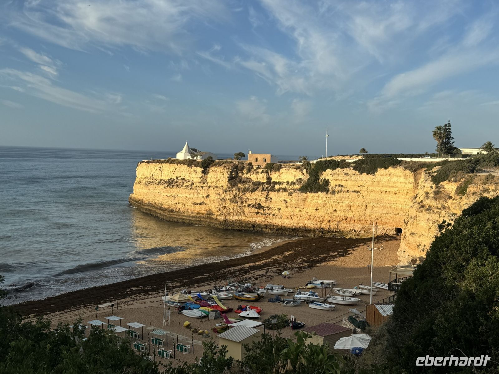 Einige Reiseteilnehmer unternehmen mit mir eine Wanderung entlang der Küste bis nach Benagil um die vielen Buchten und Höhlen vom Land aus zu erkunden. Wir bestaunen die wunderschöne Landschaft der Felsalgarve. Aufgrund von sehr starkem Wellengang konnten wir leider keine Bootsfahrt zur Besichtigung der Grotten vom Meer aus unternehmen. Am Abend trafen wir uns nach einem leckeren Abendessen im „Pestana Viking“ auf der nahegelegenen Landzunge an der „Ermida da Senorada Rocha“ und verkosteten dort die Spirituosenspezialitäten der Region, den „Medronho“ und den Alguardente.