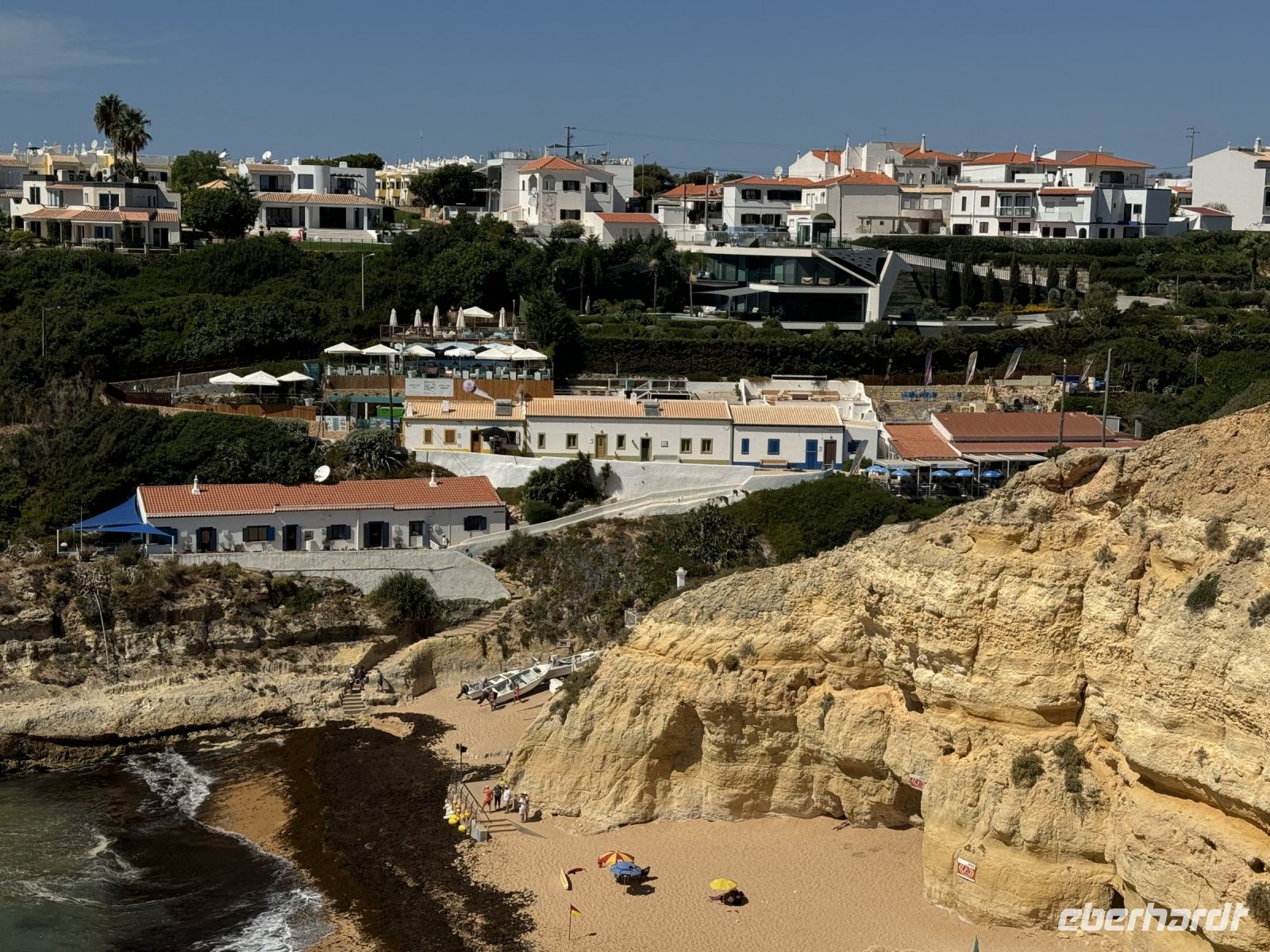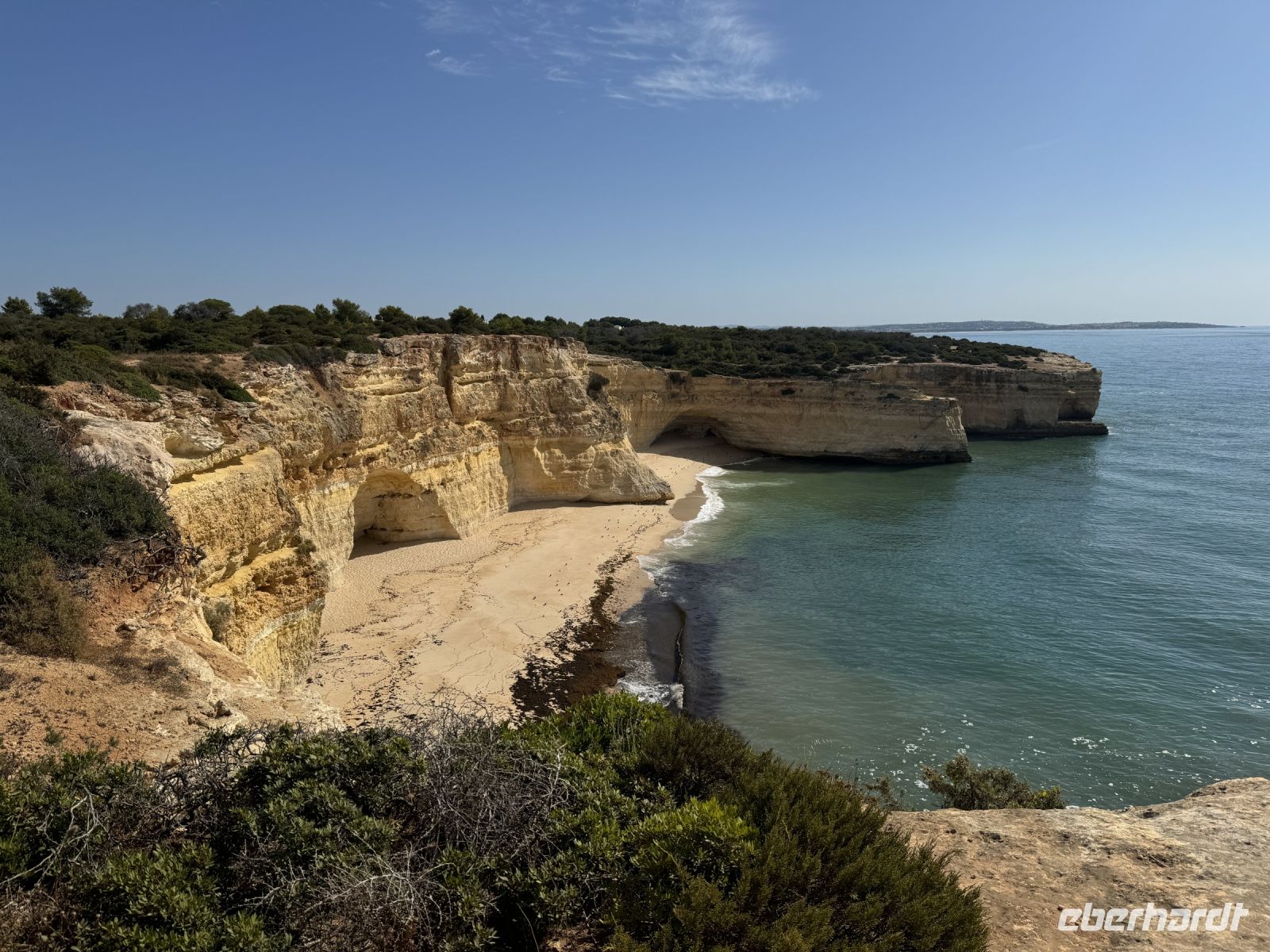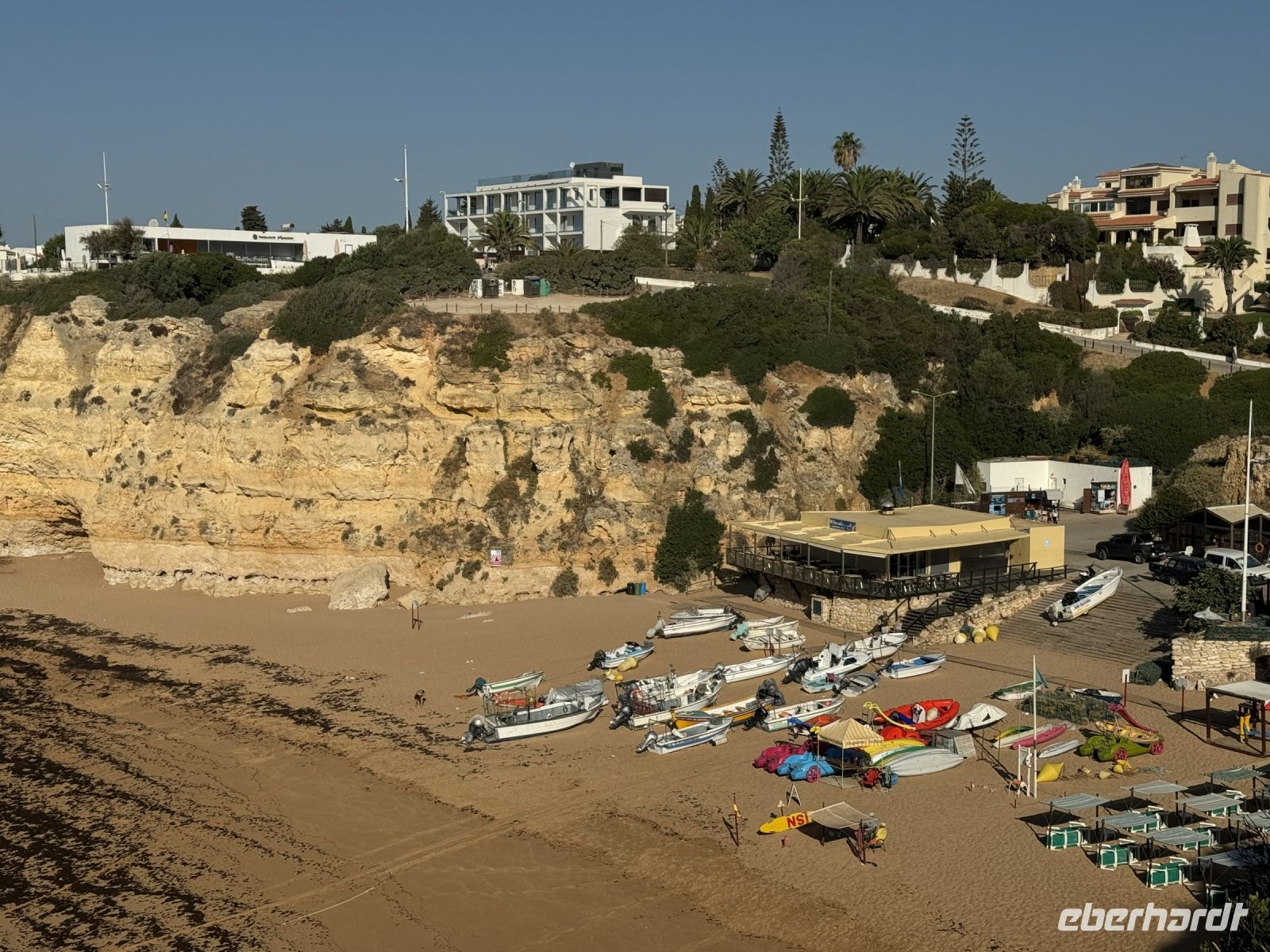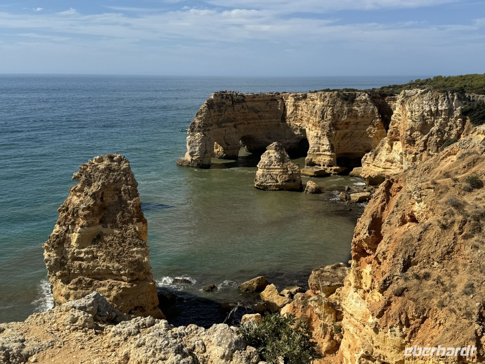 Einige Reiseteilnehmer unternehmen mit mir eine Wanderung entlang der Küste bis nach Benagil um die vielen Buchten und Höhlen vom Land aus zu erkunden. Wir bestaunen die wunderschöne Landschaft der Felsalgarve. Aufgrund von sehr starkem Wellengang konnten wir leider keine Bootsfahrt zur Besichtigung der Grotten vom Meer aus unternehmen. Am Abend trafen wir uns nach einem leckeren Abendessen im „Pestana Viking“ auf der nahegelegenen Landzunge an der „Ermida da Senorada Rocha“ und verkosteten dort die Spirituosenspezialitäten der Region, den „Medronho“ und den Alguardente.