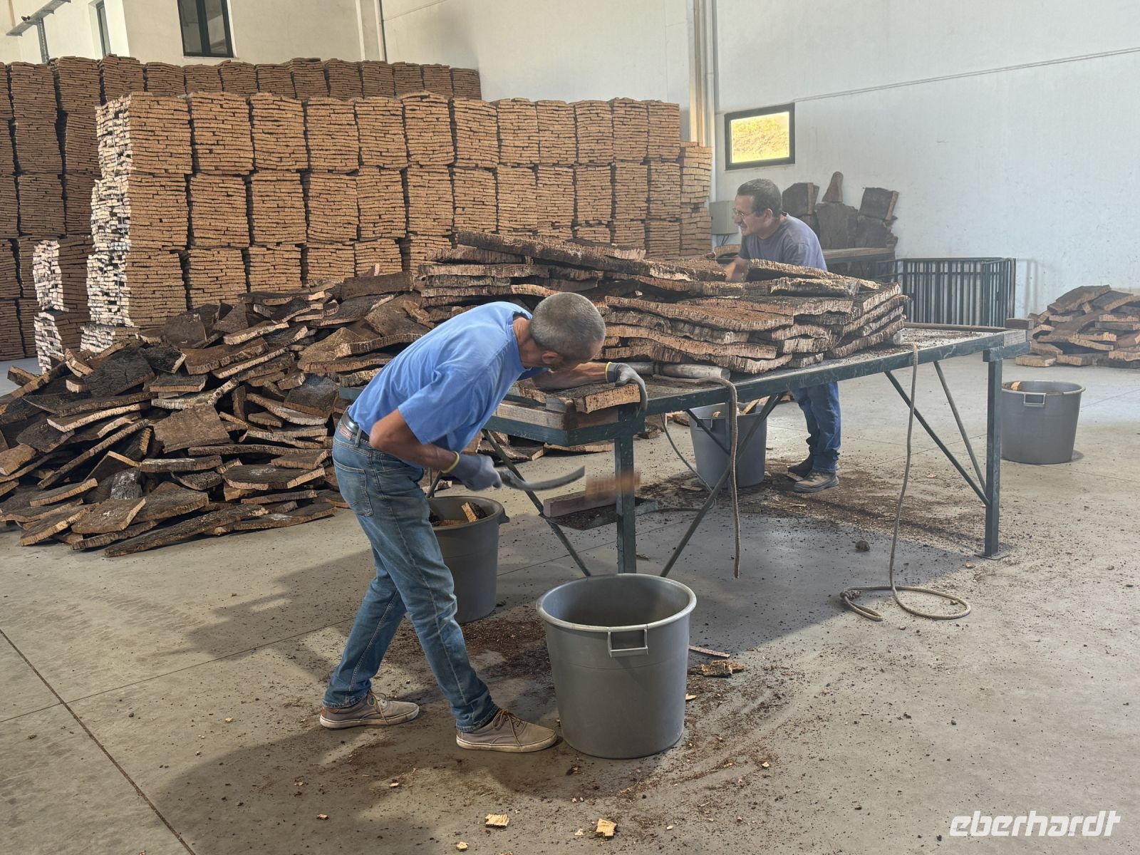Wir besuchten eine Korkeichenfabrik in Azaruja. Gunhild erzählte uns viel Wissenswertes über die Herstellung der verschiedensten Korkprodukte, vom Schälen der Korkeiche alle 9 Jahre, über das einstündige Kochen, bis hin zur Verarbeitung der nun glatten Rinde.