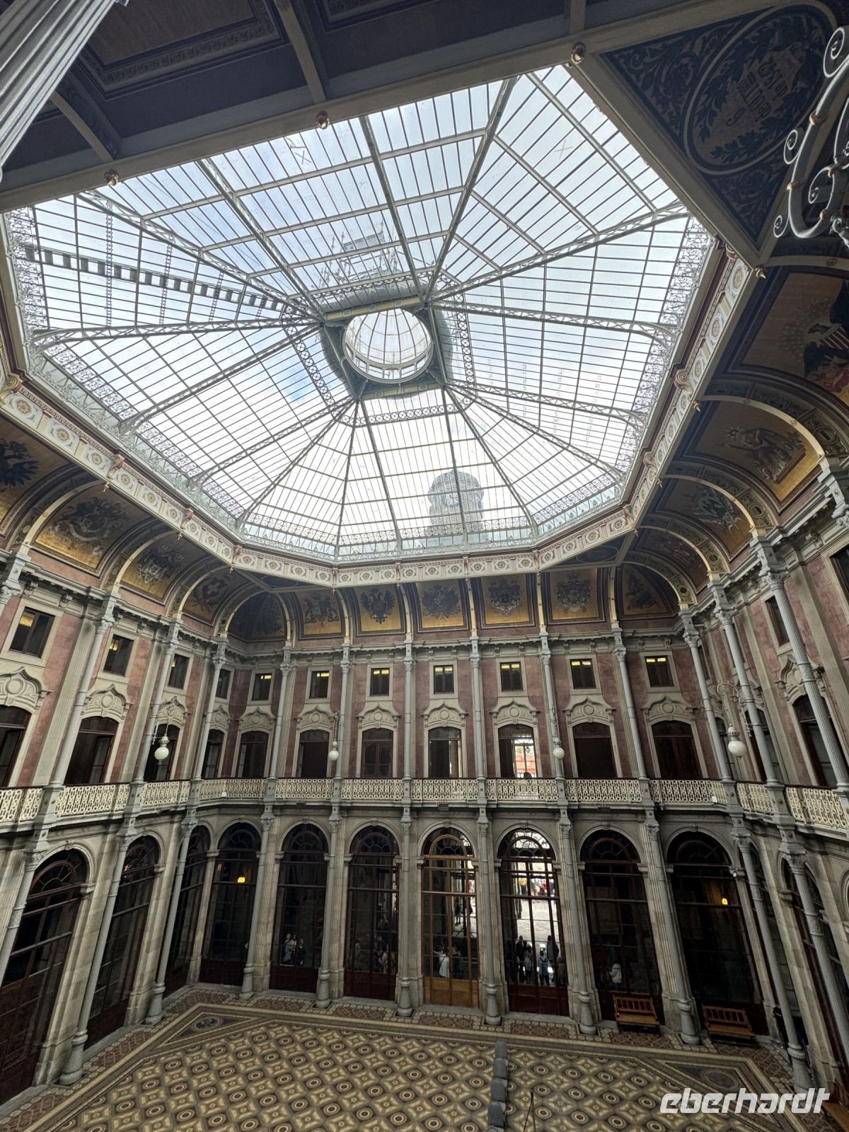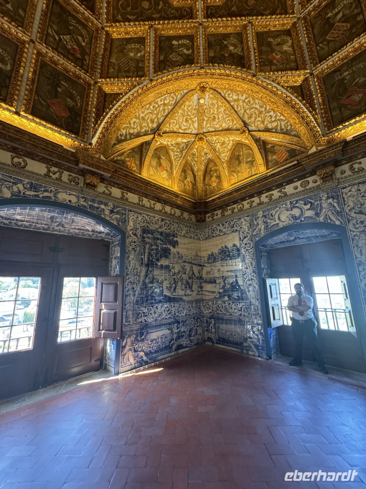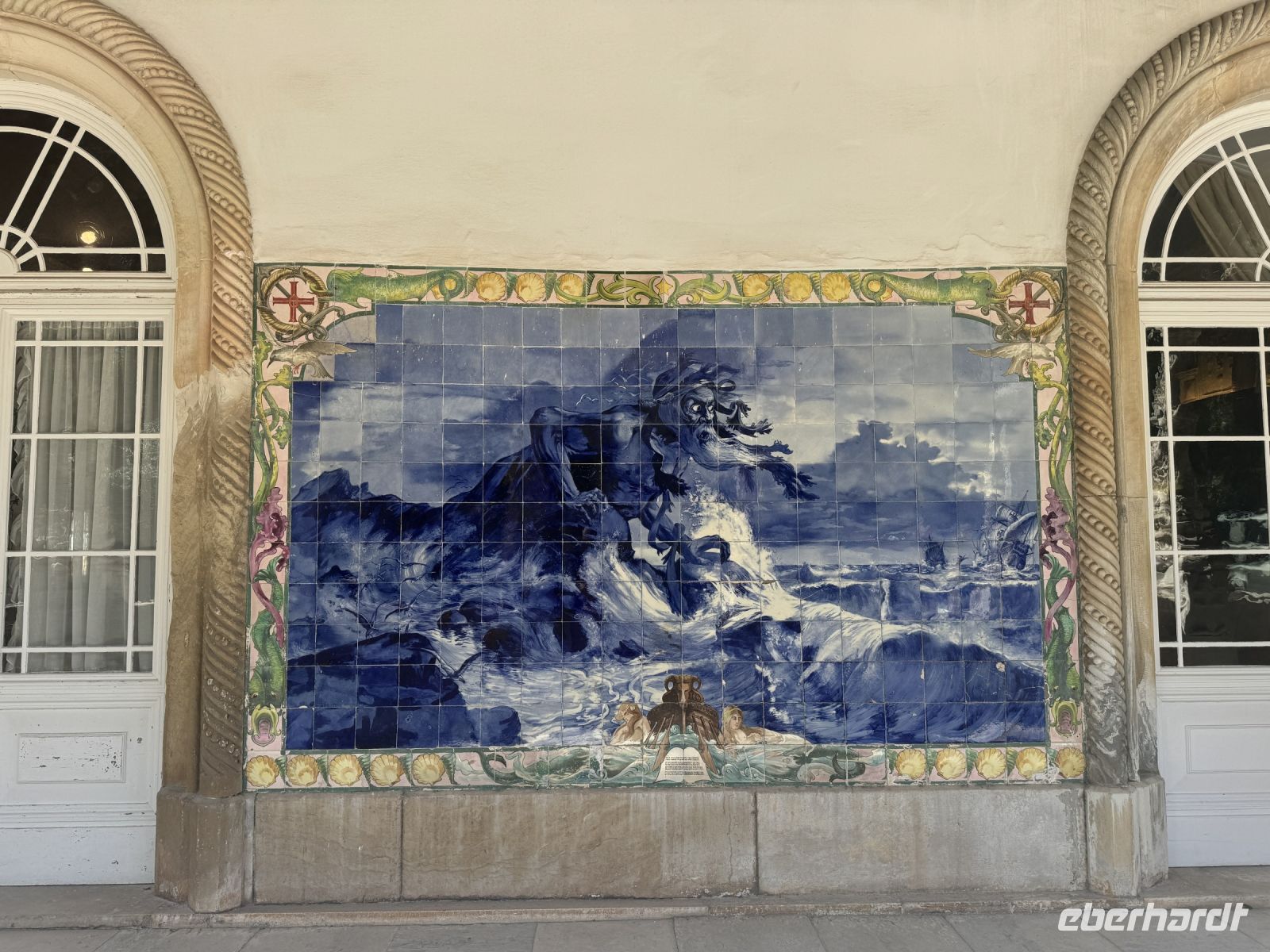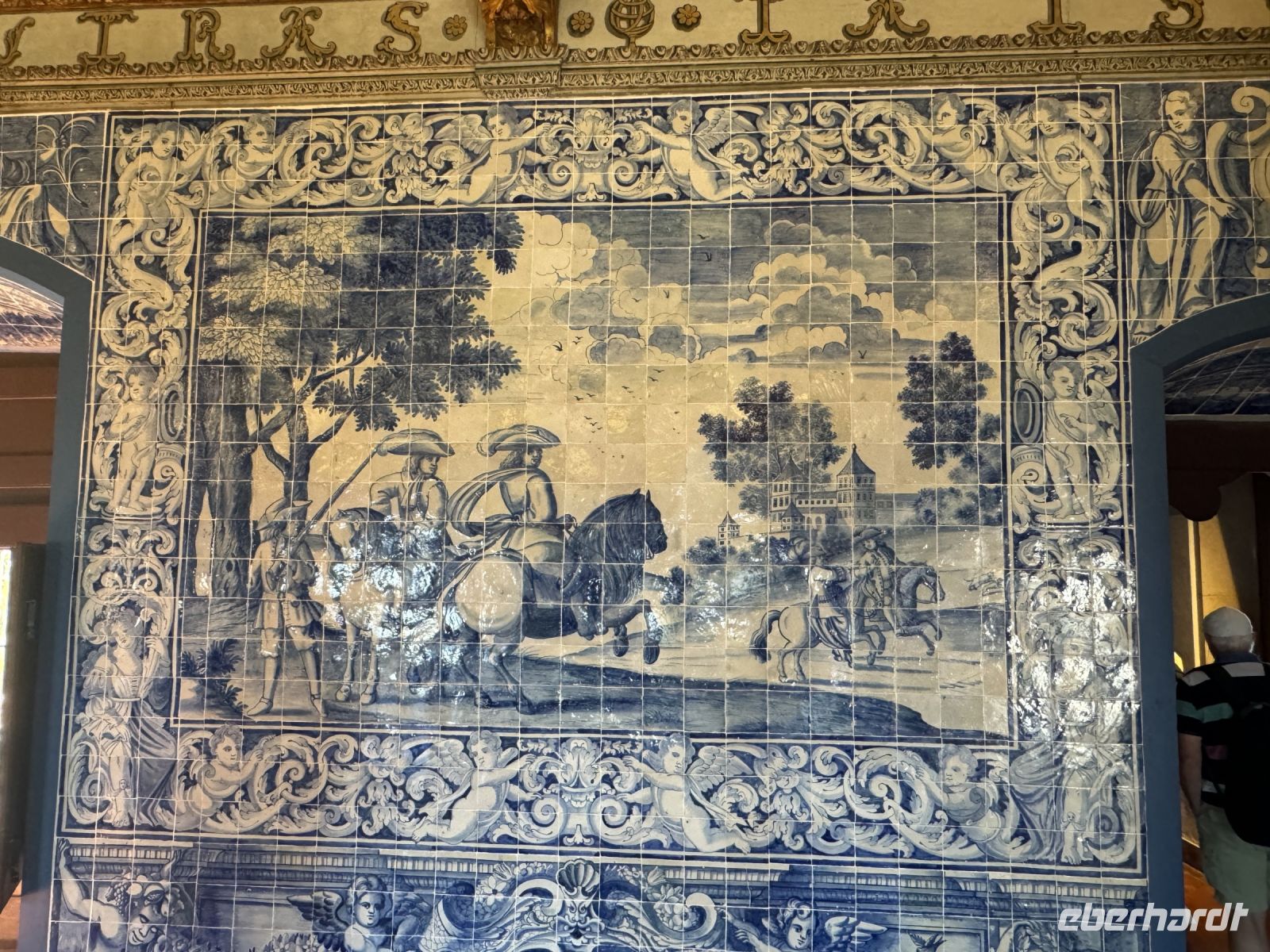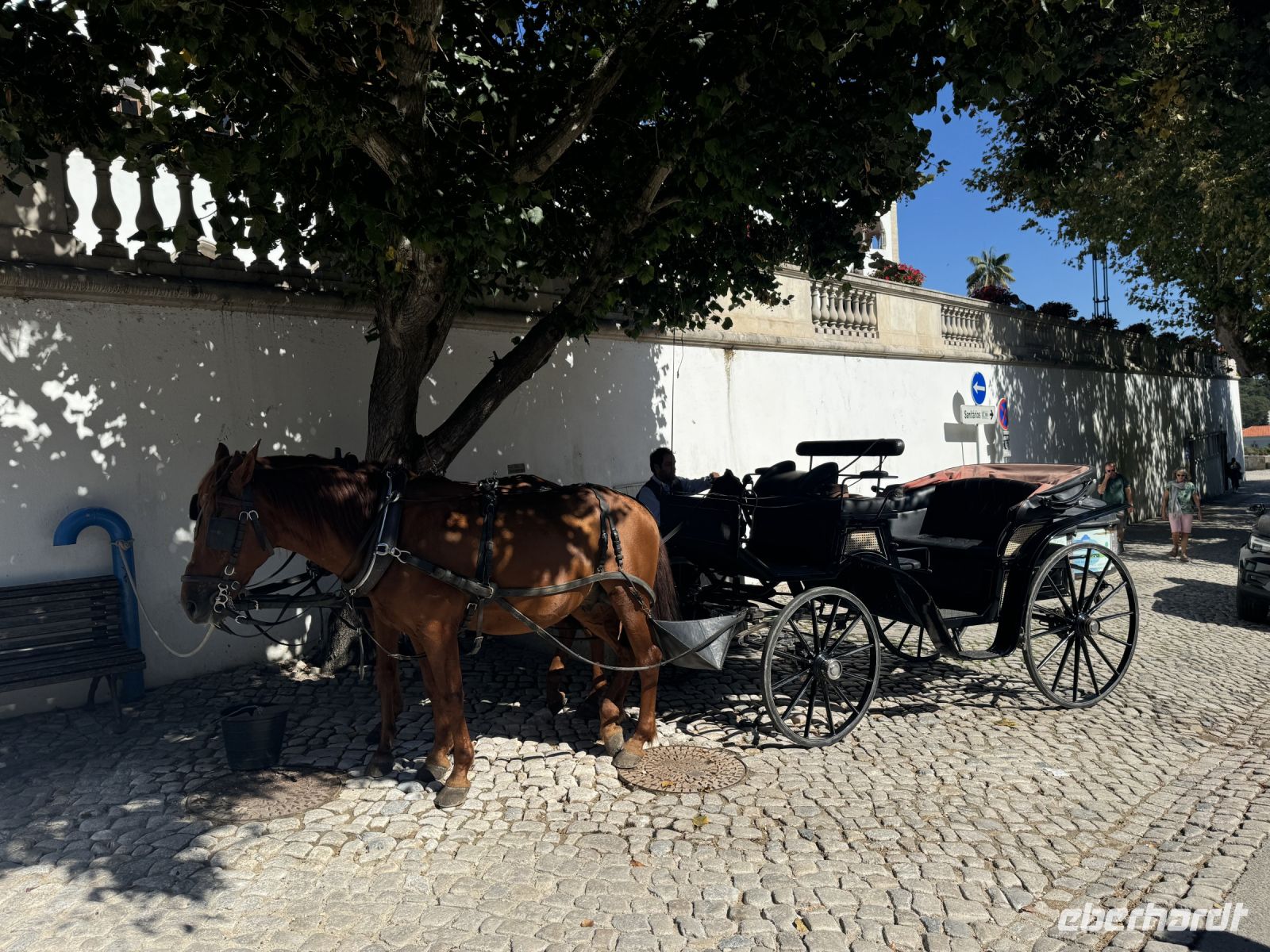 Hier befindet sich auch das ehemalige Jagdschloss der portugiesischen Könige, seit 1917 als Palace Hotel. Im neo-manuelinischen Stil dürfen sich die Gäste wie in einem Märchenschloss fühlen, mit Türmchen, Azulejos und, verzierten Säulen.