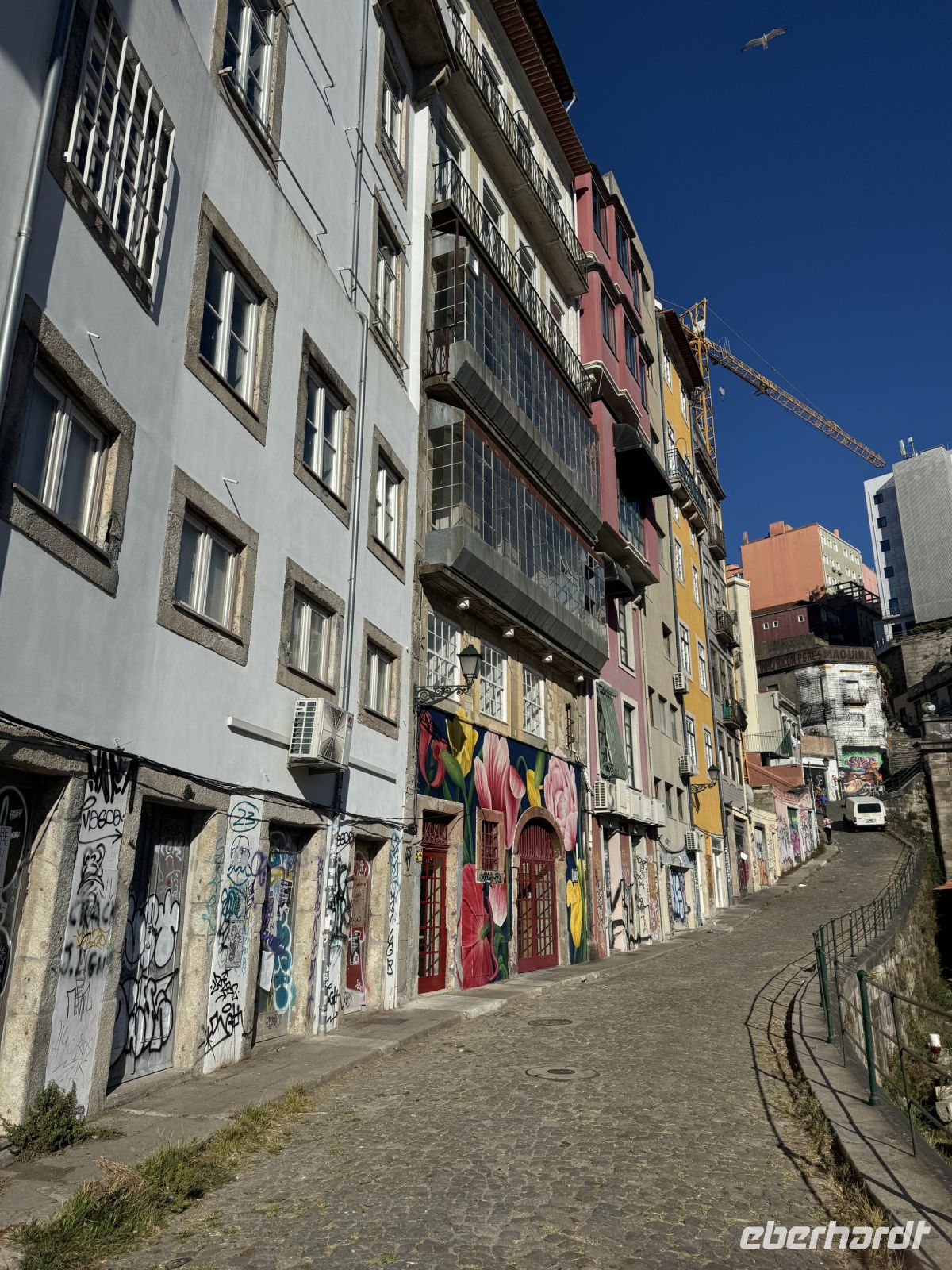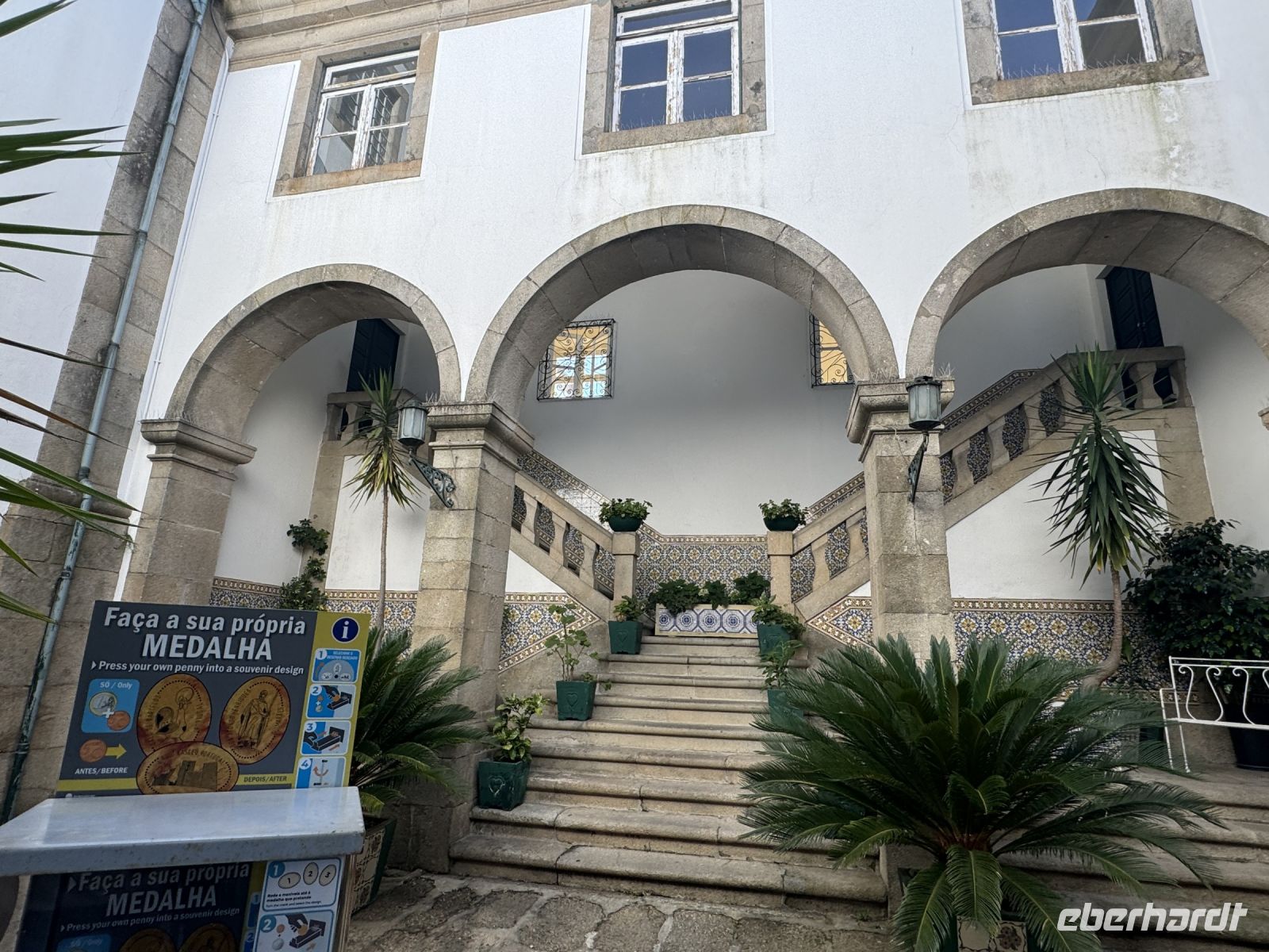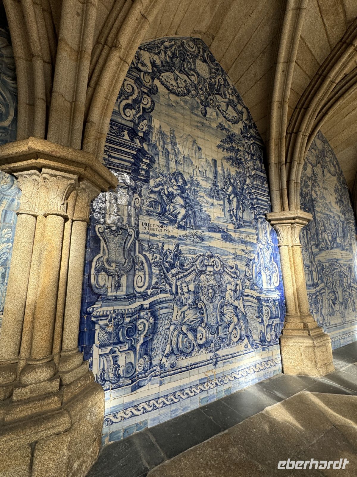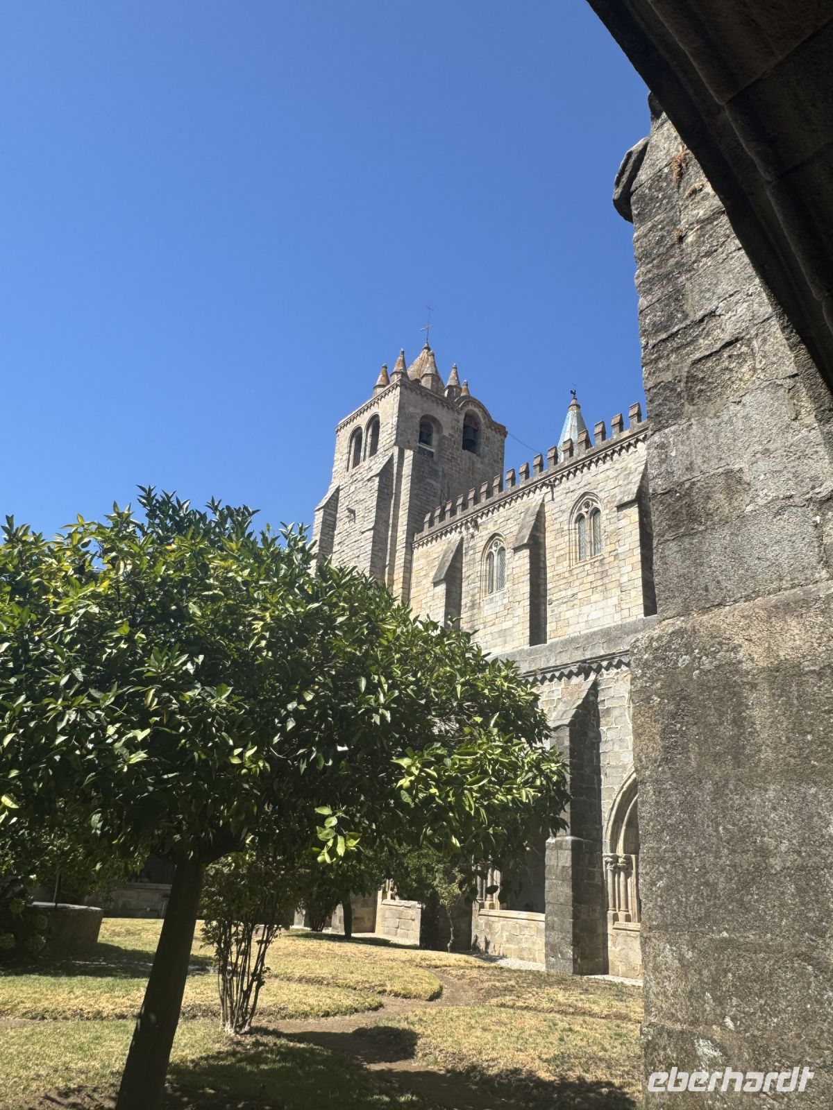 Unser erstes Ziel war dir Kathedrale von Porto. Der Bau wurde Anfang des 12. Jahrhunderts im romanischen Stil begonnen. Aus dieser Zeit sind die Doppelturmfassade mit Rosettenfenster und das Langhaus erhalten. Der gotische Kreuzgang wurde im 14. Jahrhundert errichtet. 1387 war die Kathedrale Schauplatz der Hochzeit von König Johann I. mit der englischen Prinzessin Philippa of Lancaster.
