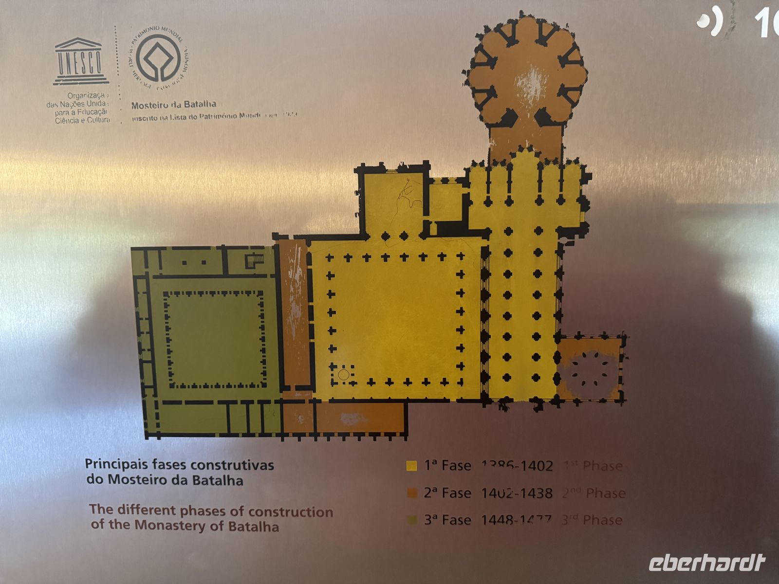 Der nächste Besuch galt dem Kloster von Batalha. Dieses wurde aufgrund eines Gelübdes von König Johann I. im 14. Jahrhundert erbaut. Laut Erbfolge sollten die Portugiesen ihre Eigenständigkeit aufgeben und sich den Spaniern unterwerfen. So übernahm Johann I. die Führung zur Verteidigung gegen die weitaus überlegenen Spanier und gelobte, wenn er mit seinem getreuen Feldherrn Nuno Alvero Pereira als Sieger aus dieser Schlacht hervorginge, ein Kloster der Heiligen Jungfrau Maria errichten zu lassen, was 2 Jahre nach dieser Schlacht realisiert wurde.