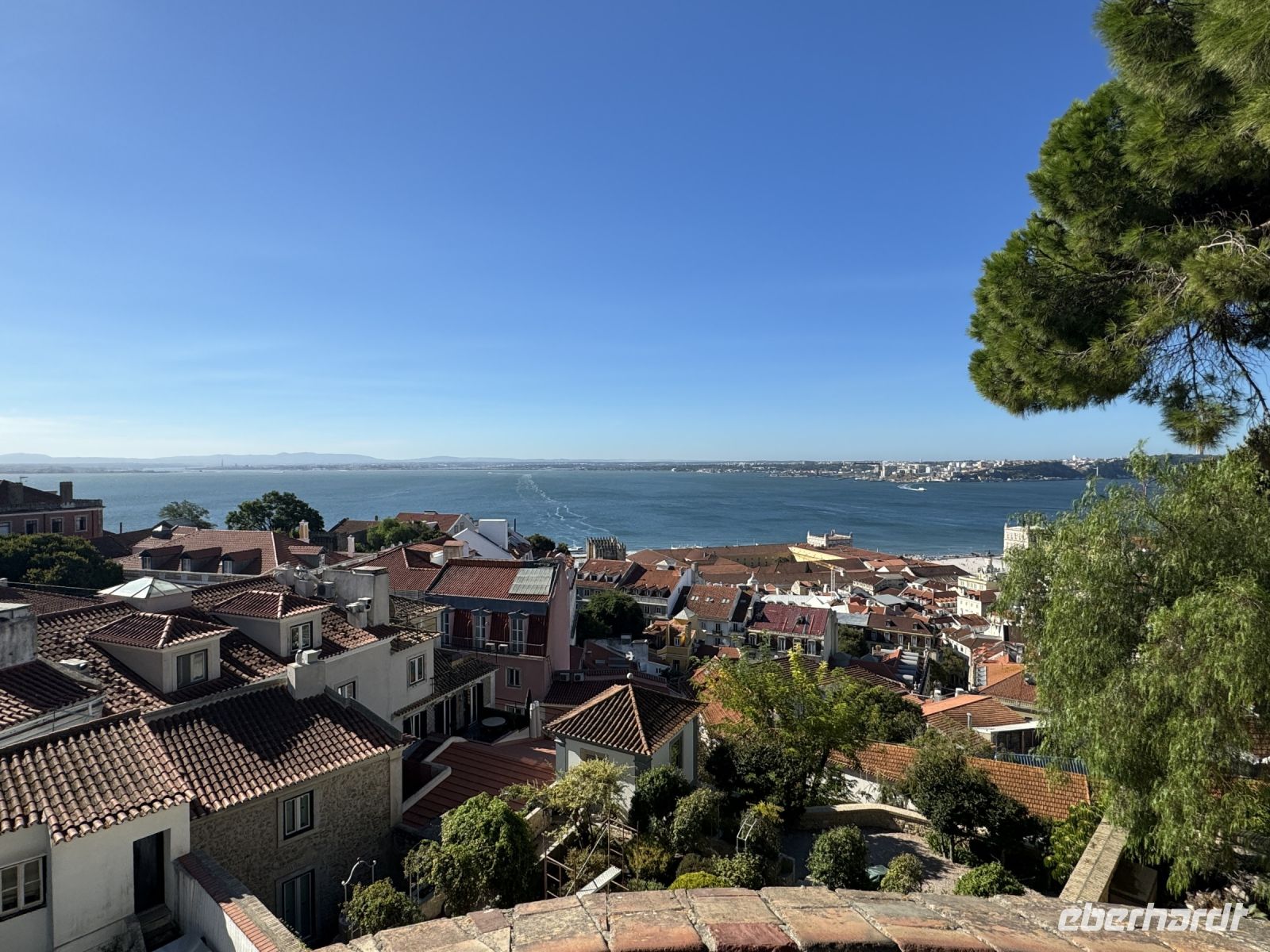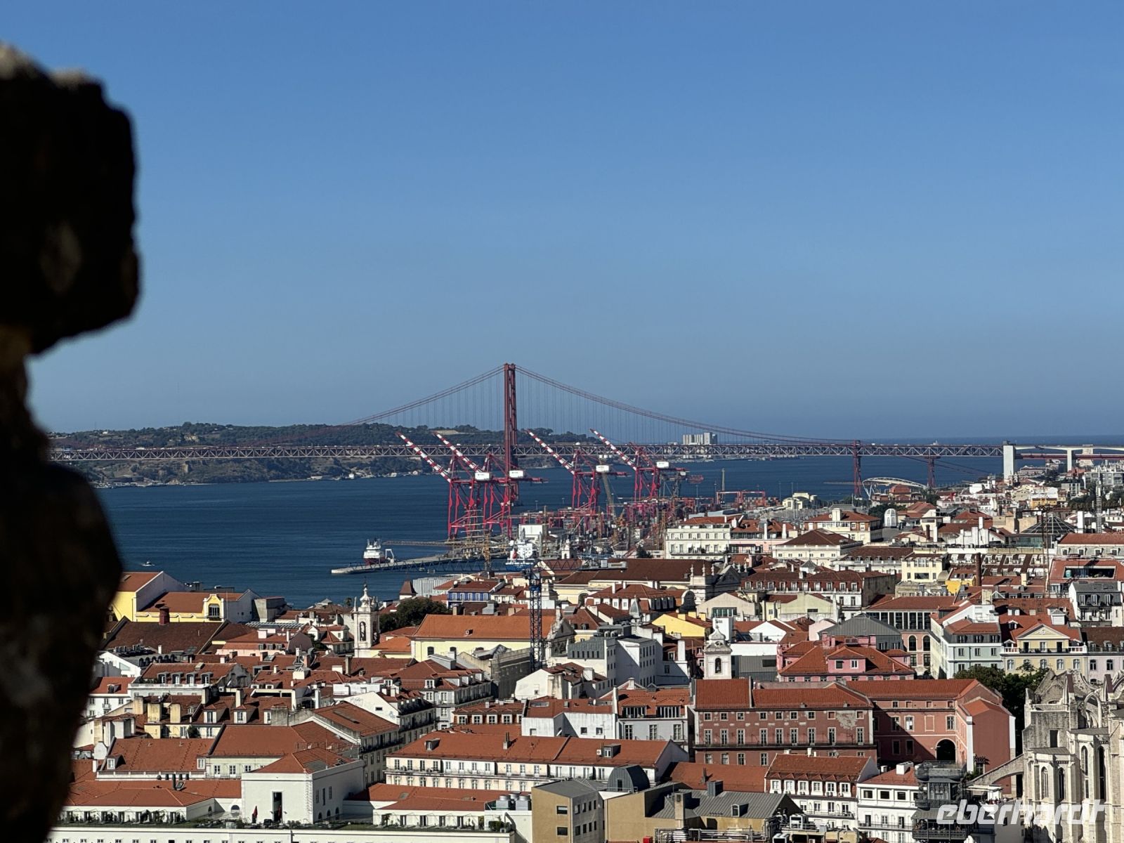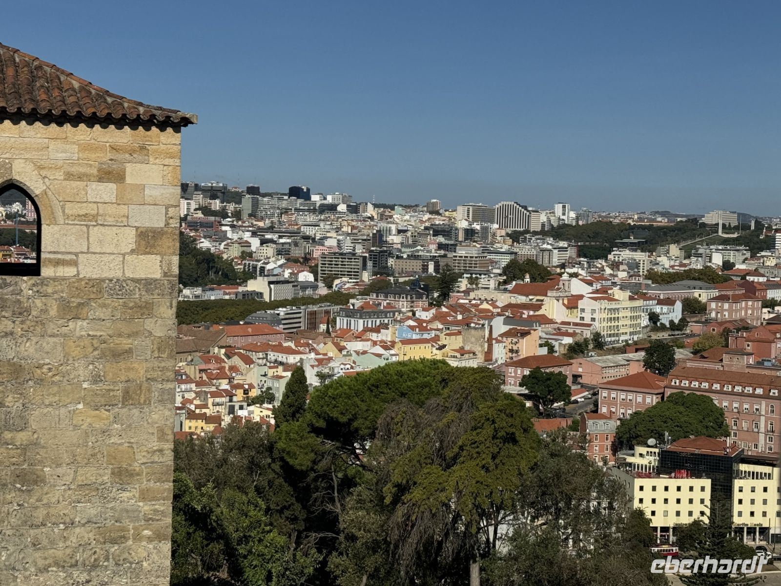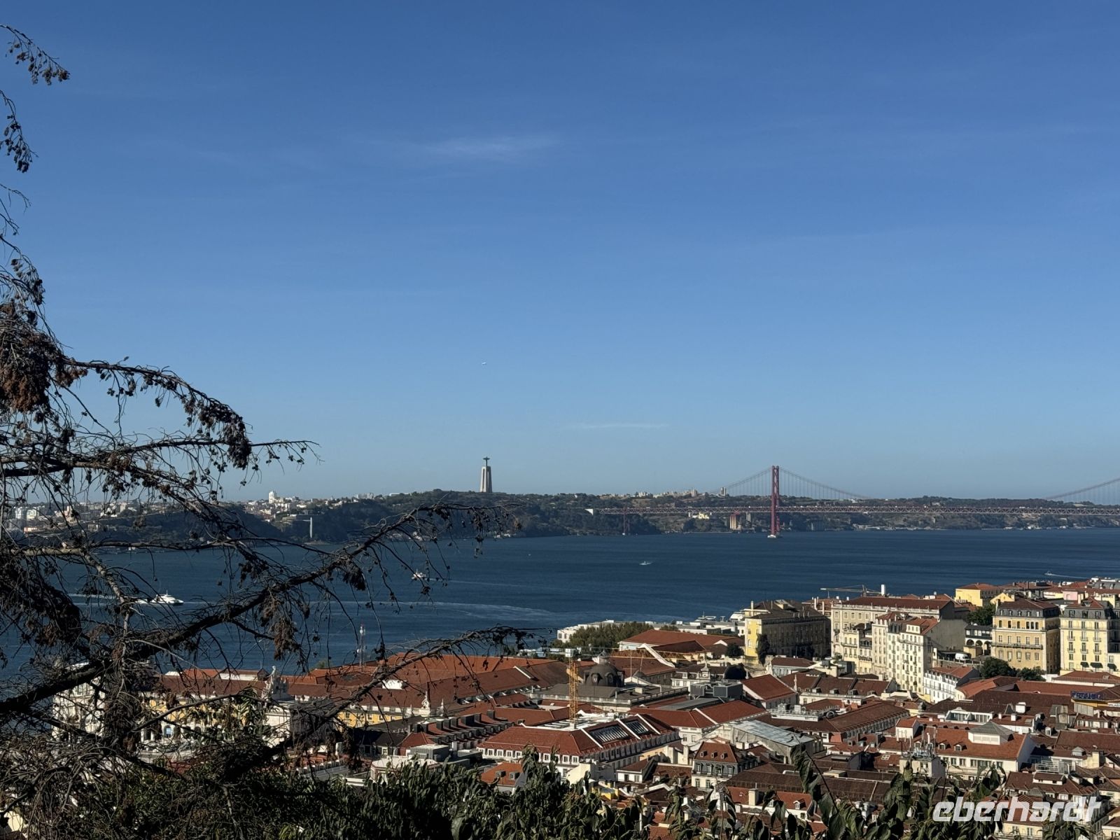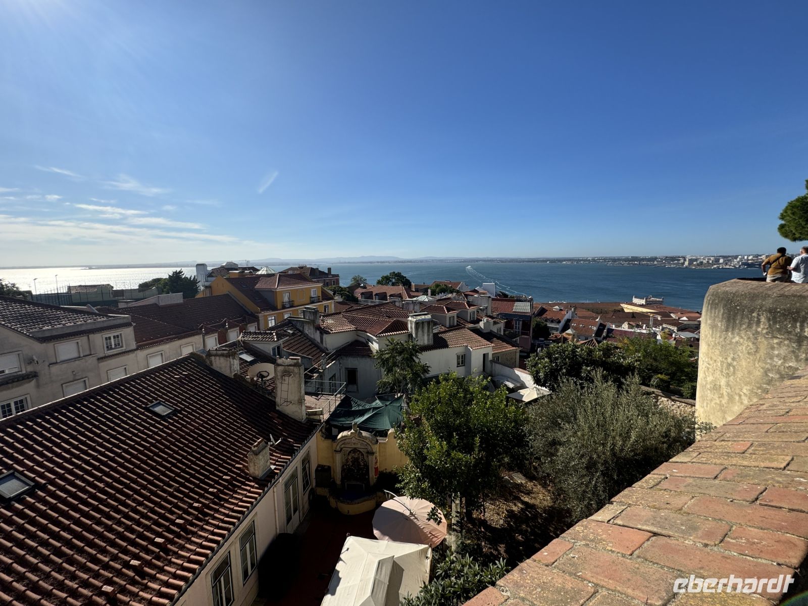 Nach einem Spaziergang durch die Altstadt genossen wir von der Festung S. Jorge einen herrlichen Blick auf die Oberstadt Barrio Alto und die Unterstadt El Rossio am Fluss Tejo. Wir blickten auf die andere Tejo-Seite mit der Christus-Statue, über die Hängebrücke, zum größten Platz Lissabons, Terreiro, dem Aufzug Santa Justa und vieles mehr.