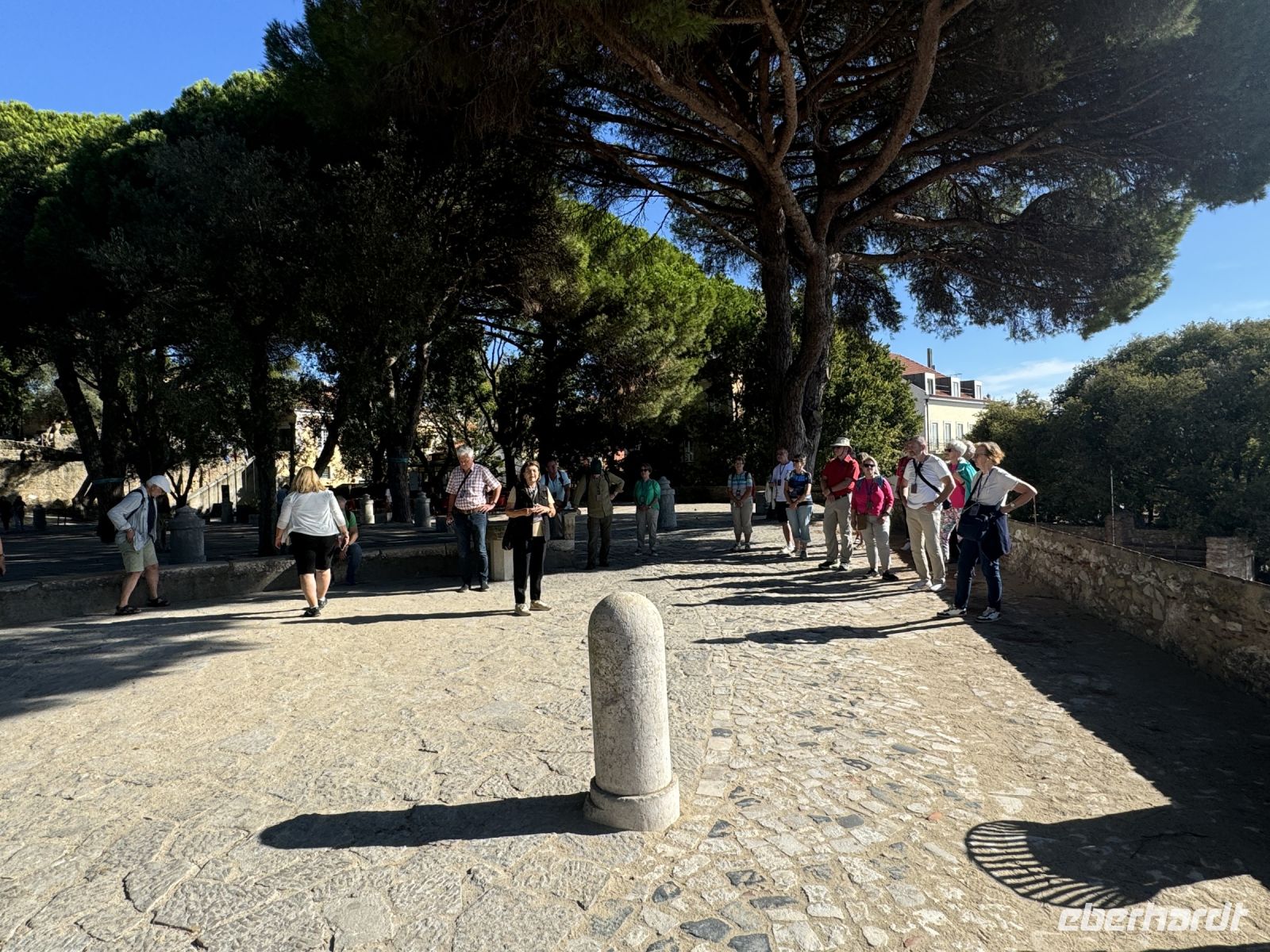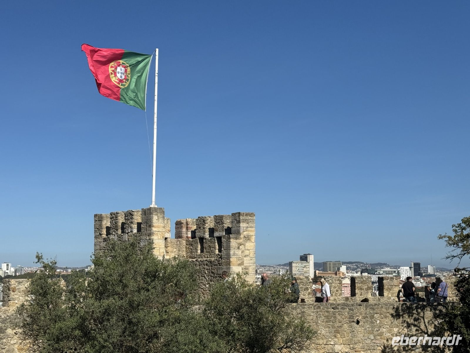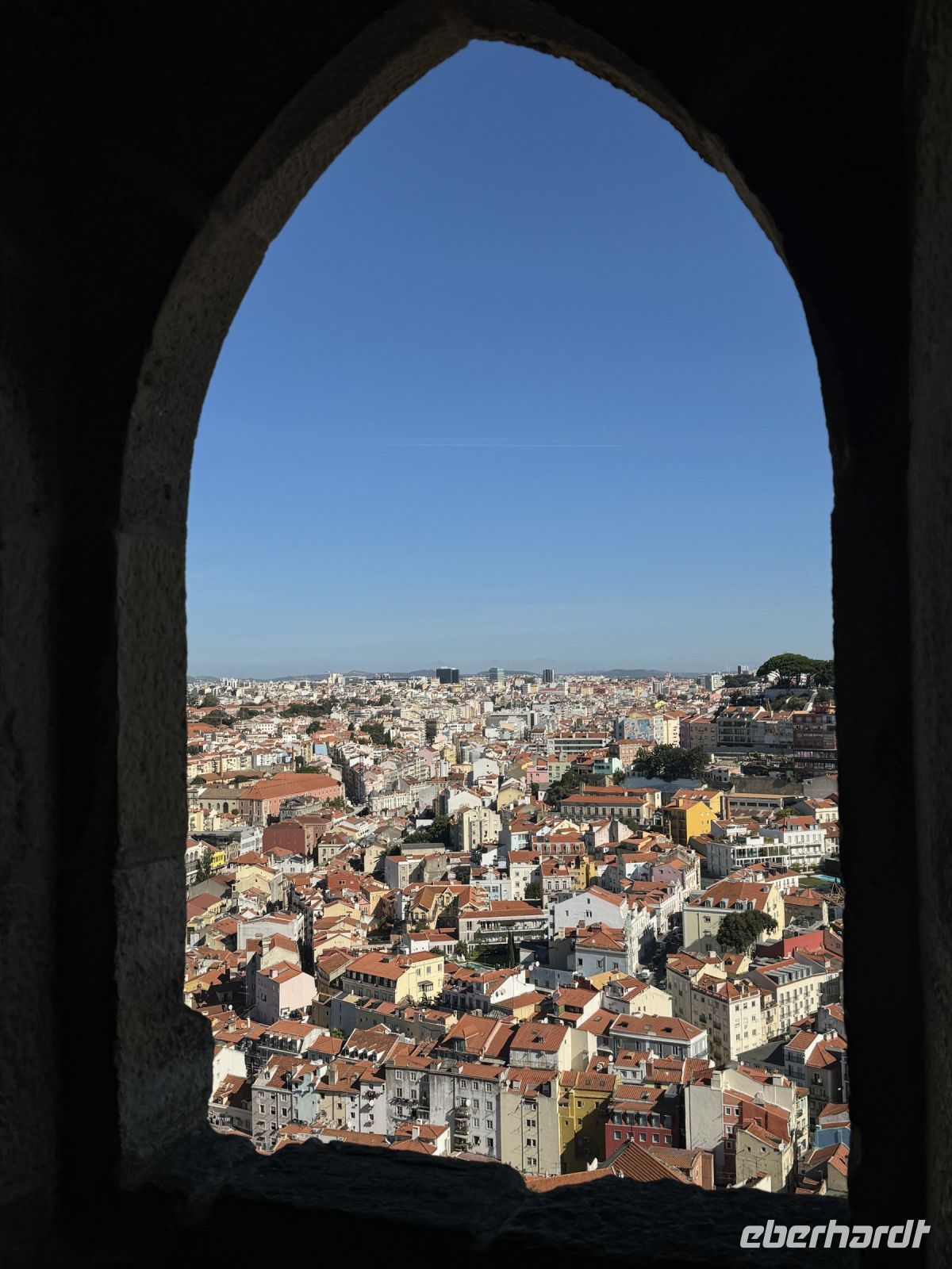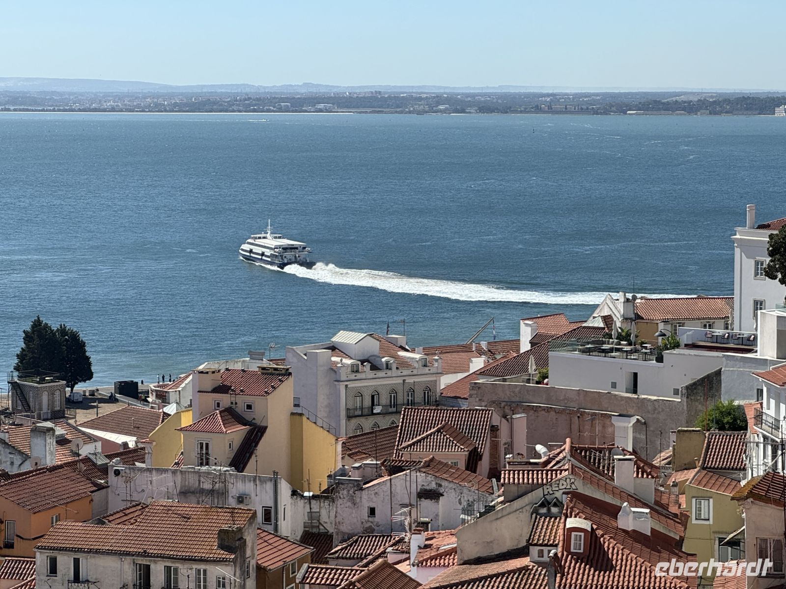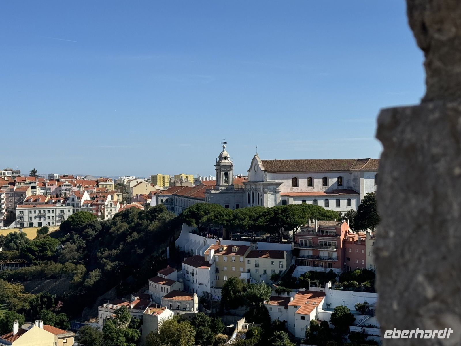 Nach einem Spaziergang durch die Altstadt genossen wir von der Festung S. Jorge einen herrlichen Blick auf die Oberstadt Barrio Alto und die Unterstadt El Rossio am Fluss Tejo. Wir blickten auf die andere Tejo-Seite mit der Christus-Statue, über die Hängebrücke, zum größten Platz Lissabons, Terreiro, dem Aufzug Santa Justa und vieles mehr.
