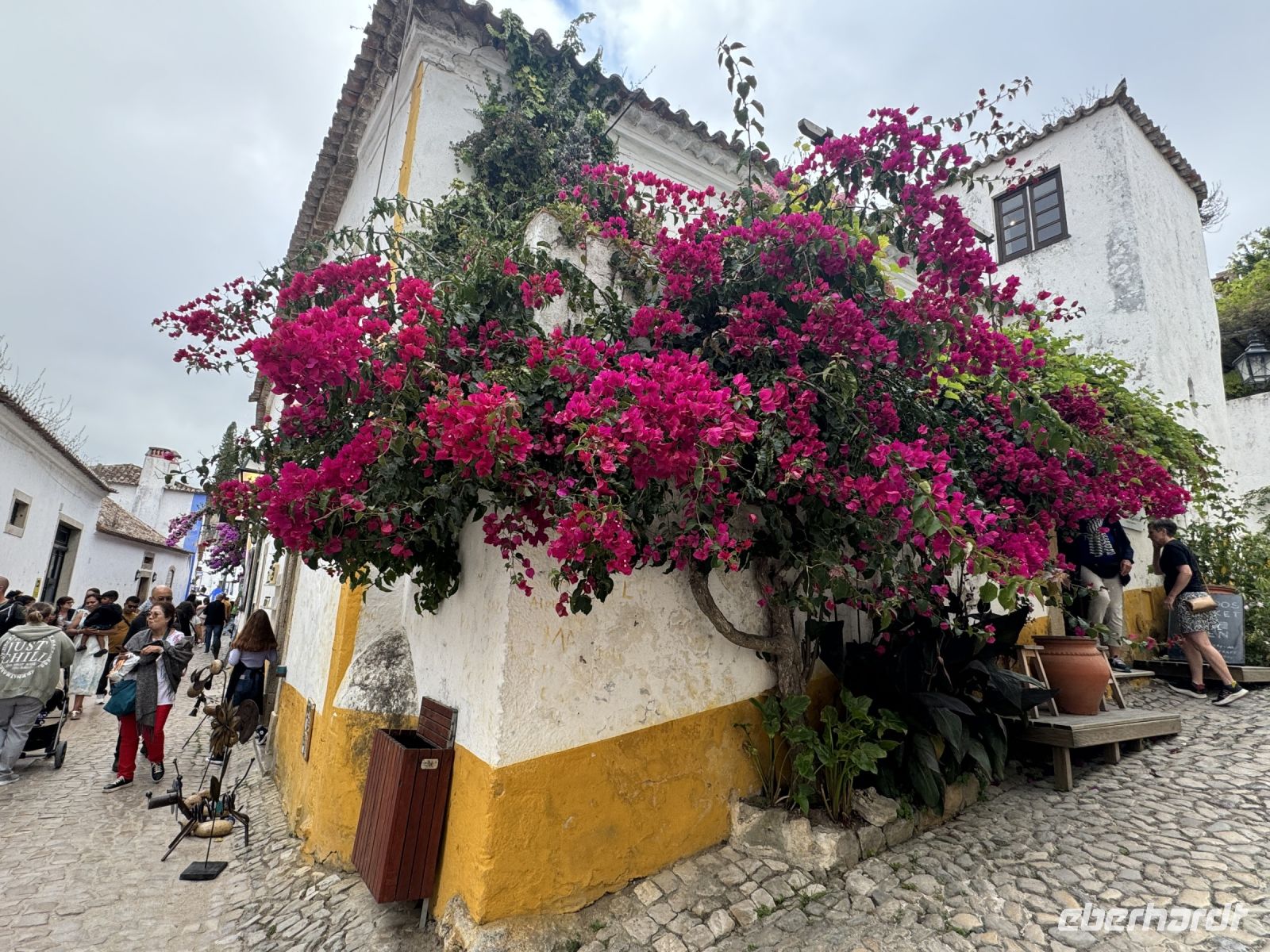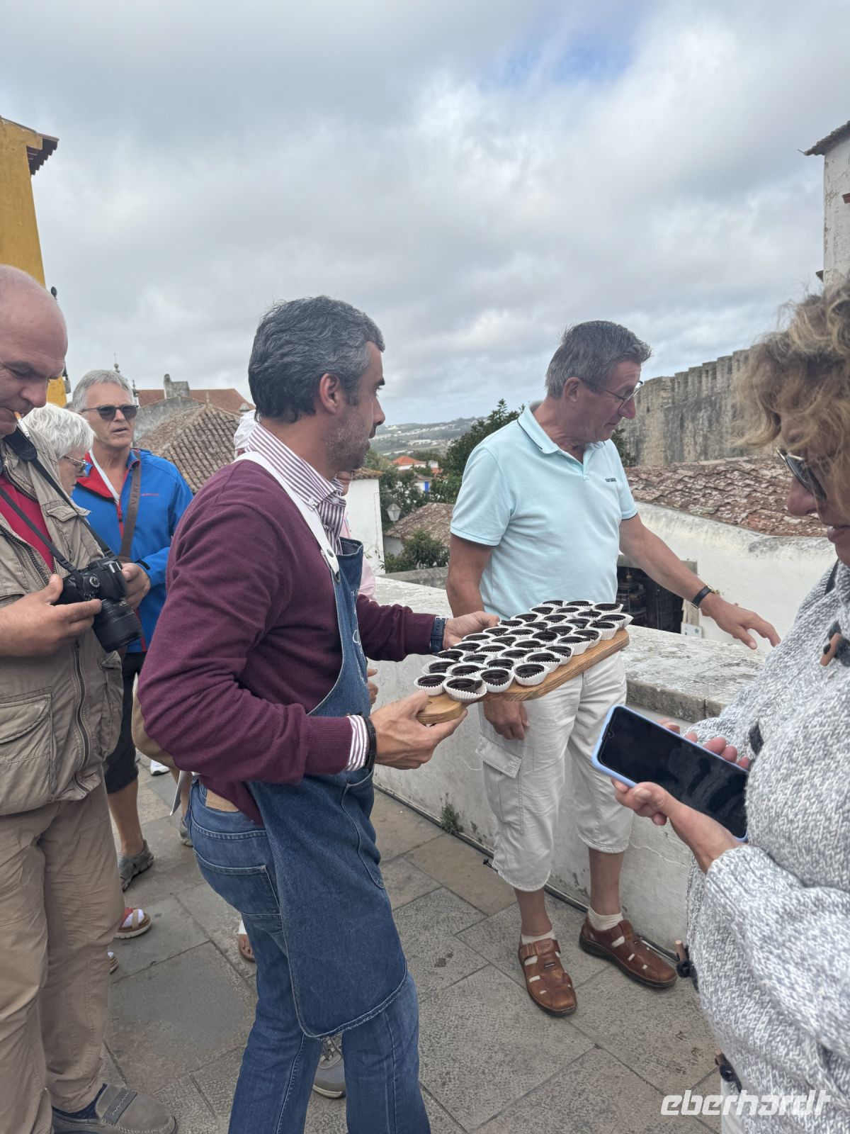 Danach brachen wir auf in die Kleinstadt Stadt Obidos, die komplett von einer fast zwei Kilometer langen Stadtmauer umgeben ist. Hinter der historischen Stadtmauer konnten wir in einem der kleinen Läden den typischen Kirschlikör „Gigjinha“aus dem Schokoladenbecher probieren. Bei einem kurzen Spaziergang erkundeten wir die engen Gassen des historischen Örtchens,