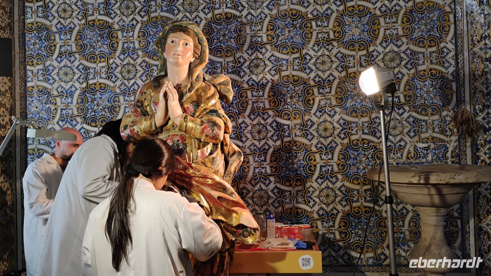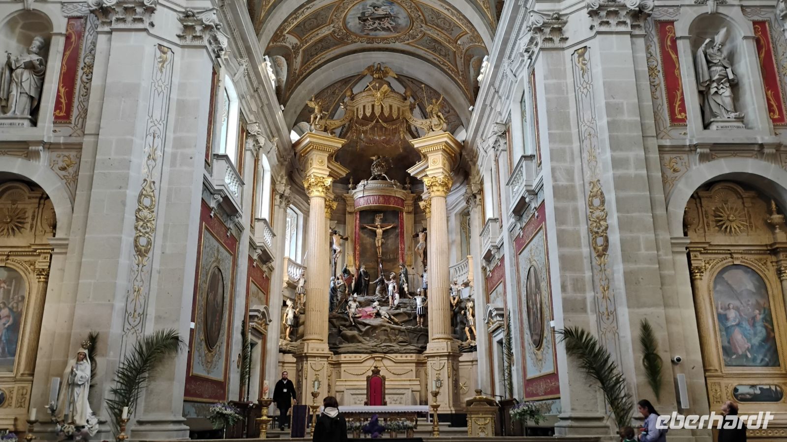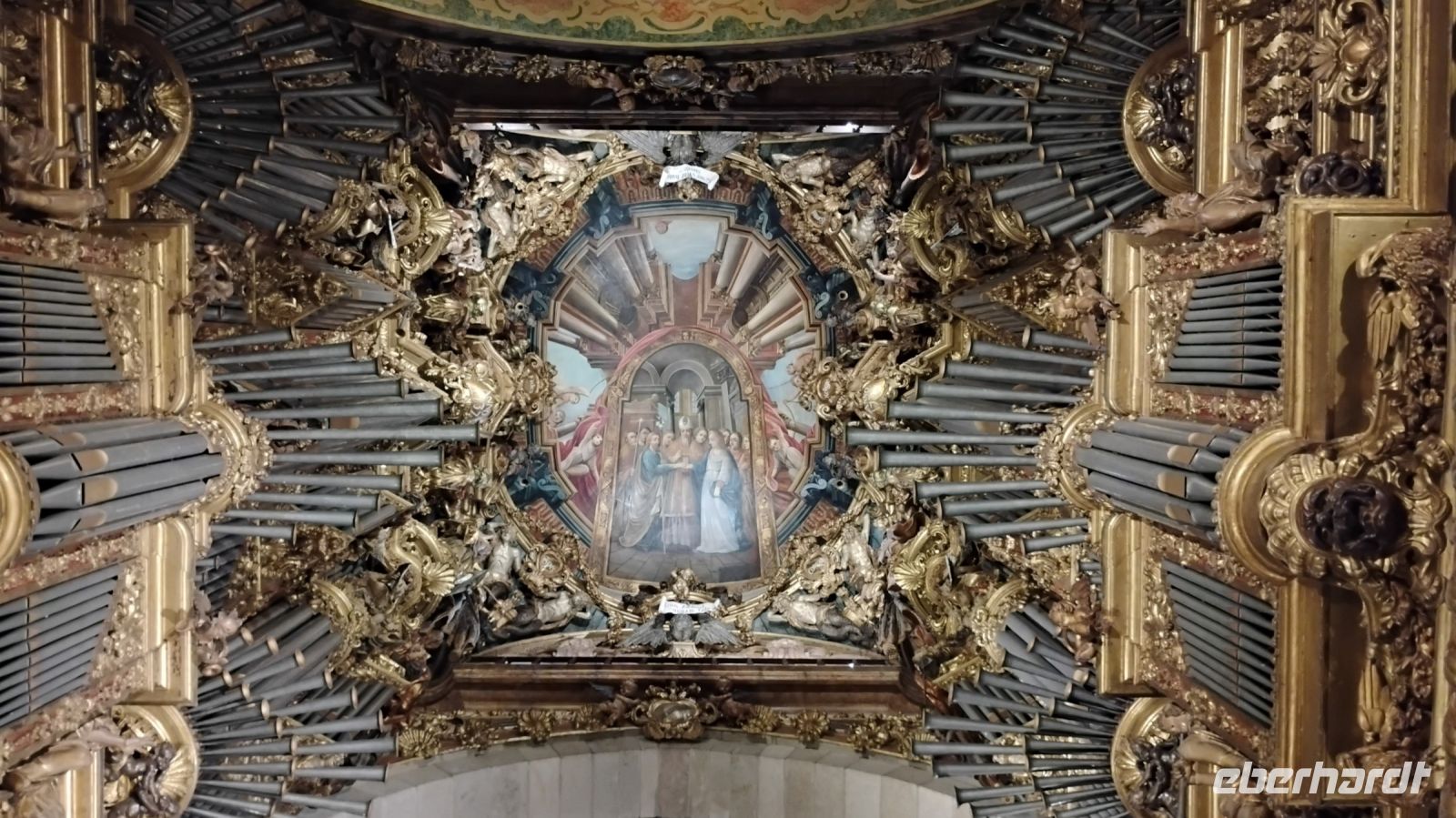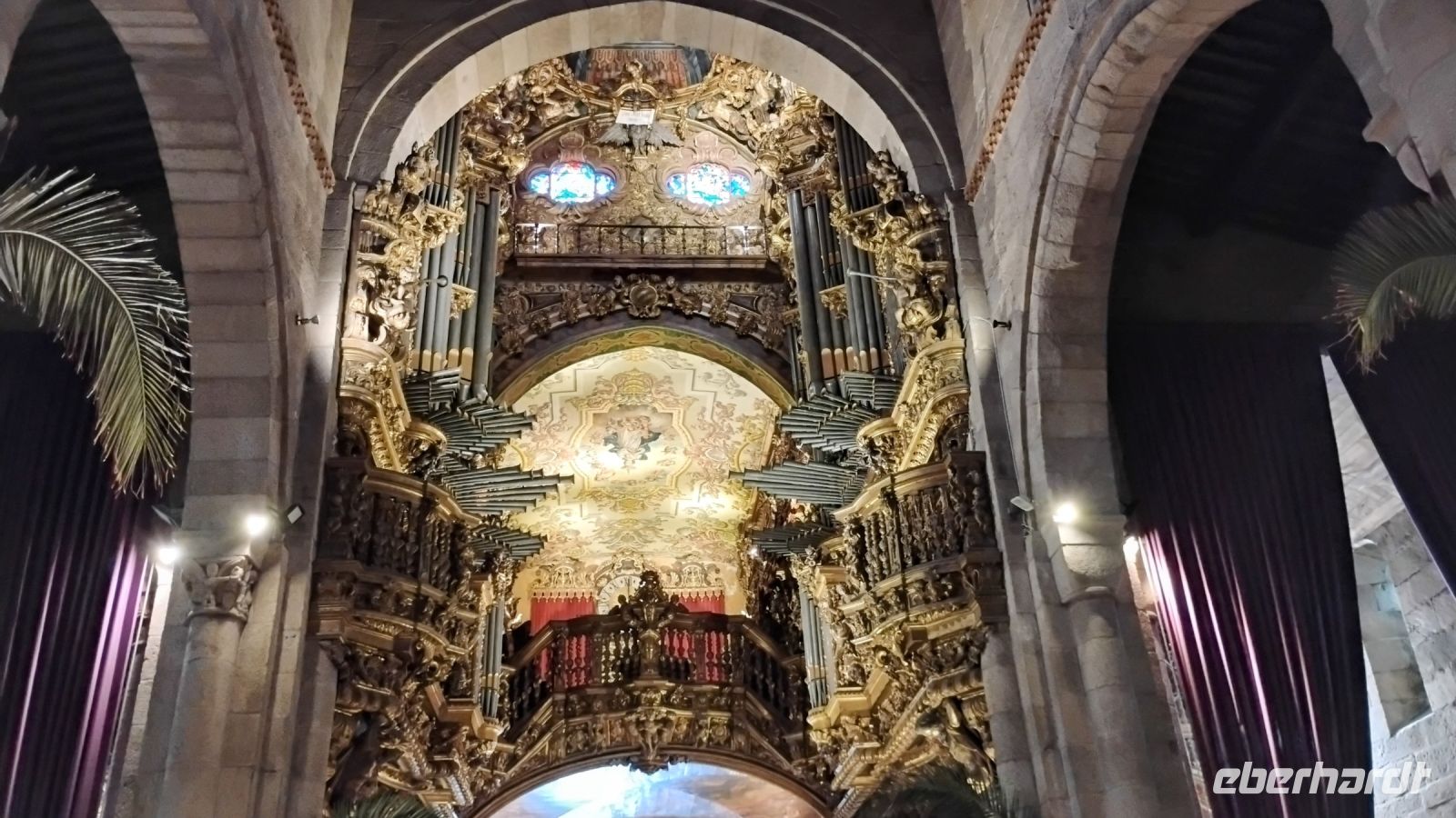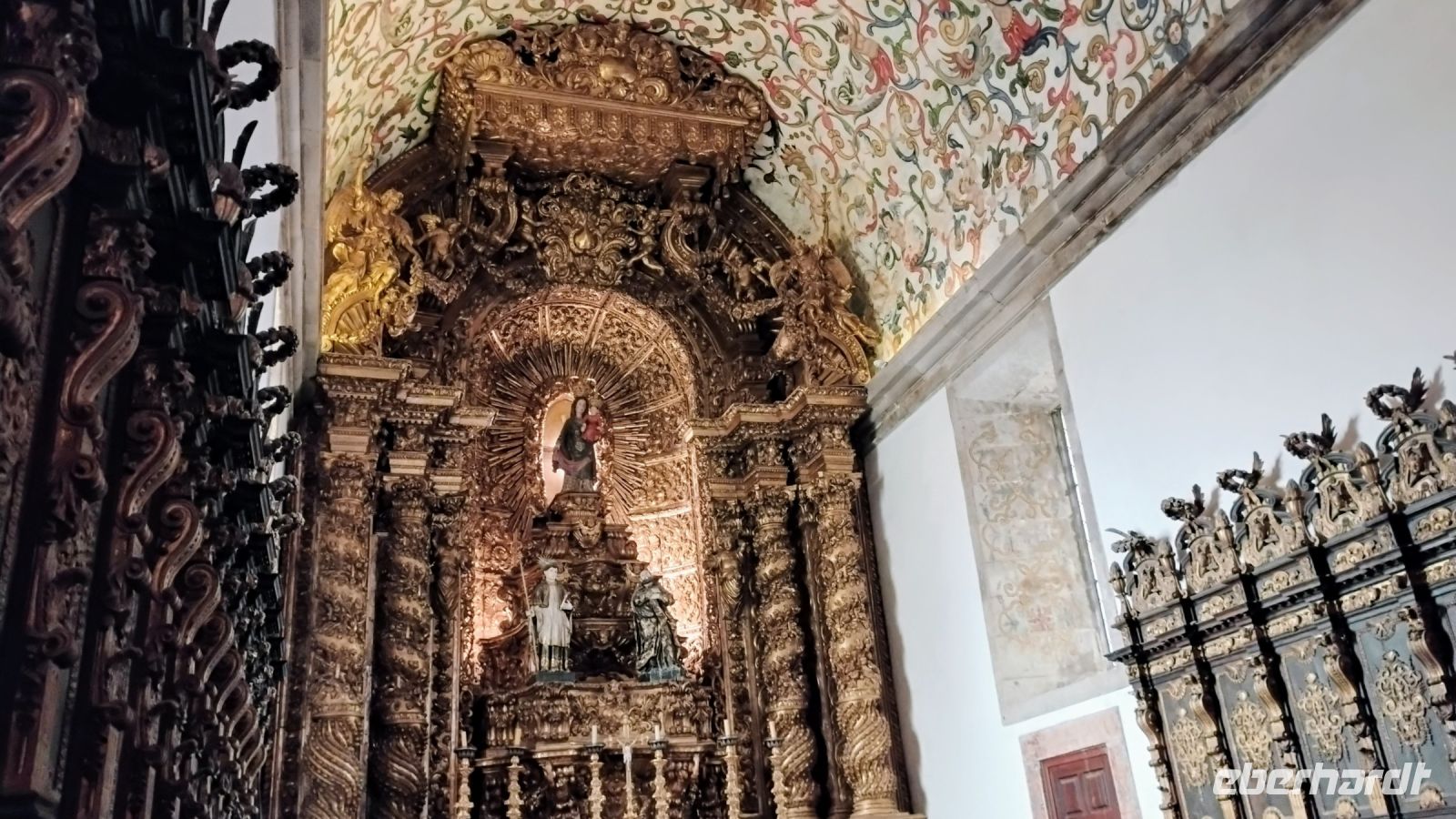 Unsere letzte Station war Braga, das auch als „portugiesisches Rom“ bekannt ist. Nach einer Mittagspause wagten wir uns trotz des wieder einsetzenden Regens noch für einen Spaziergang in die Altstadt, wo wir die Kathedrale von Braga besichtigten. Besonders beeindruckend war die barocke Orgel der Kathedrale. Sie ist eine der ältesten und schönsten in Portugal und bekannt für ihre außergewöhnliche Akustik. Leider konnten wir die Orgel an diesem Tag nicht hören, da wir uns in der Karwoche befinden. Die violetten Dekorationen in der Kathedrale und über der Fußgängerzone, zusammen mit der sakralen Musik, die über Lautsprecher in der Stadt erklang, verstärkten die besondere Atmosphäre.