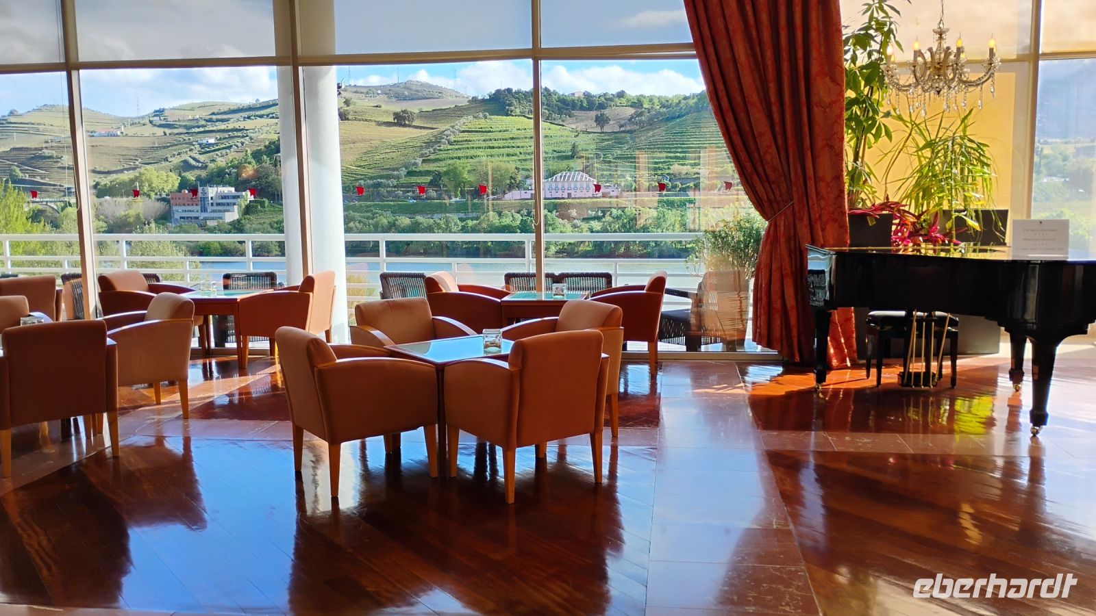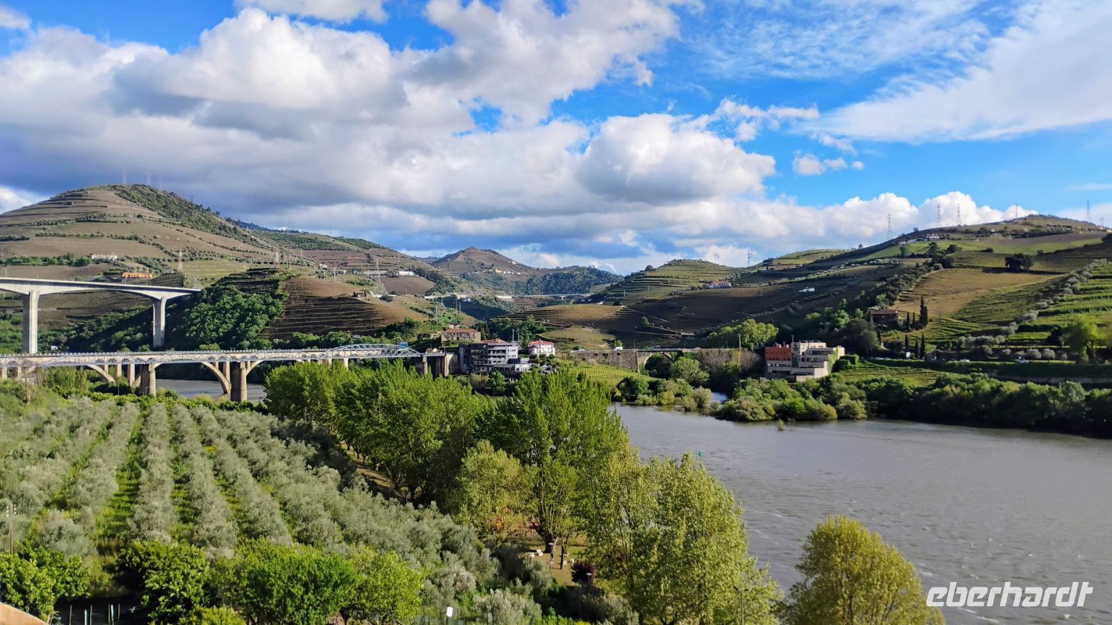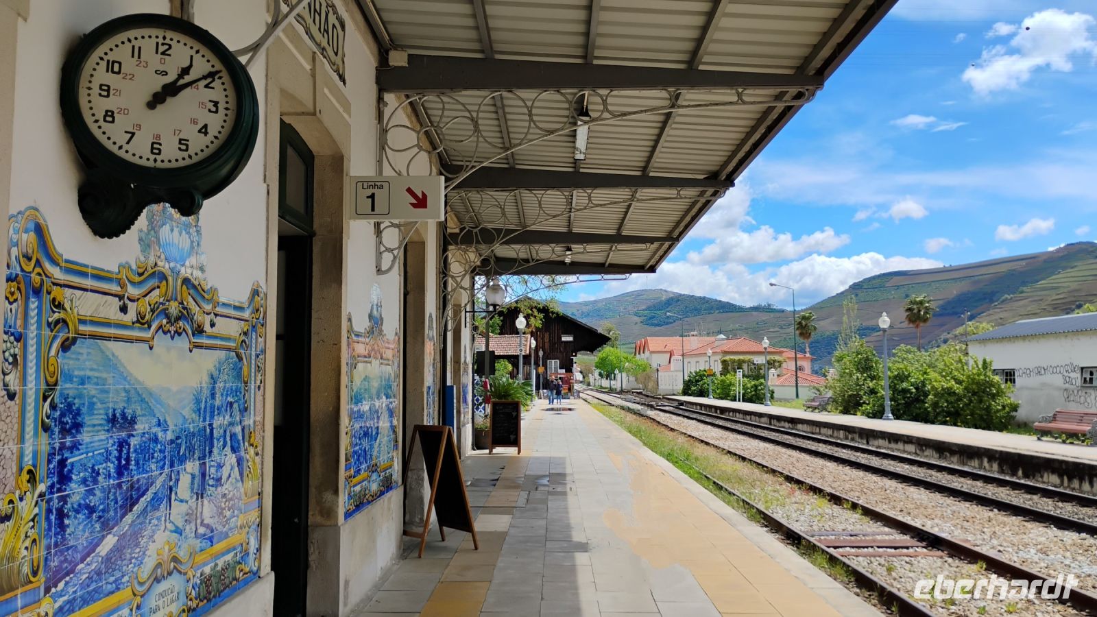 Wie durch ein Wunder hat das Wetter inzwischen aufgeklärt und die Sonne begleitet uns auf der Weiterfahrt nach Pinhão. In dem kleinen Ort am Douro machen wir eine kurze Mittagspause mit Blick auf den Fluss, nachdem wir das sehenswerte Bahnhofsgebäude mit seinen traditionellen Azulejos besichtigt hatten. Anschließend geht es mit der Bahn entlang der Linha do Tua durch das malerische Douro-Tal bis nach Peso da Régua wo wir schließlich unsere Zimmer mit Blick auf die wunderschöne Flusslandschaft beziehen.
