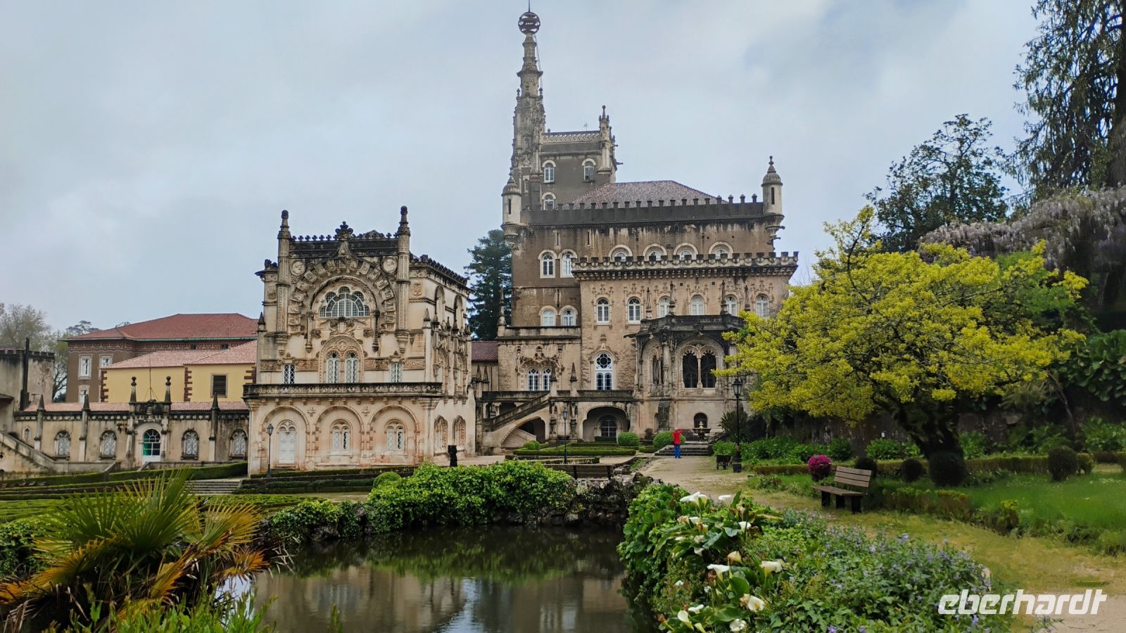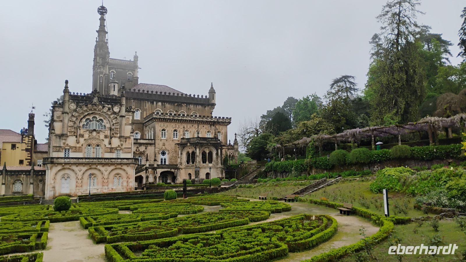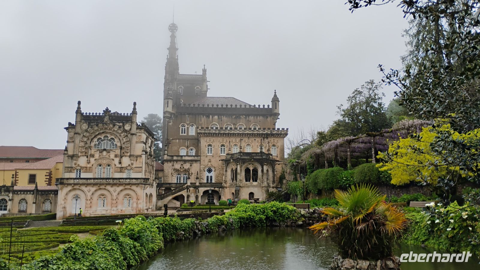 Anschließend fuhren wir weiter zum Park von Bussaco, einer der schönsten Parkanlagen Portugals, heute unter Naturschutz stehend. Leider regnete es bei unserer Ankunft sodass wir nur einen kurzen Fotostopp einlegten. Dennoch konnten wir einen Eindruck von der mystischen Atmosphäre des Parks mit seinen Kapellen, Grotten, kleinen Seen und Brunnen gewinnen. Die Serra do Buçaco ist nicht nur landschaftlich beeindruckend, sondern auch geschichtlich bedeutsam – hier fand 1810 die Schlacht von Buçaco statt, bei der General Wellington die französischen Truppen besiegte. Besonders markant ist auch das ehemalige Jagdschloss der portugiesischen Könige, das heutige Palácio Hotel do Buçaco im neo-manuelinischen Stil.