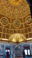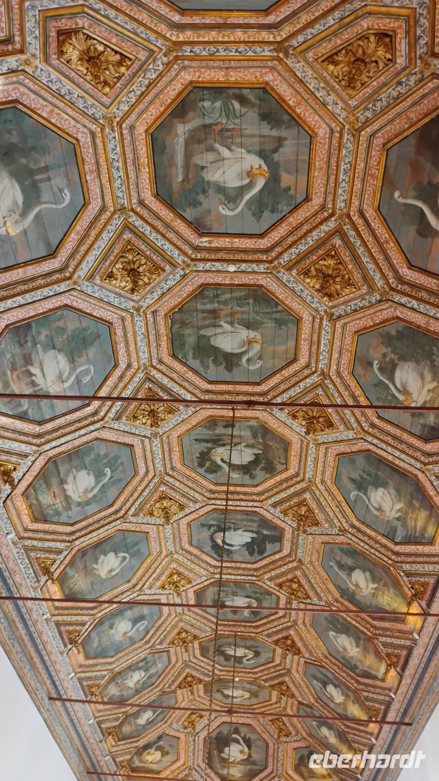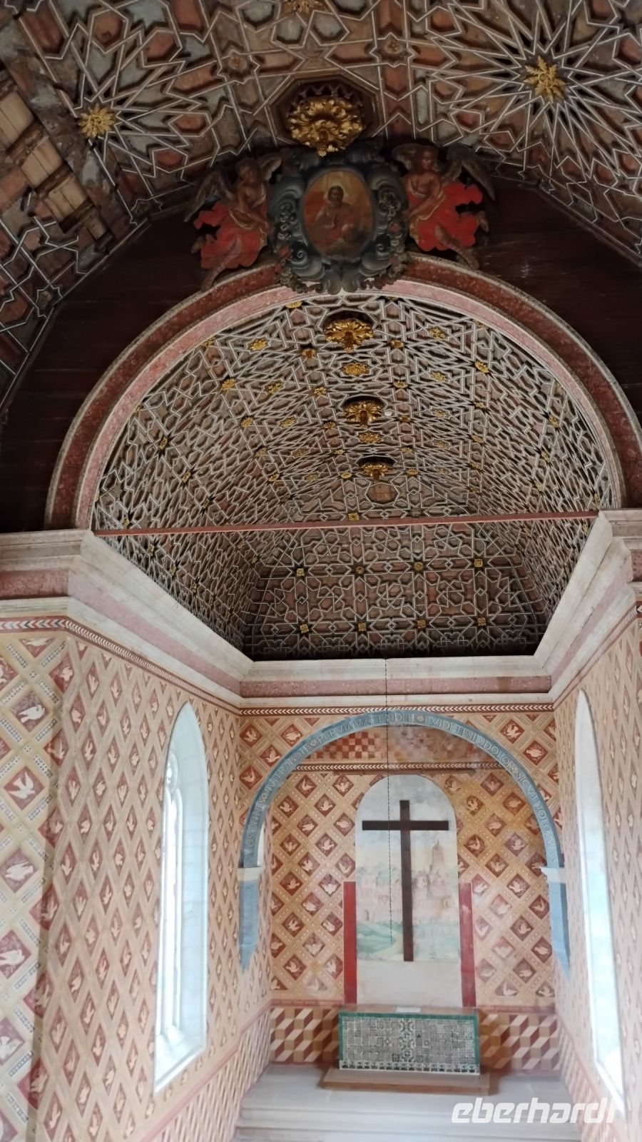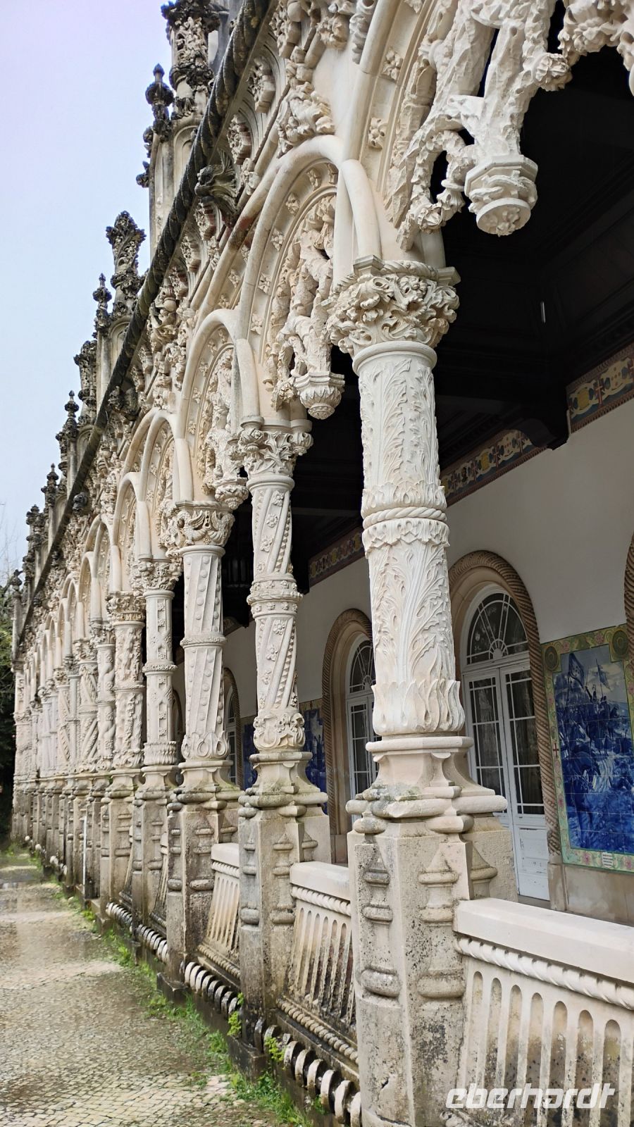 Wir besichtigten den Nationalpalast von Sintra, einst Sommerresidenz der portugiesischen Könige. Der markante Palast mit seinen zwei riesigen, weißen Kegelschornsteinen beherbergt eine Fülle historischer Säle und bedeutender Kunstwerke. Interessant sicher der Schwanensaal, dessen Decke mit 27 gemalten Schwänen geschmückt ist – jeder steht für ein Lebensjahr von Prinzessin Isabel, zu deren Hochzeit der Raum gestaltet wurde. Ebenso faszinierend: das Elsternzimmer, dessen Decke von 136 Elstern geziert wird – eine augenzwinkernde Antwort des Königs auf den höfischen Tratsch rund um ein Gerücht über seine Gemahlin. Jedes Tier trägt ein Spruchband mit dem Wort „por bem“ – „zum Wohle“.