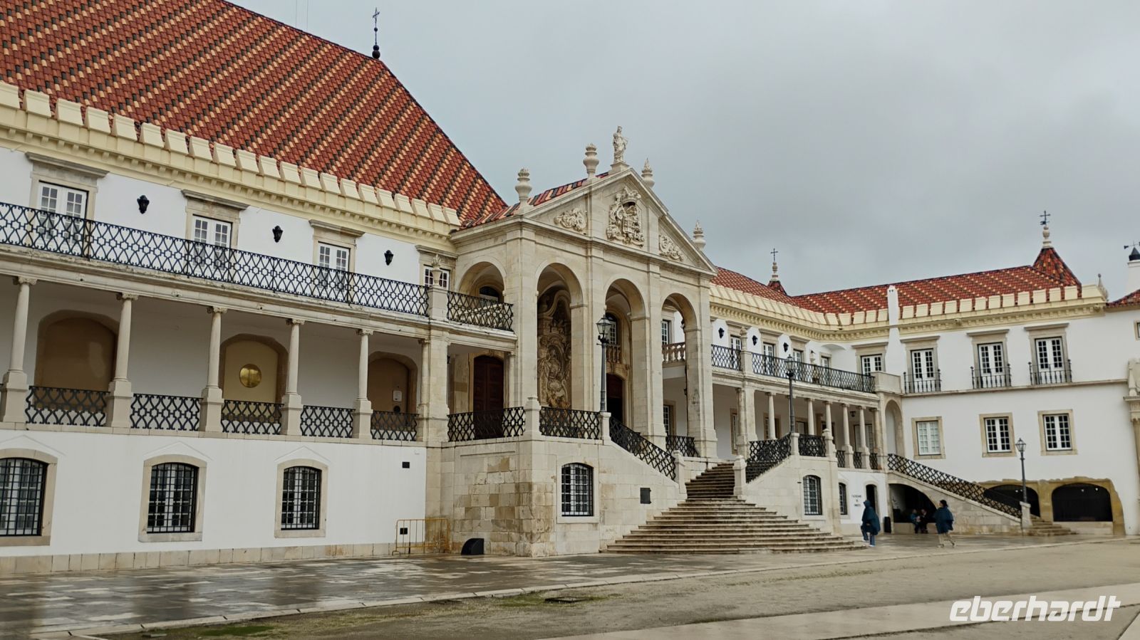 Weiter ging es nach Coimbra, wo wir gegen zwei Uhr eintrafen und zunächst eine Mittagspause einlegten. Im Laufe des Nachmittags hatte der Regen glücklicherweise nachgelassen, sodass wir nur noch gelegentlich zum Regenschirm greifen mussten. Am Nachmittag besuchten wir die traditionsreiche Universität, die 1290 gegründet wurde und später von Lissabon nach Coimbra umzog. Sie prägt das Stadtbild bis heute maßgeblich. Besonders beeindruckend war der Besuch der historischen Universitätsbibliothek mit ihren prächtigen Räumen (das Fotografieren war dort untersagt, somit gibt es hierzu leider keine Fotos).