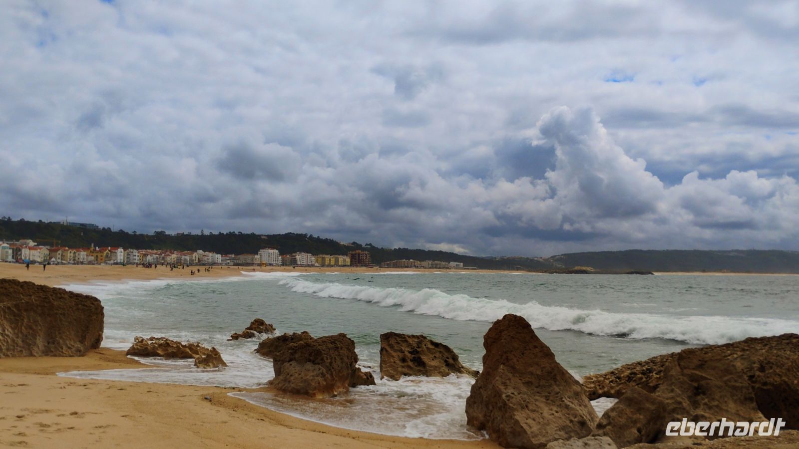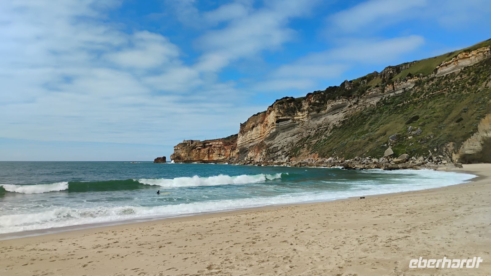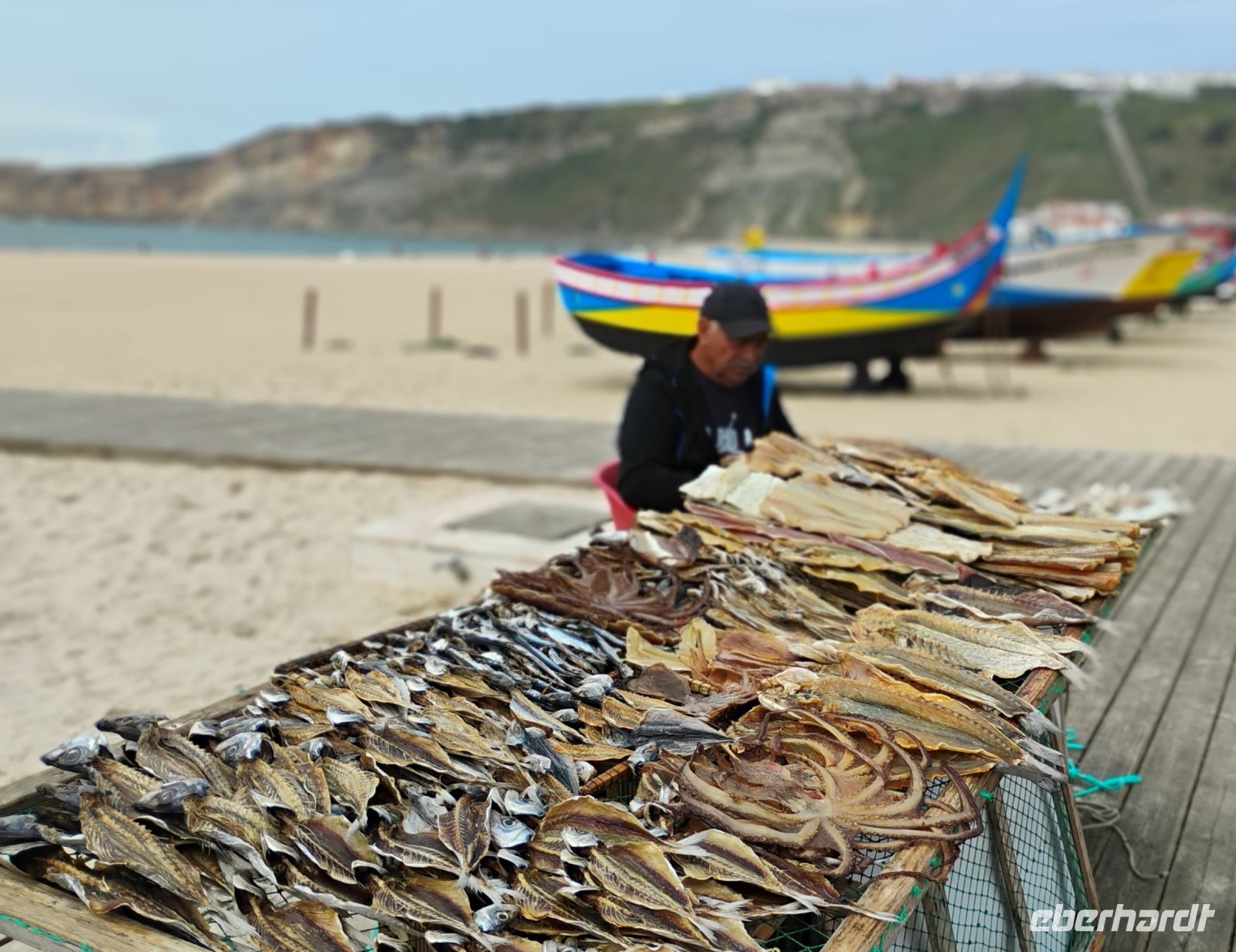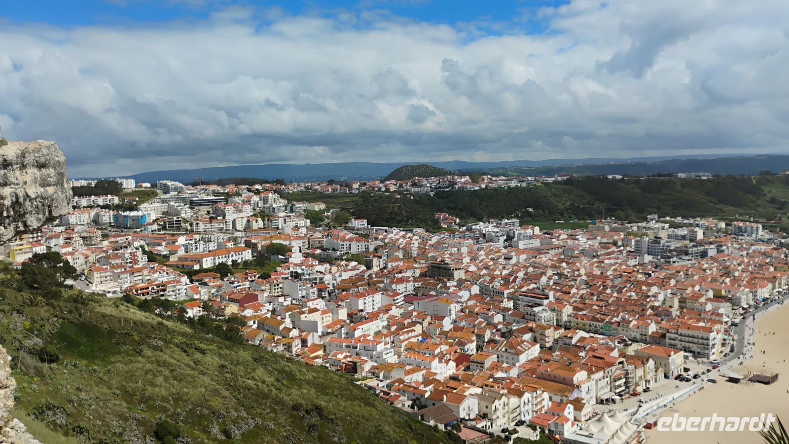 Nach so viel Geschichte lockt das Meer – wir fahren weiter nach Nazaré. Das ehemalige Fischerdorf ist heute ein lebhafter Badeort, bekannt für seine riesigen Atlantikwellen, die Surfer aus aller Welt anziehen. Bei einer Mittagspause können wir frischen Fisch genießen, durch den Ort bummeln oder einfach das Meeresrauschen auf sich wirken lassen. Die Sonne ließ sich inzwischen wieder blicken! Anschließend fuhren wir hoch hinauf zum Aussichtspunkt Sítio – von hier hat man einen spektakulären Blick über Küste und Stadt.