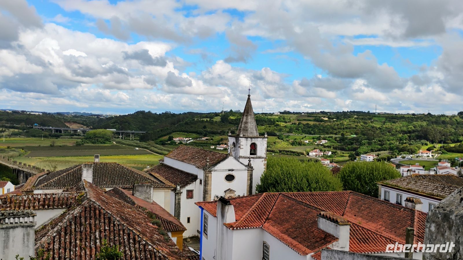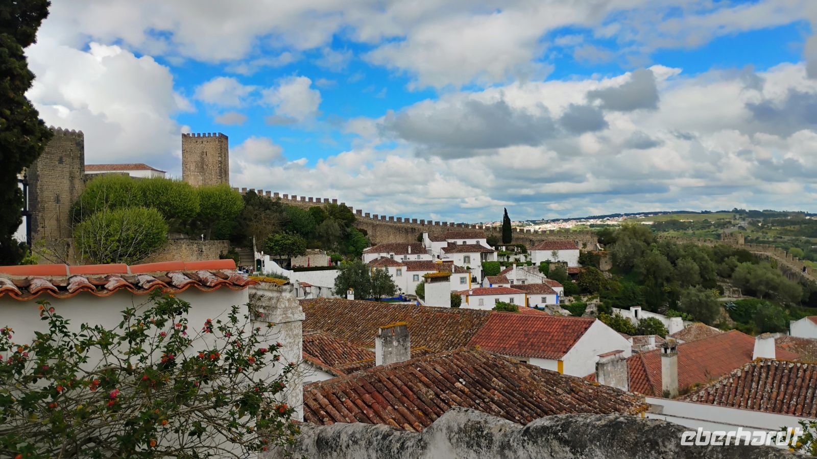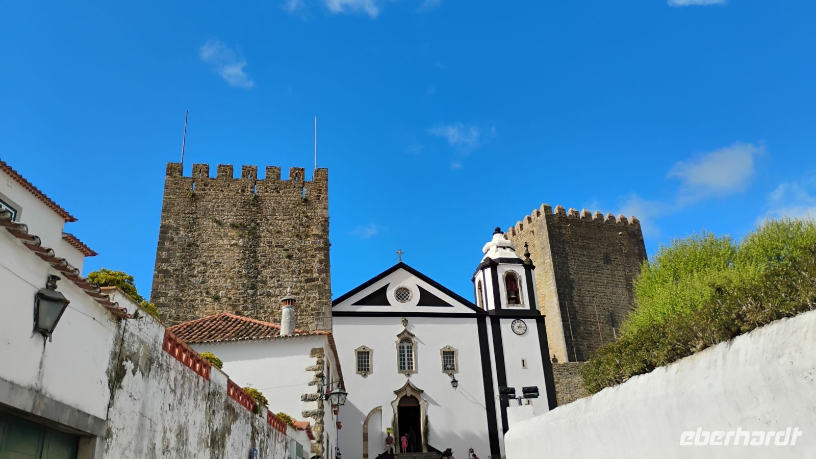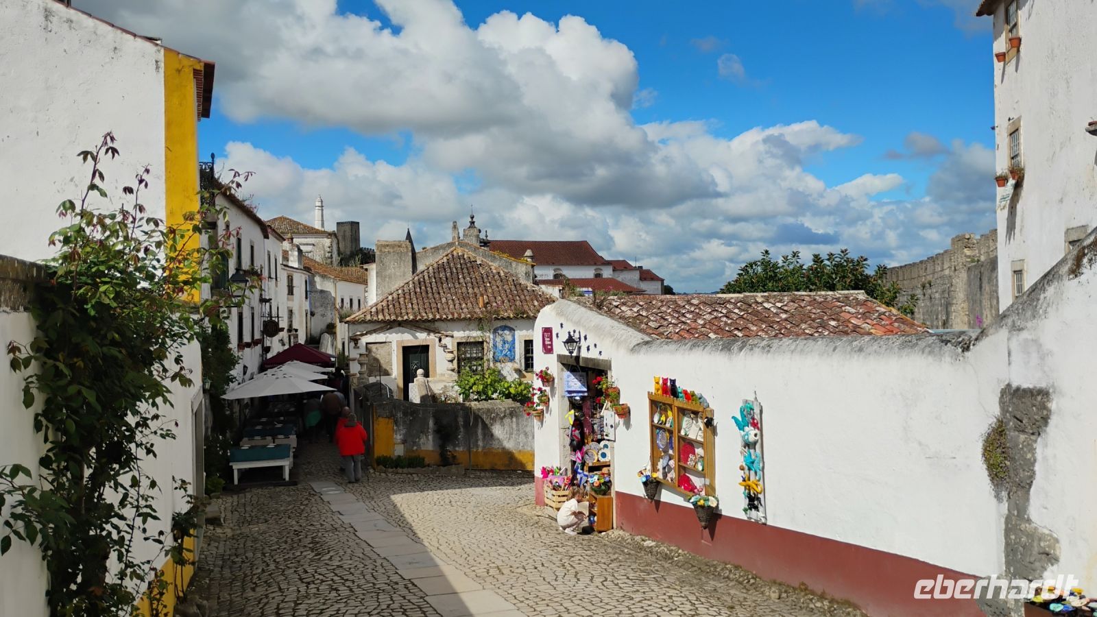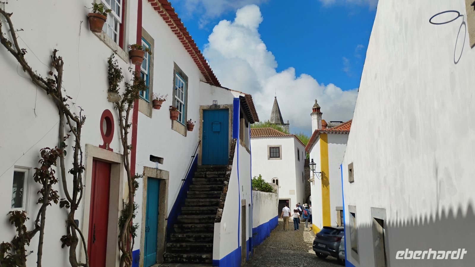Am Nachmittag erreichten wir Óbidos – ein echtes Postkartenstädtchen. Die malerische Stadt mit ihrer vollständig erhaltenen Stadtmauer wirkt wie aus dem Mittelalter entstiegen. Weiße Häuser mit blauen und gelben Fensterrahmen, enge Kopfsteinpflastergassen, blühende Bäume und kleine Läden, die regionale Produkte und Kunsthandwerk anbieten, prägen das charmante Bild.