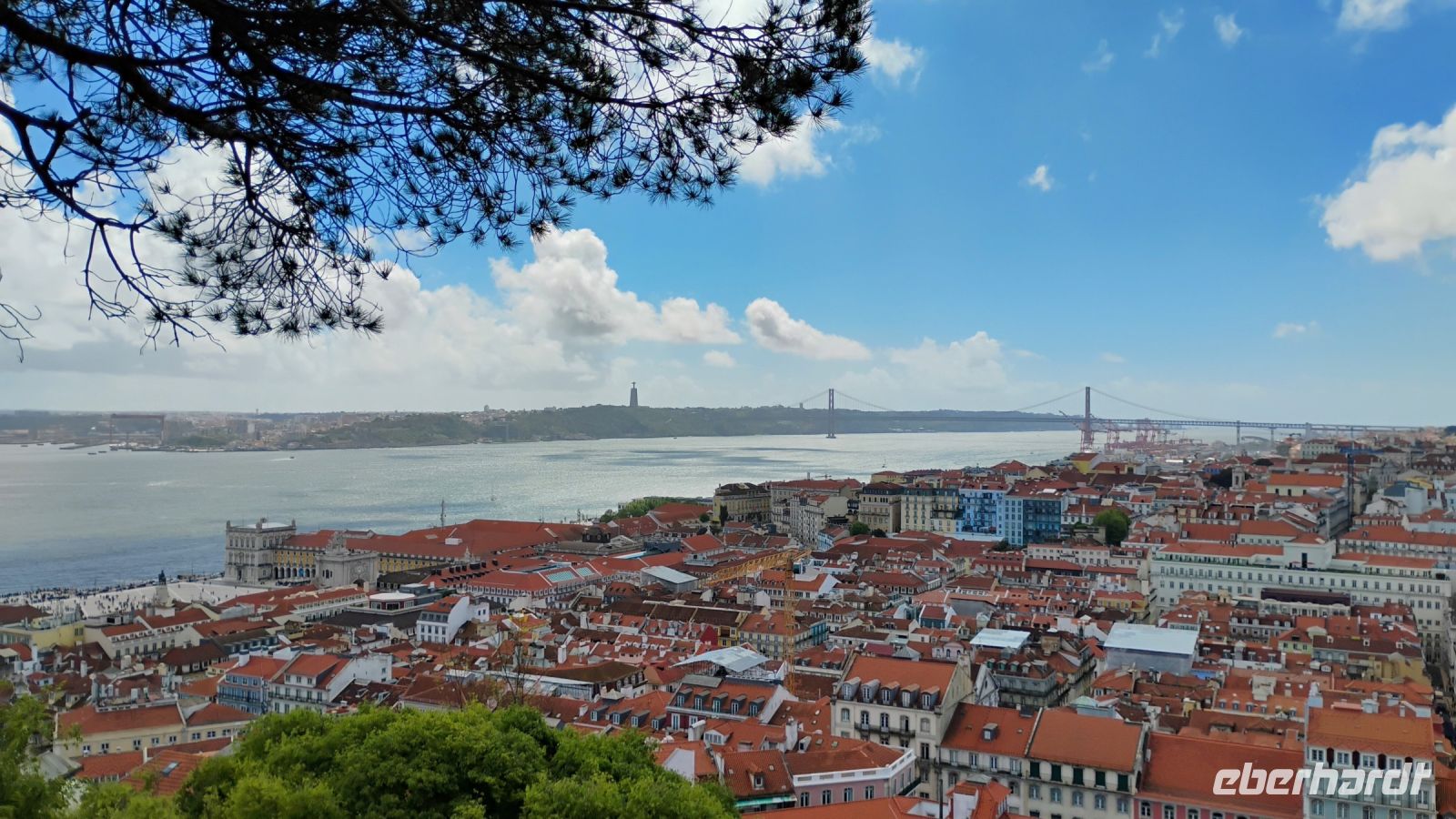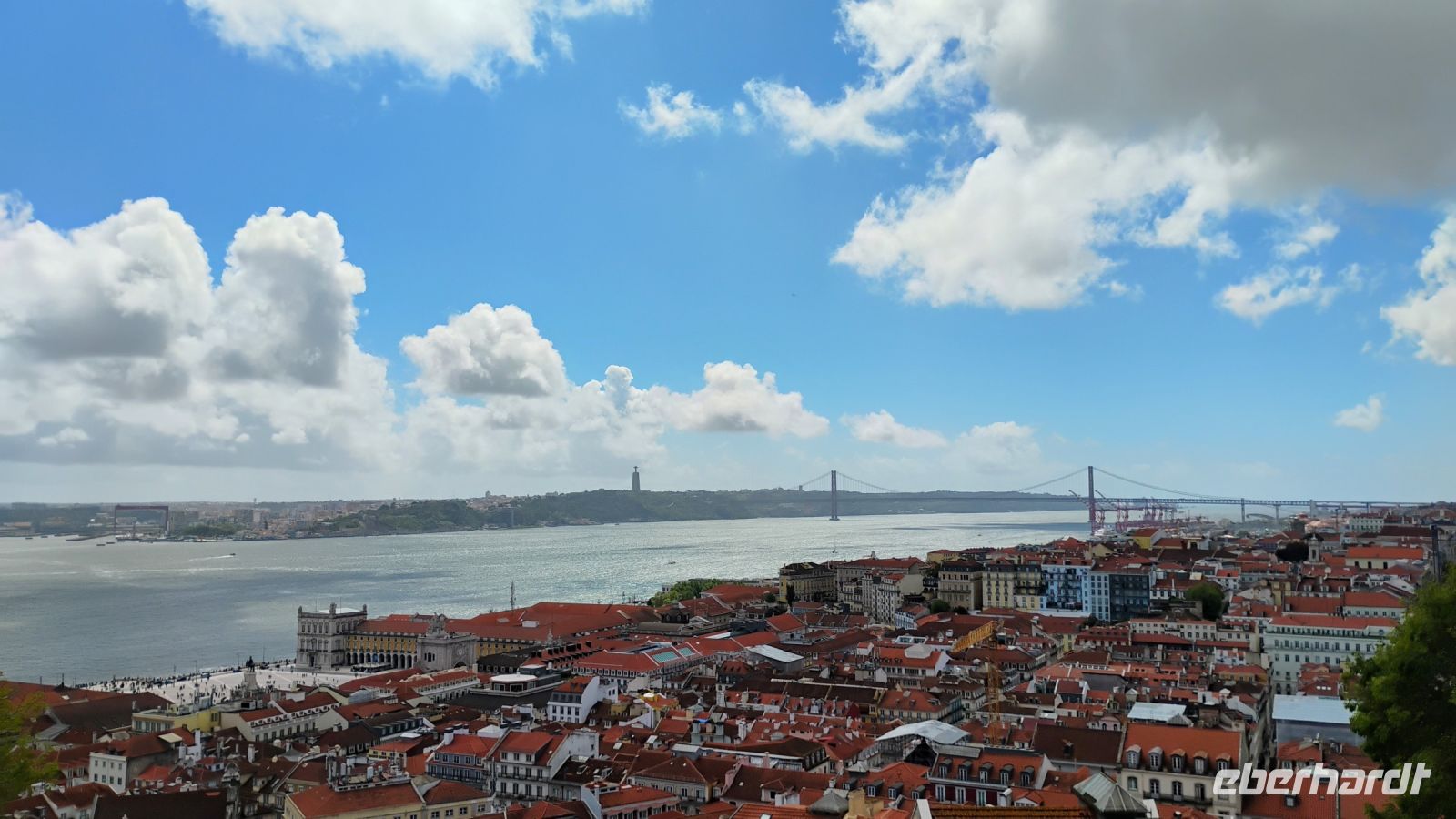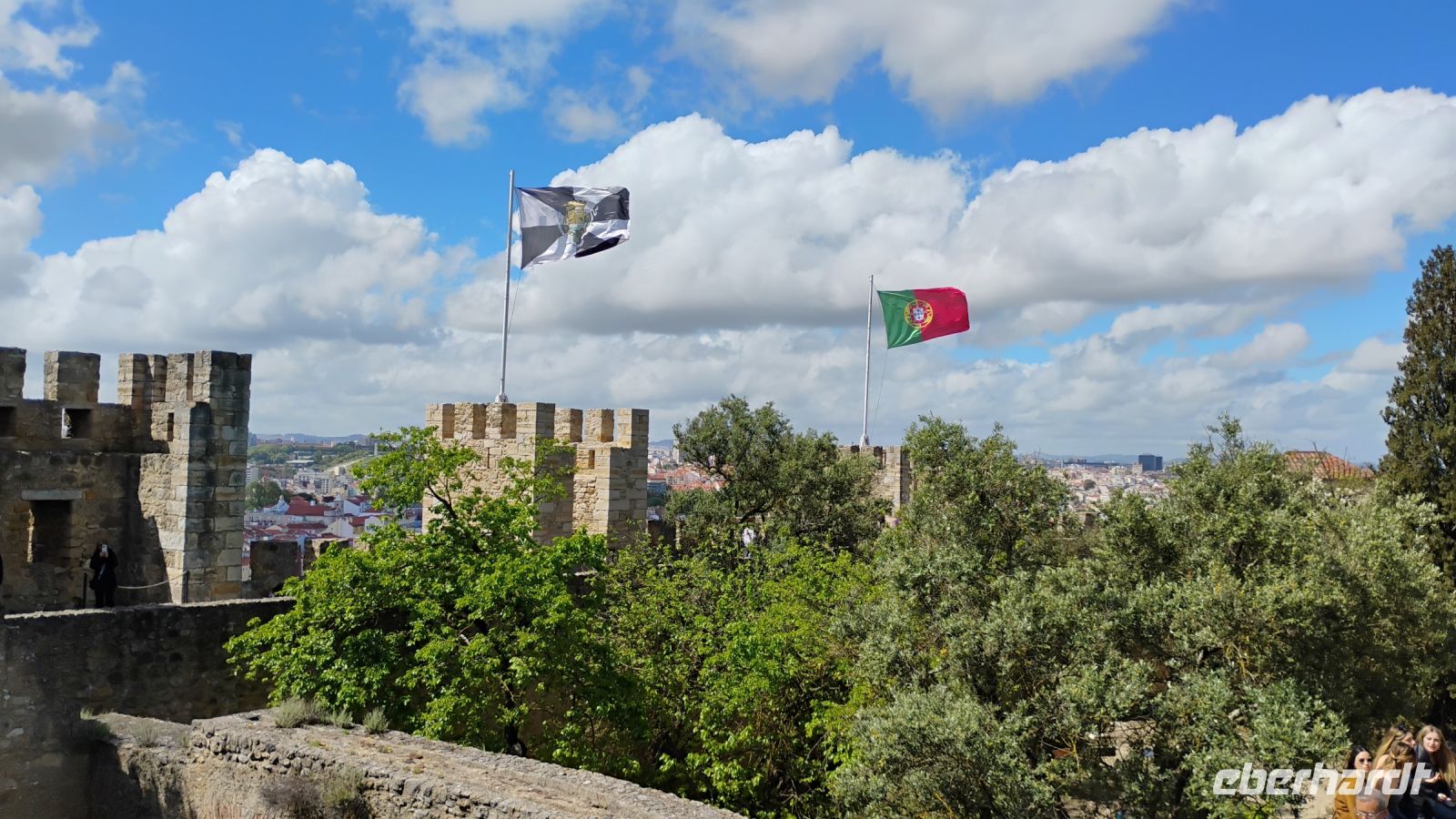 Gemeinsam spazierten wir bergauf zur imposanten Festung São Jorge, die über der Stadt thront. Vom Burghügel bot sich uns – jetzt bei deutlich angenehmeren Bedingungen – ein spektakulärer Blick über die Unterstadt Baixa, den Platz Rossio, das lebendige Bairro Alto sowie über den Tejo und bis hin zur monumentalen Christusstatue am gegenüberliegenden Ufer.