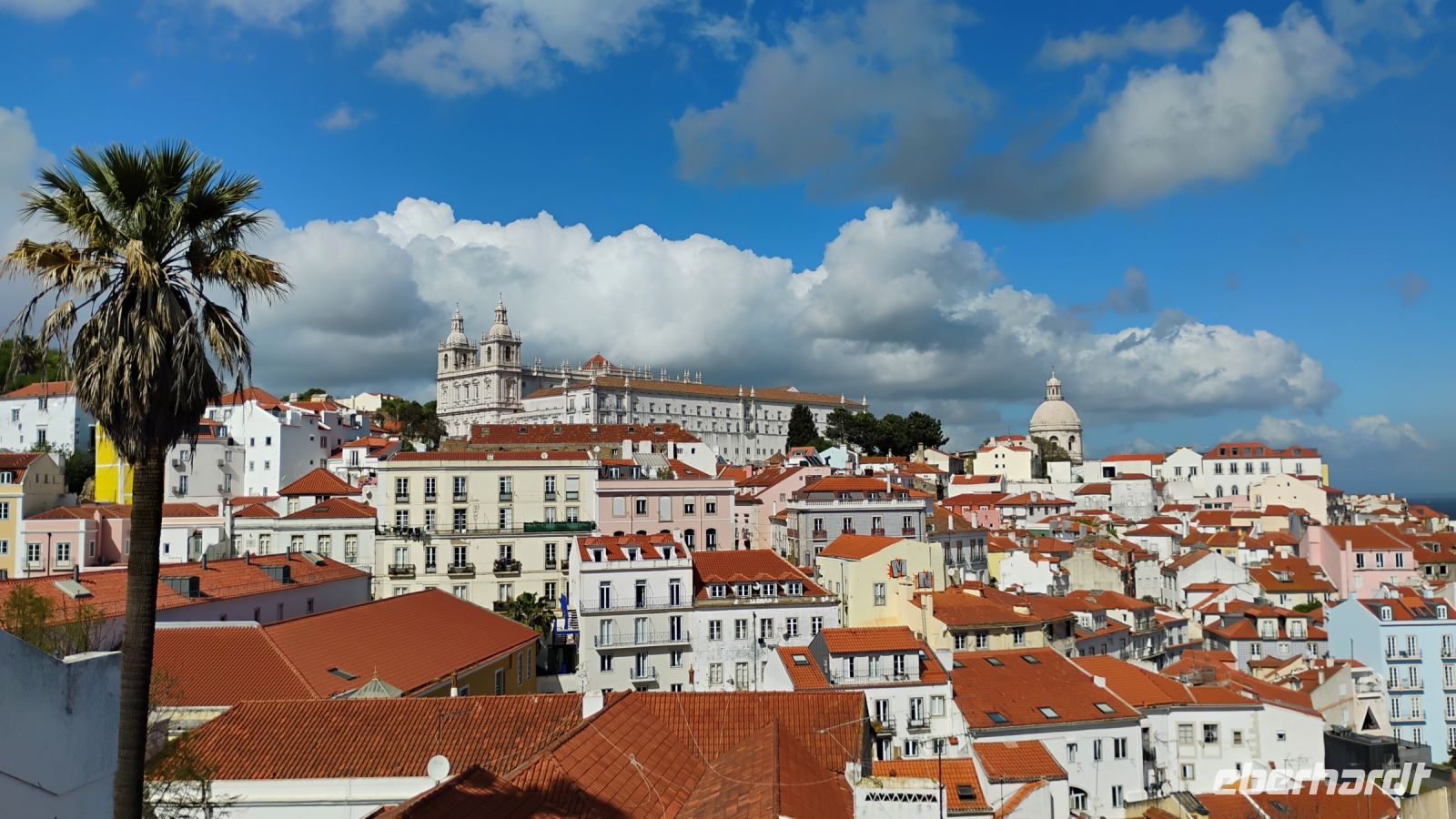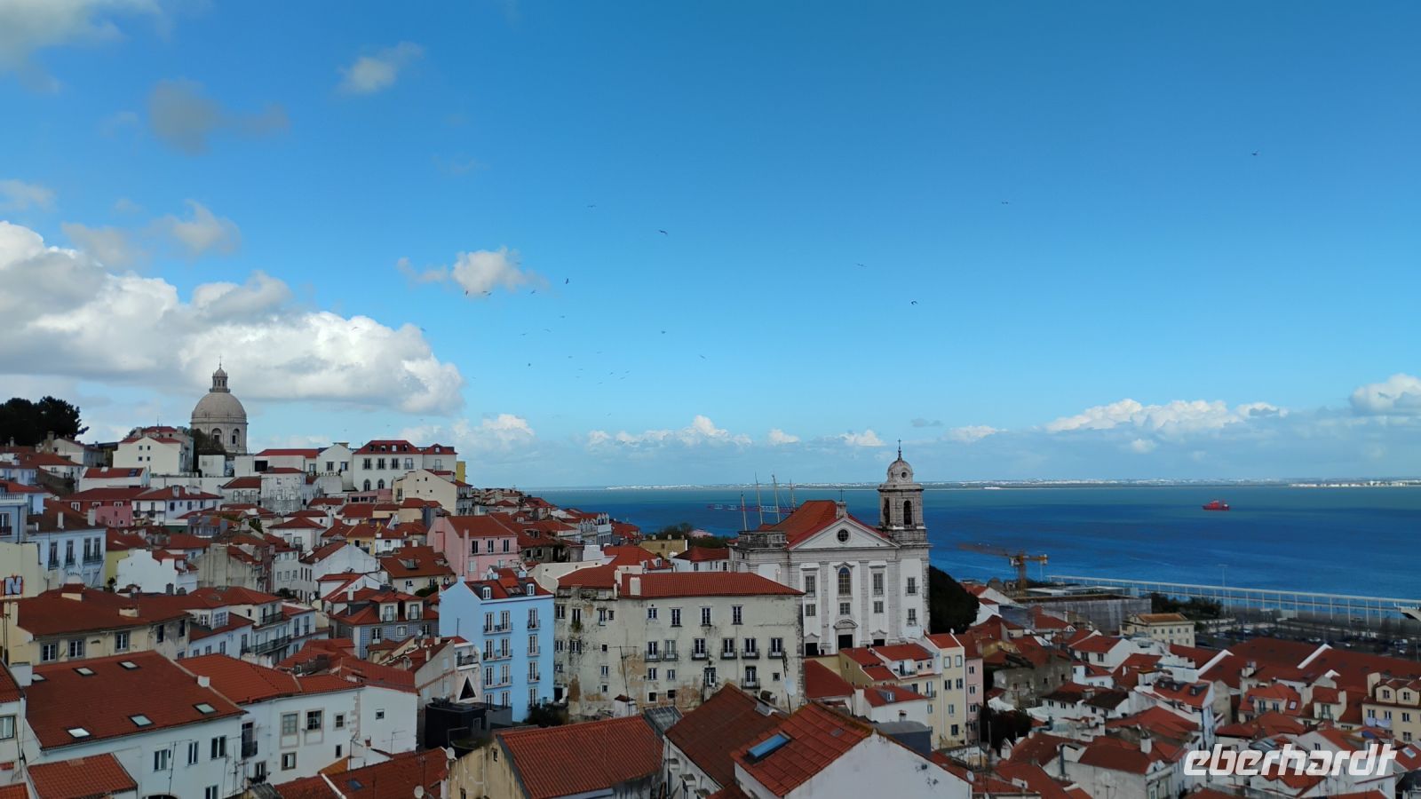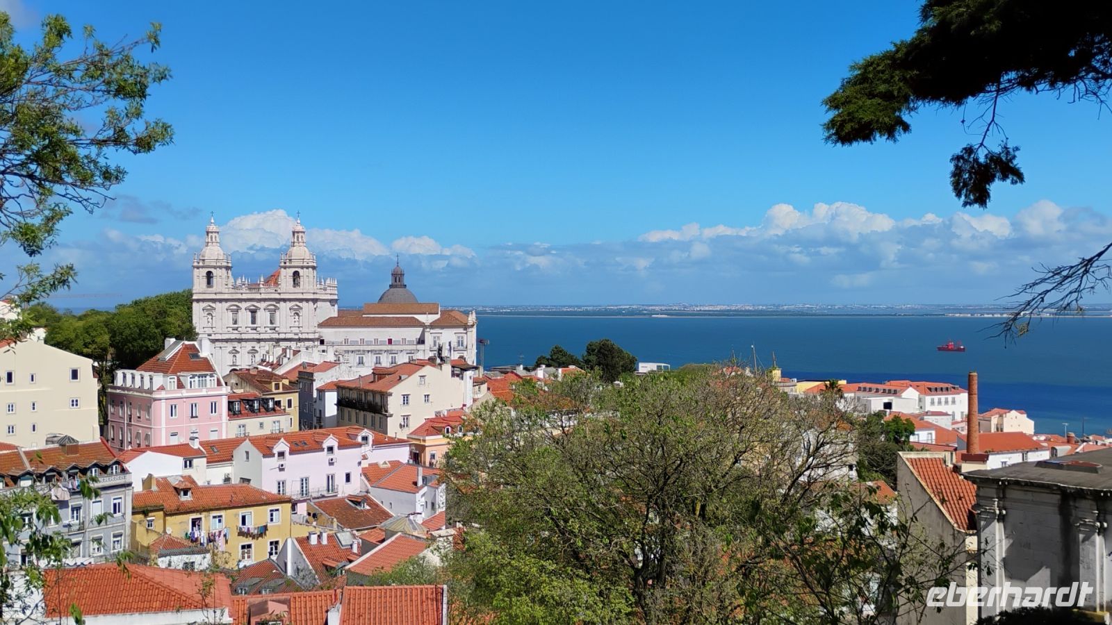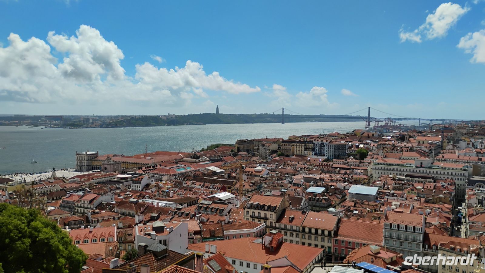 Gemeinsam spazierten wir bergauf zur imposanten Festung São Jorge, die über der Stadt thront. Vom Burghügel bot sich uns – jetzt bei deutlich angenehmeren Bedingungen – ein spektakulärer Blick über die Unterstadt Baixa, den Platz Rossio, das lebendige Bairro Alto sowie über den Tejo und bis hin zur monumentalen Christusstatue am gegenüberliegenden Ufer.
