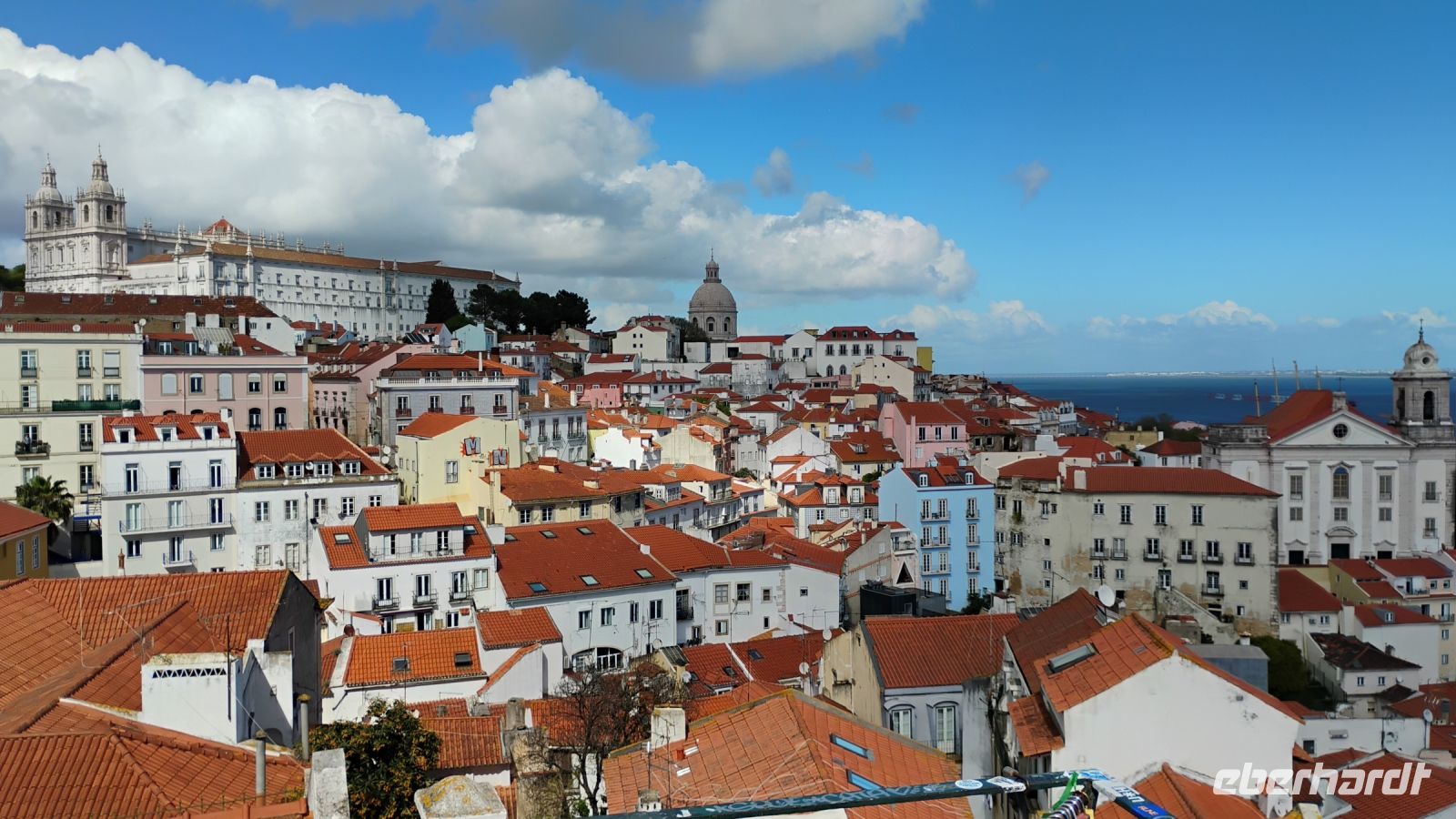 Nach der Mittagspause im Stadtzentrum, wo wir auch etwas Freizeit genießen konnten, setzte sich unser Stadtrundgang zu Fuß fort. Glücklicherweise besserte sich nun das Wetter spürbar – der Regen ließ nach, der Wind flaute ab, und sogar ein paar Sonnenstrahlen zeigten sich. Mit neuer Energie machten wir uns auf den Weg in das historische Herz Lissabons, die Alfama. Die verwinkelten Gassen, kleinen Plätze und alten Häuser dieses Viertels verströmen noch heute den Charme vergangener Zeiten.