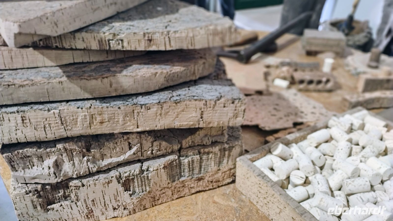 Bald veränderte sich die Landschaft merklich. Zwischen sanften Hügeln und weiten Olivenhainen betraten wir die Region Alentejo – eine der ursprünglichsten Gegenden des Landes. Erstaunlich, wie viele Störche hier ihr Zuhause haben! In einem kleinen Ort nahe Évora, machten wir Halt in einer Korkmanufaktur. Wir erfuhren, wie aus der groben Rinde der Korkeiche – die nur alle neun Jahre geerntet werden darf – hochwertige Produkte entstehen. Besonders faszinierend war zu sehen, wie durch Kochen, Pressen und Schneiden Alltagsgegenstände wie Taschen, Schmuck oder sogar Schuhe aus Kork gefertigt werden.